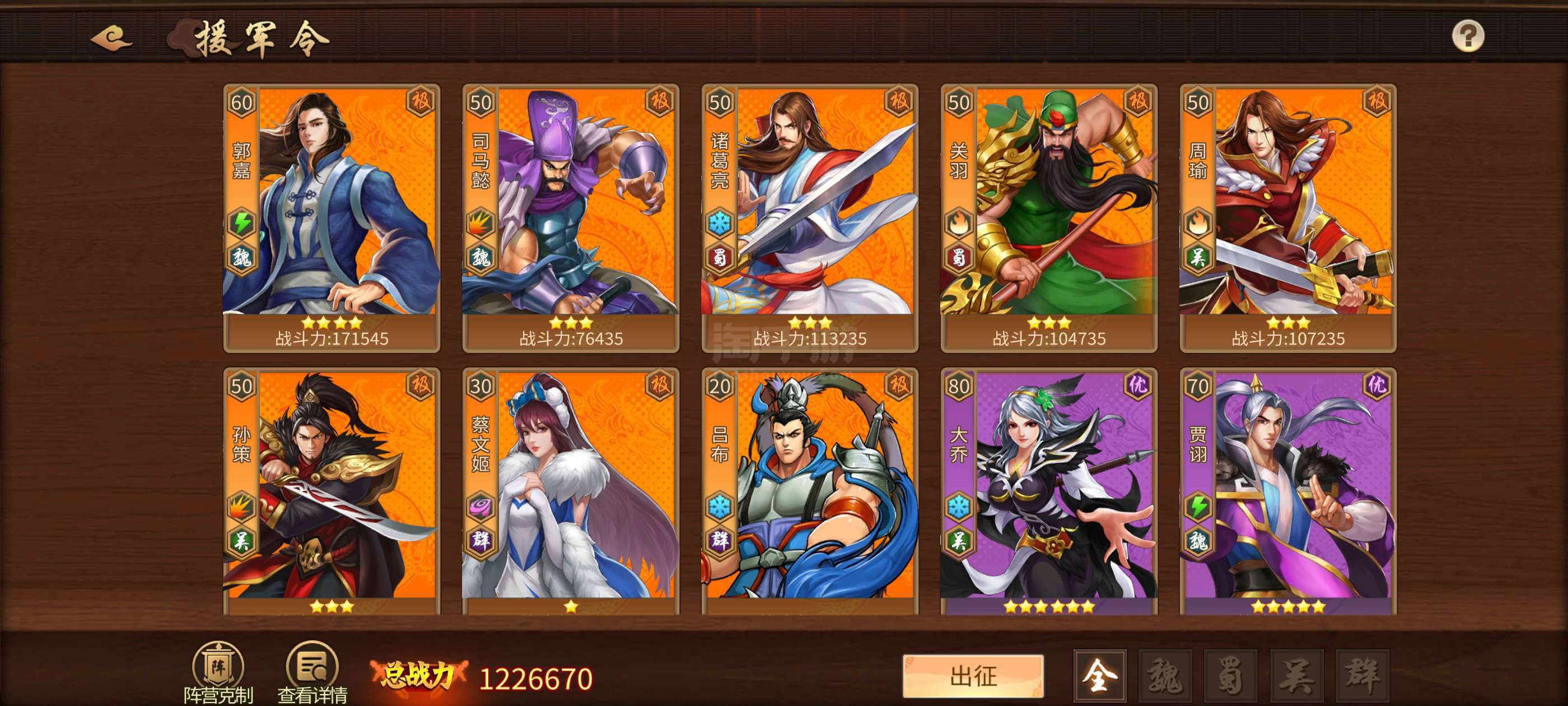 安卓联运版本!低级高战力,极品援军,紫色兵法基本都是四星,橙色一星!