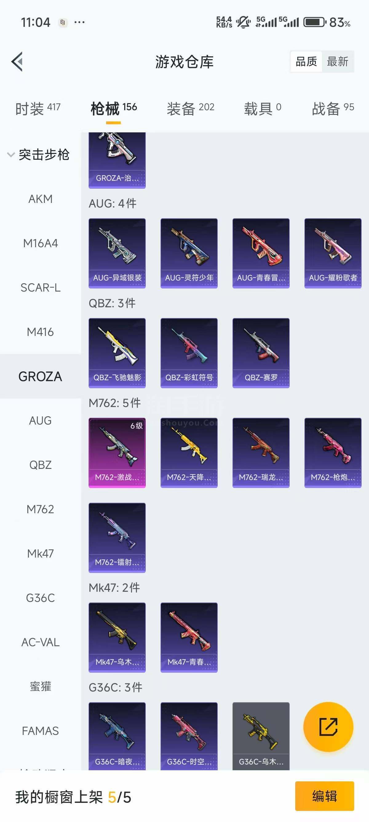 【特效枪等级】:M416-五爪金龙(四级),GROZA-焦糖拿铁(七级),M762-激战未来(六级),Kar98K-巳巳如意(五级),DP-28-枪炮玫瑰(七级)
