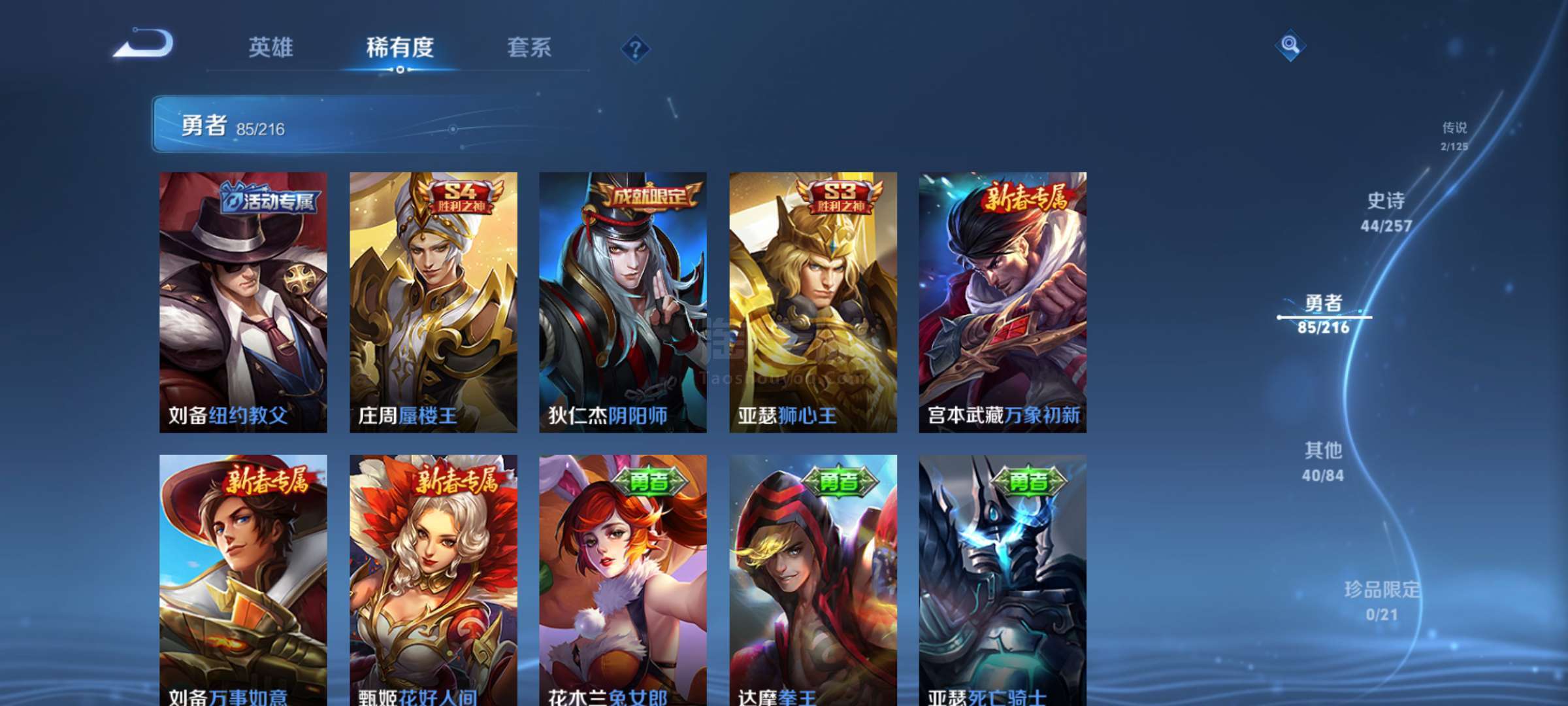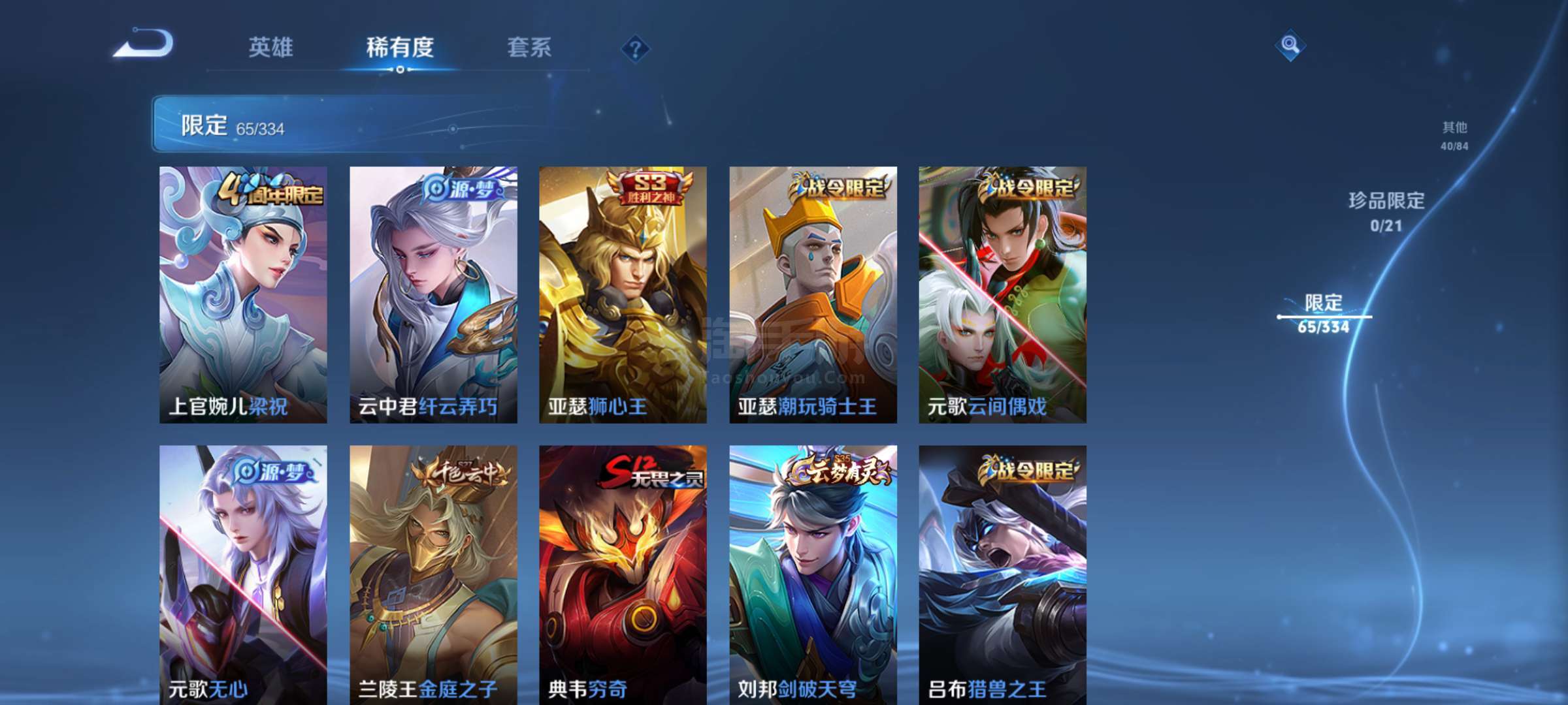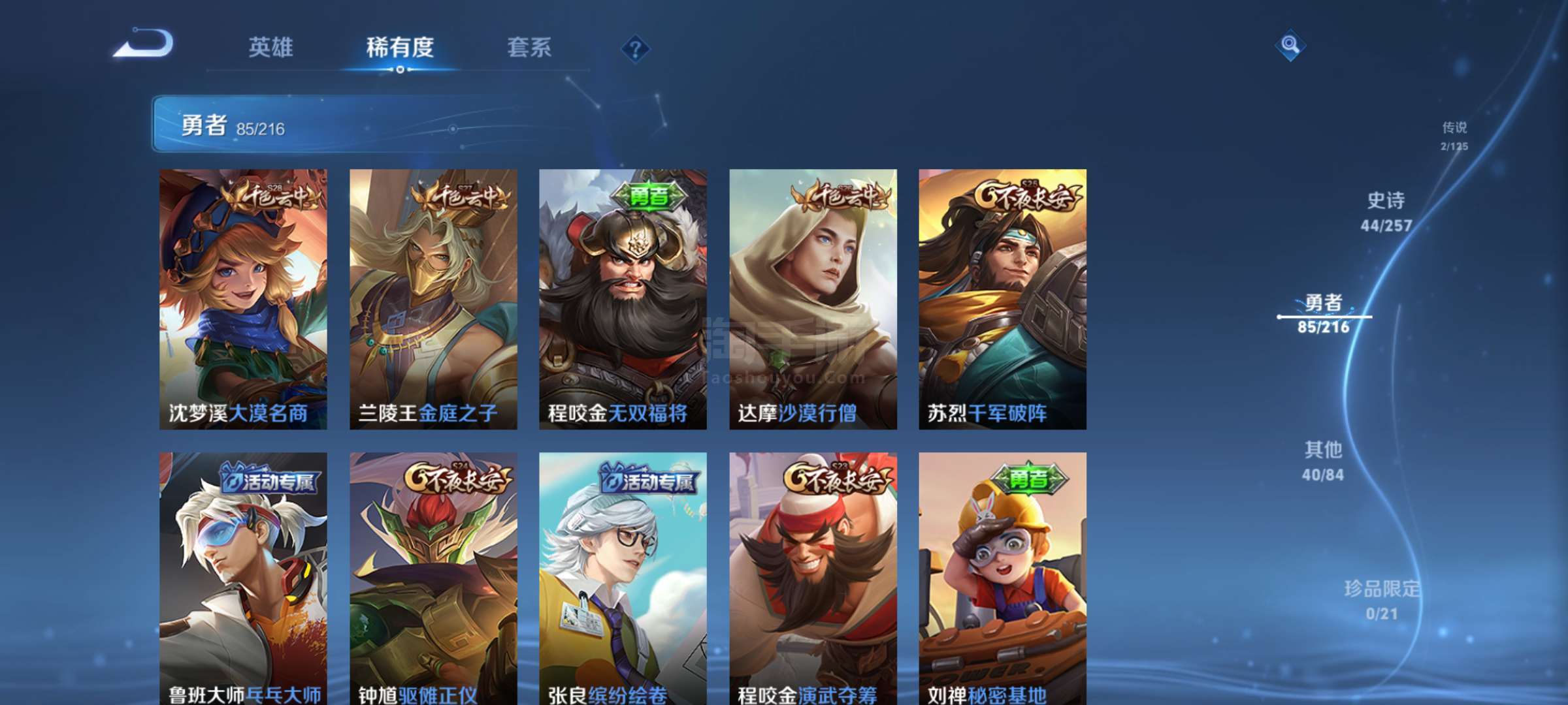 安卓QQ 171皮 2传说 2星元 44SS皮【s3狮心王亚瑟,s4567黄金皮】 一些绝版皮