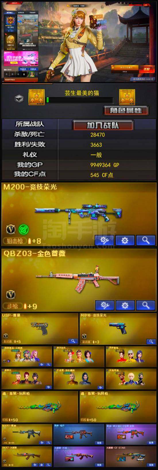 【热门武器】:QBZ03-金色蔷薇,金色蔷薇-古蛇迷踪,修罗-古蛇迷踪,M200-竞技荣光,USP-雷暴,沙鹰-修罗