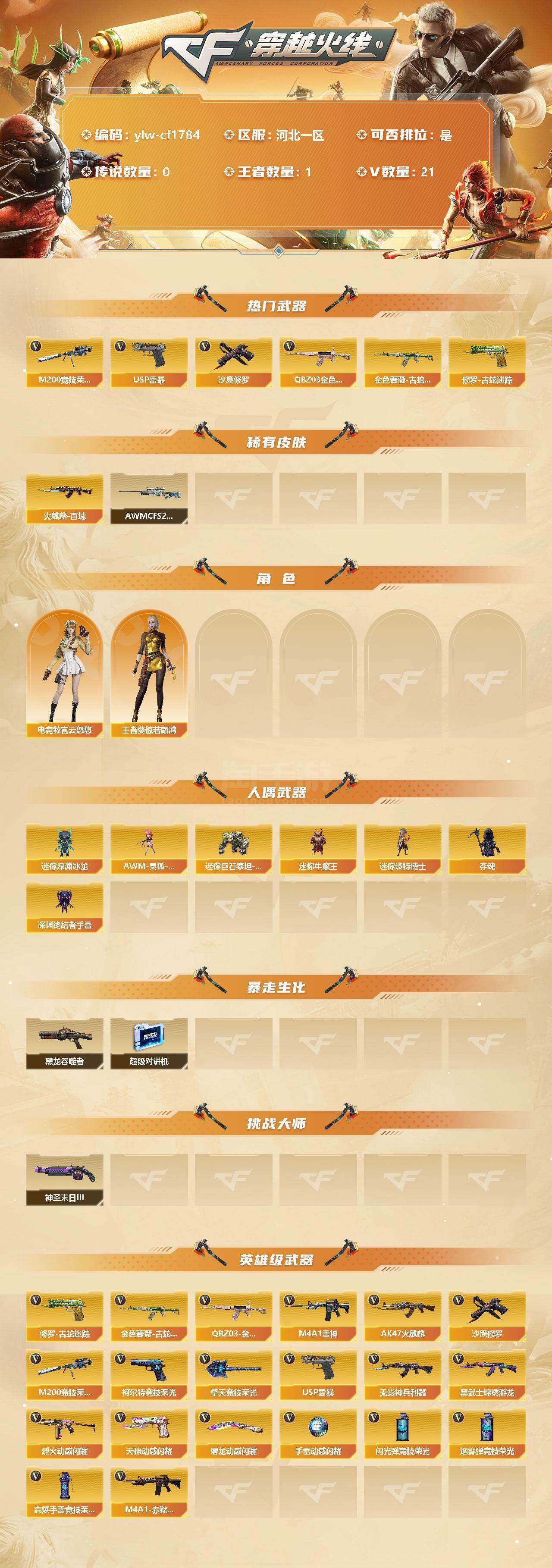 【稀有皮肤】:火麒麟-百城,AWM-CFS 2020