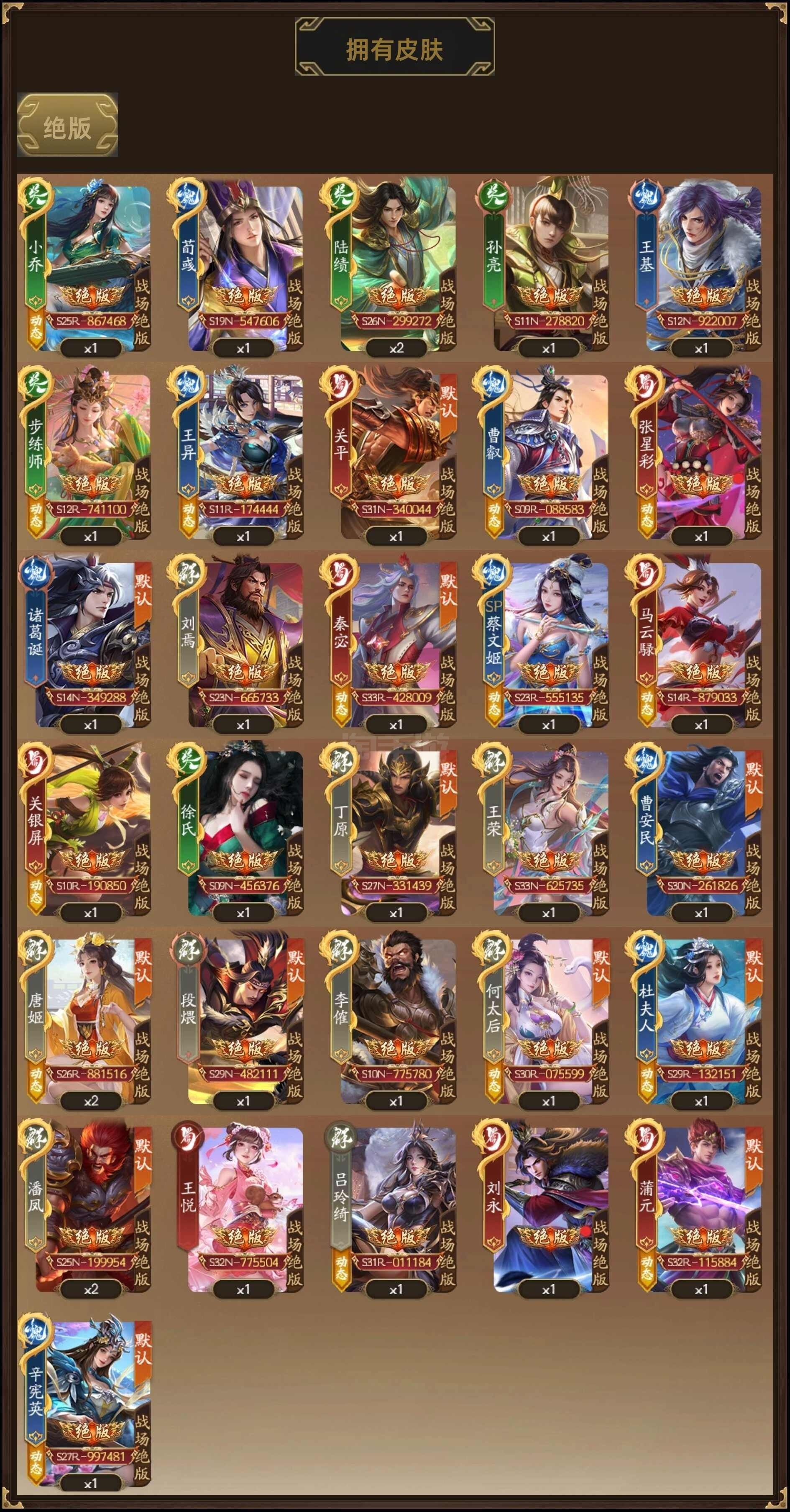 364将,充2.5w斧头帮 卫将军364将,3神武祈愿之星,周宣薛灵芸,神马超神张飞,神姜维曹金玉,8万符,许邵(双动)郭照(双