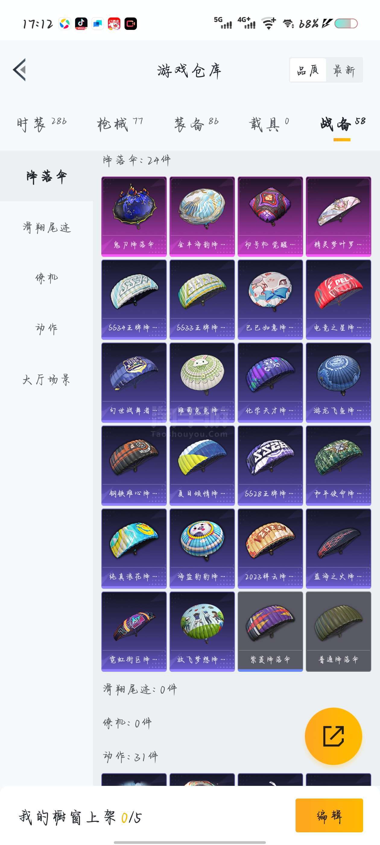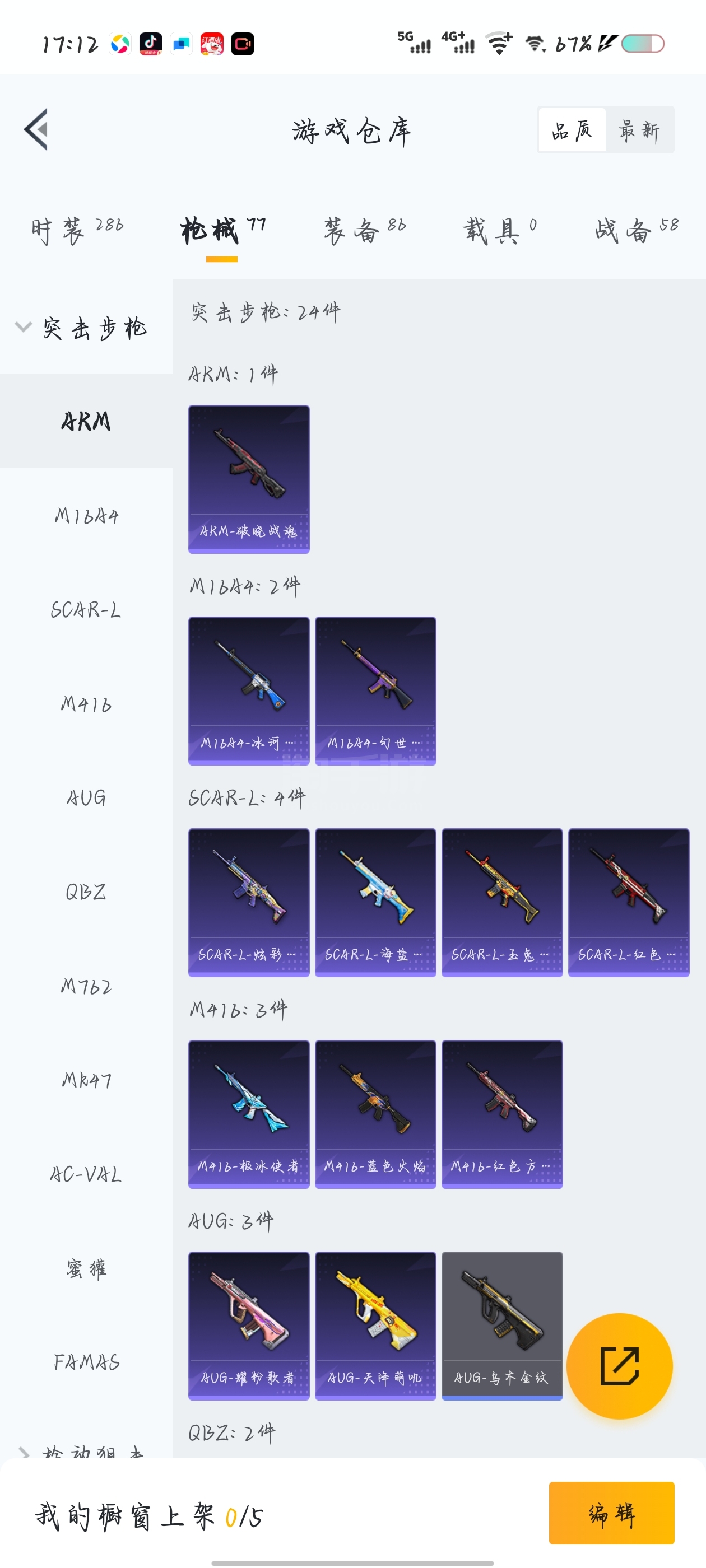 安卓QQ-2粉枪 4粉降落伞 Kar98K-巳巳如意 价格可谈,真心出,连体号