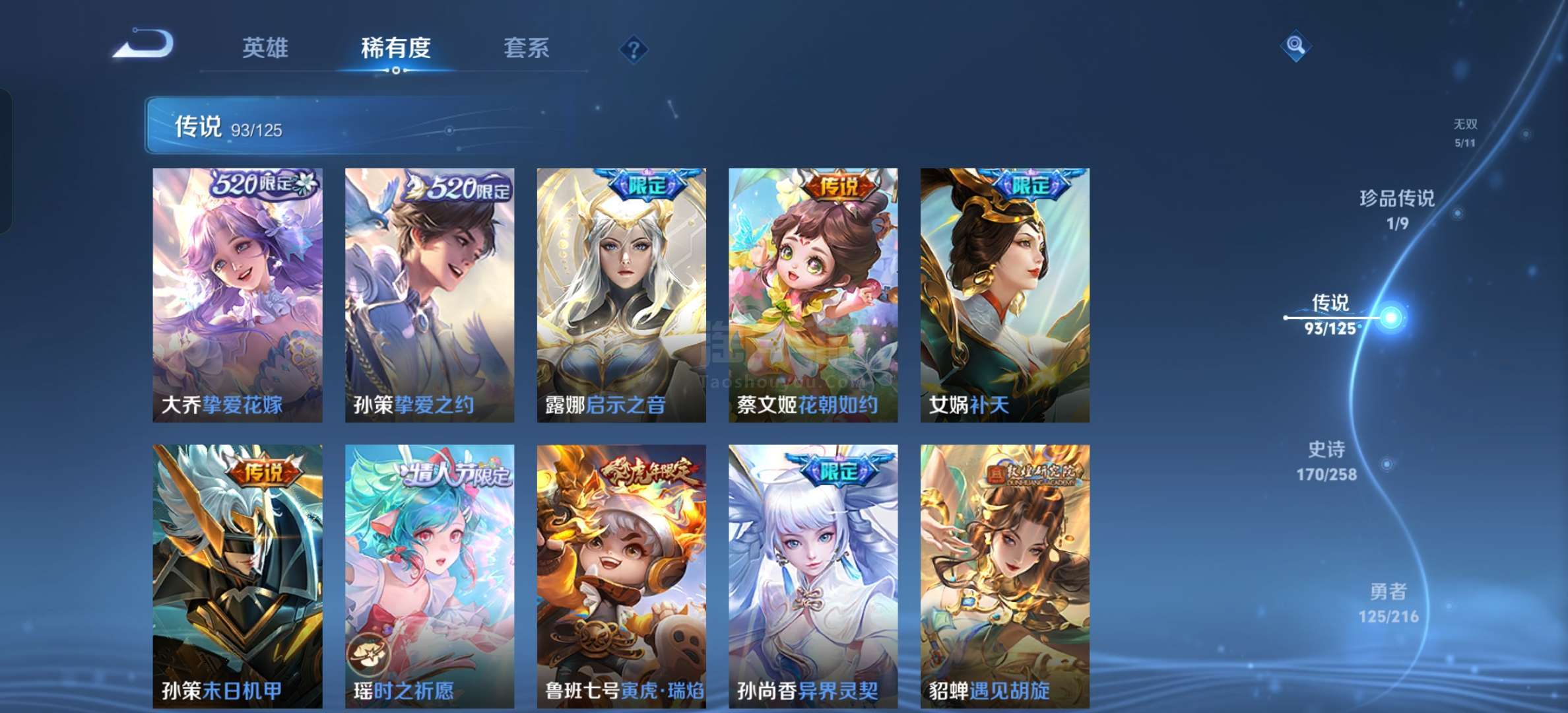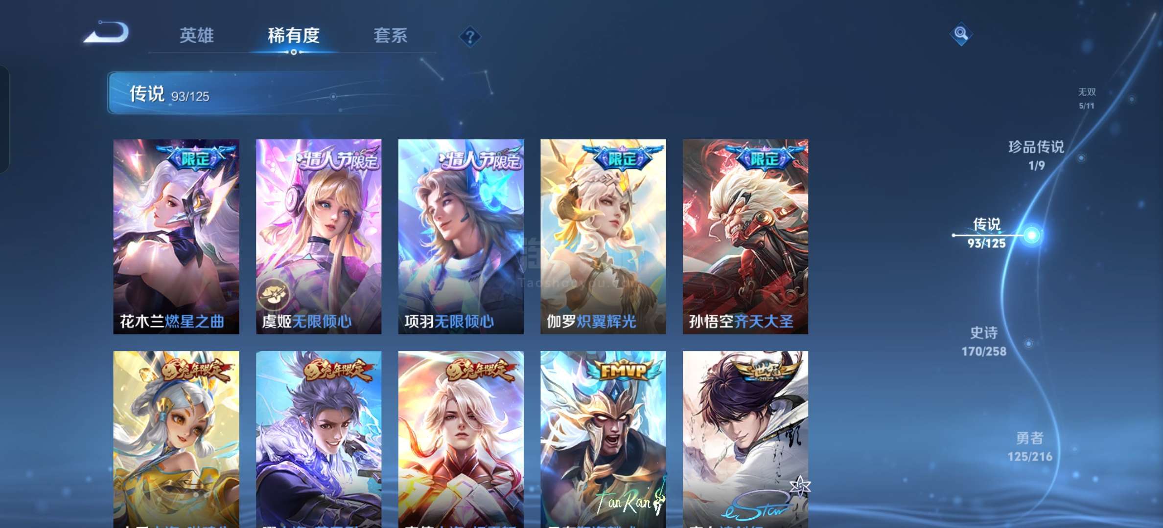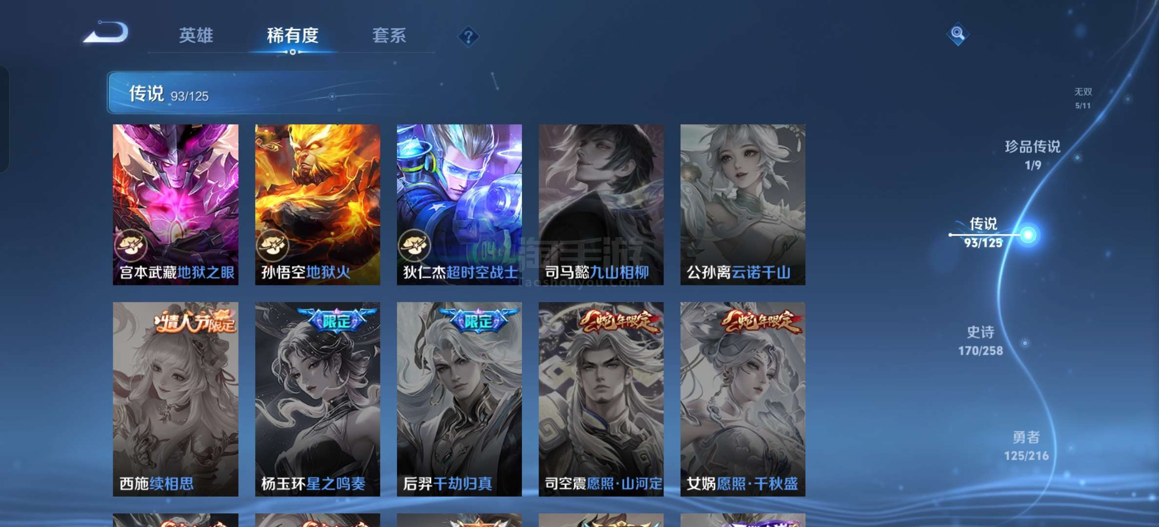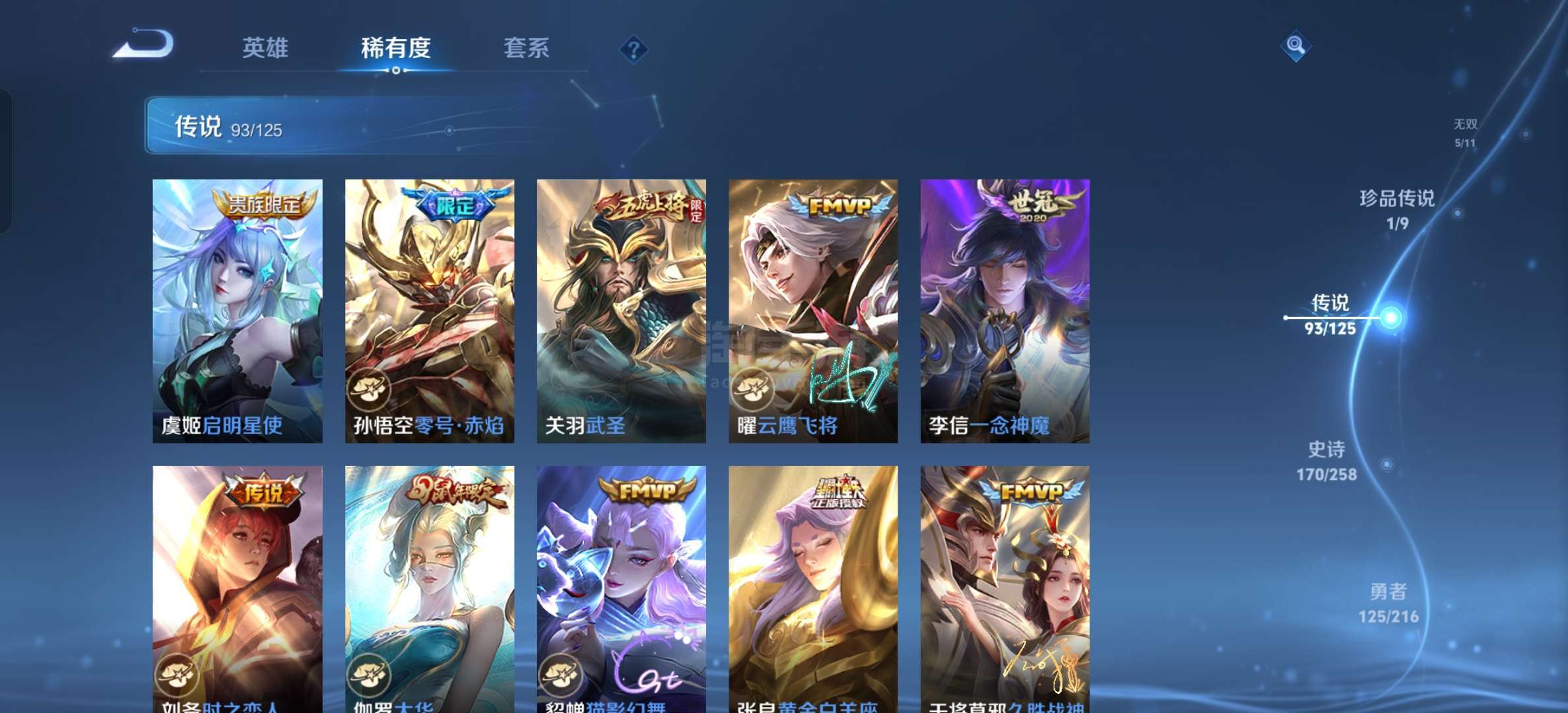 安卓微信 贵十女生号游走 60 段中路 54 段4典藏5无双1珍品93传说