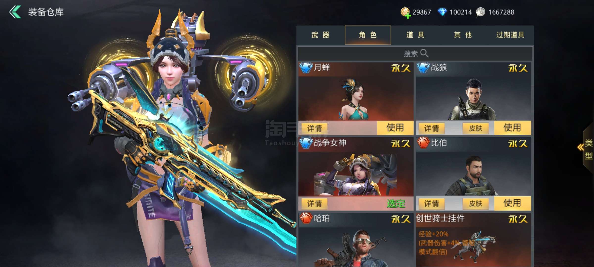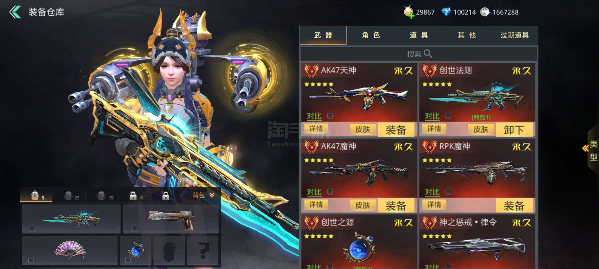 生死狙击【安卓官方】官服法则战争女神扇子广陵3万金币账号三无绑定2个主题神铸石5个主题神器自选以及各种资源看图片