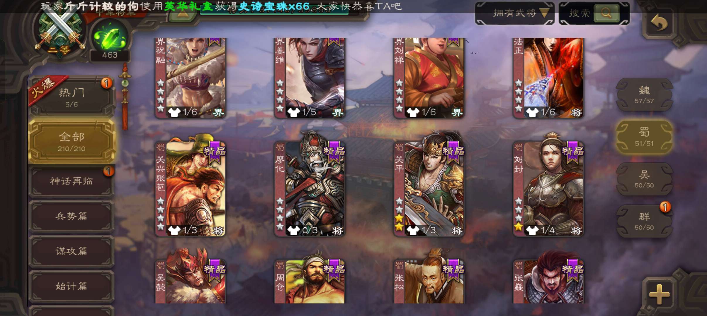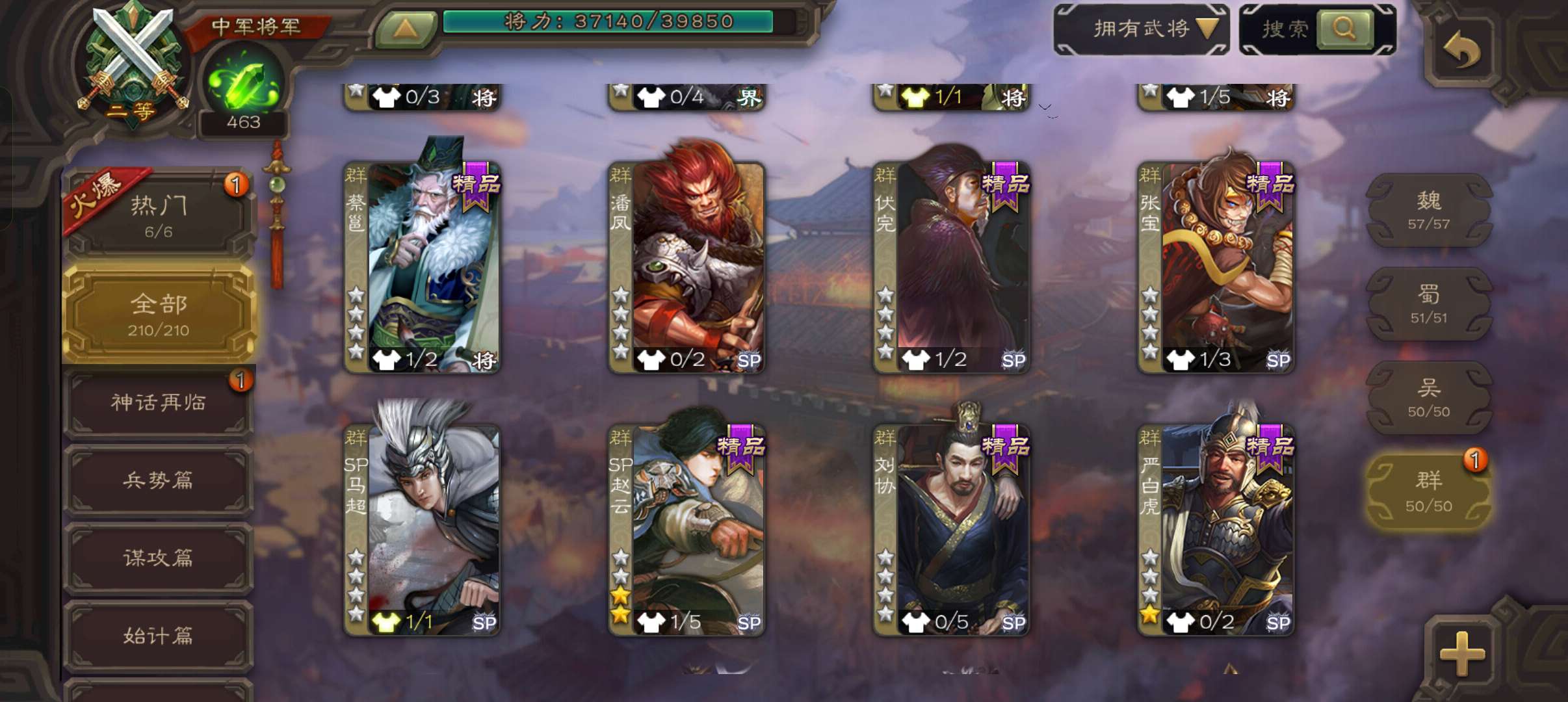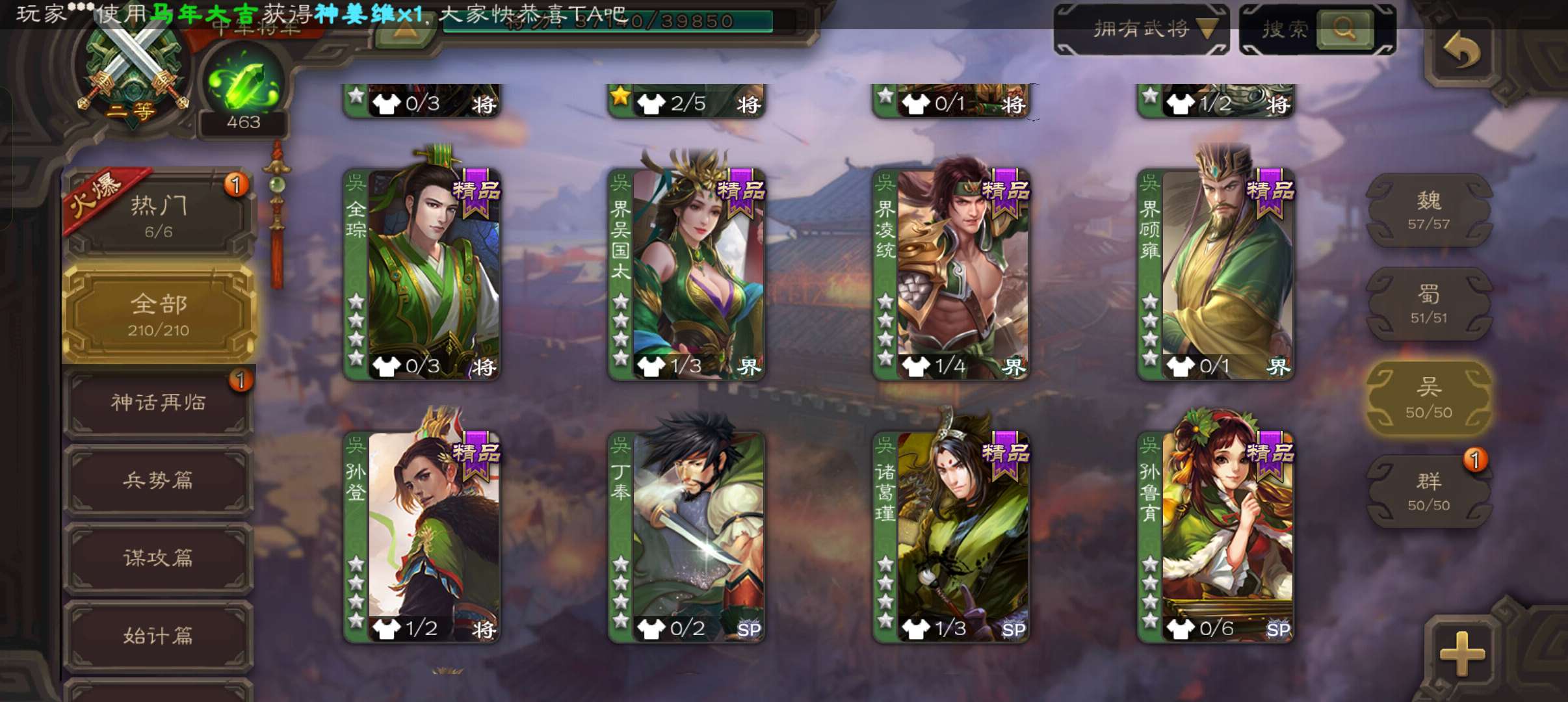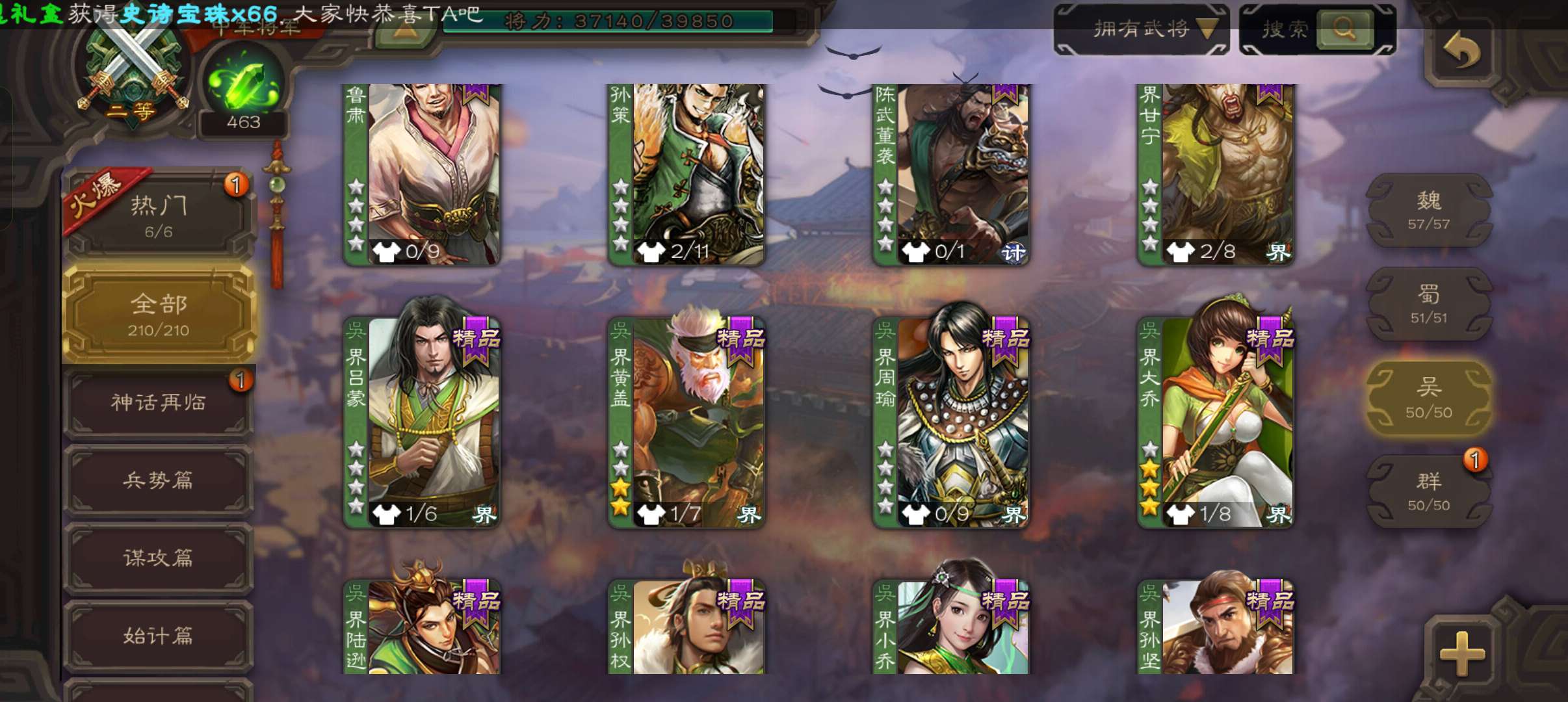 双史诗中军,总将210个,史诗程昱左慈,神吕蒙神周瑜界孙权界满宠羊钴袁涣张春华sp赵云
