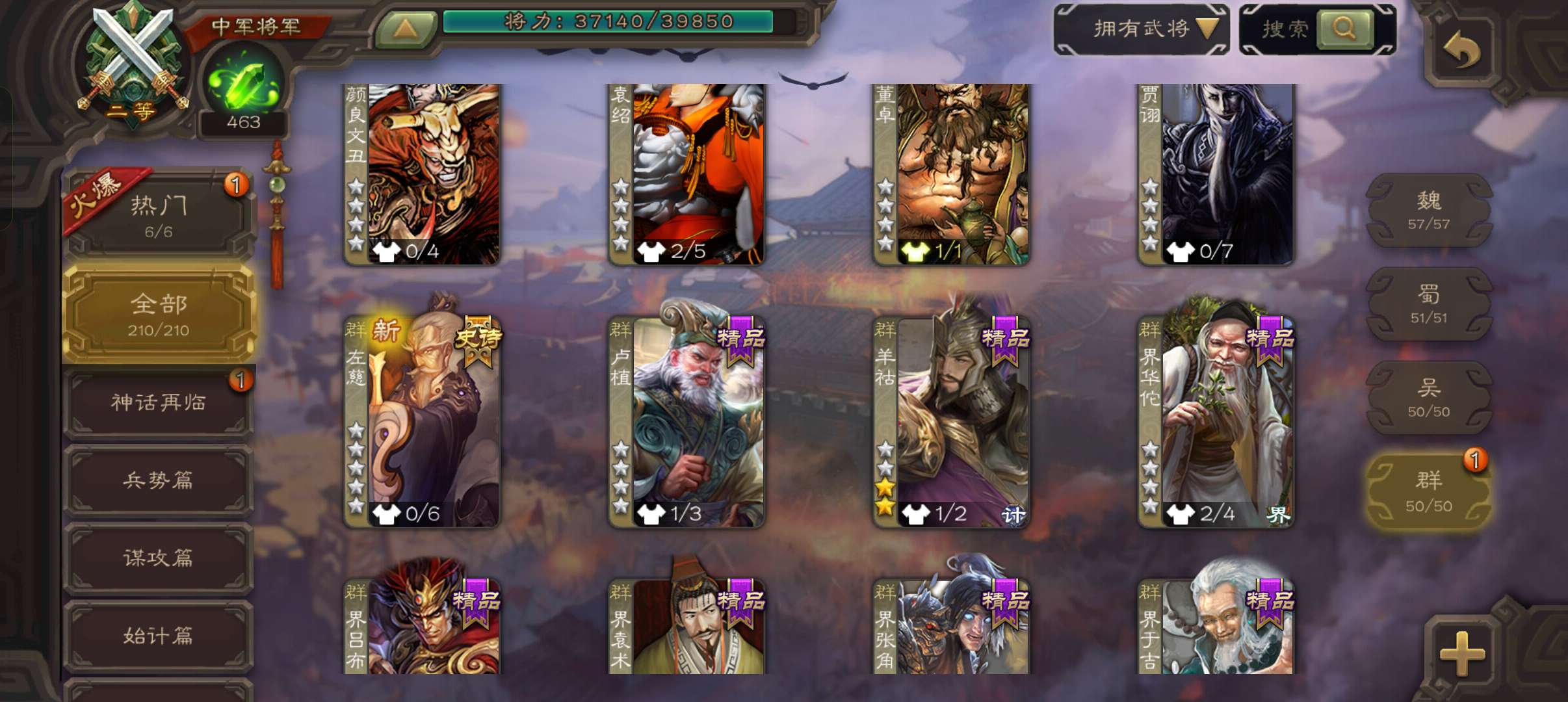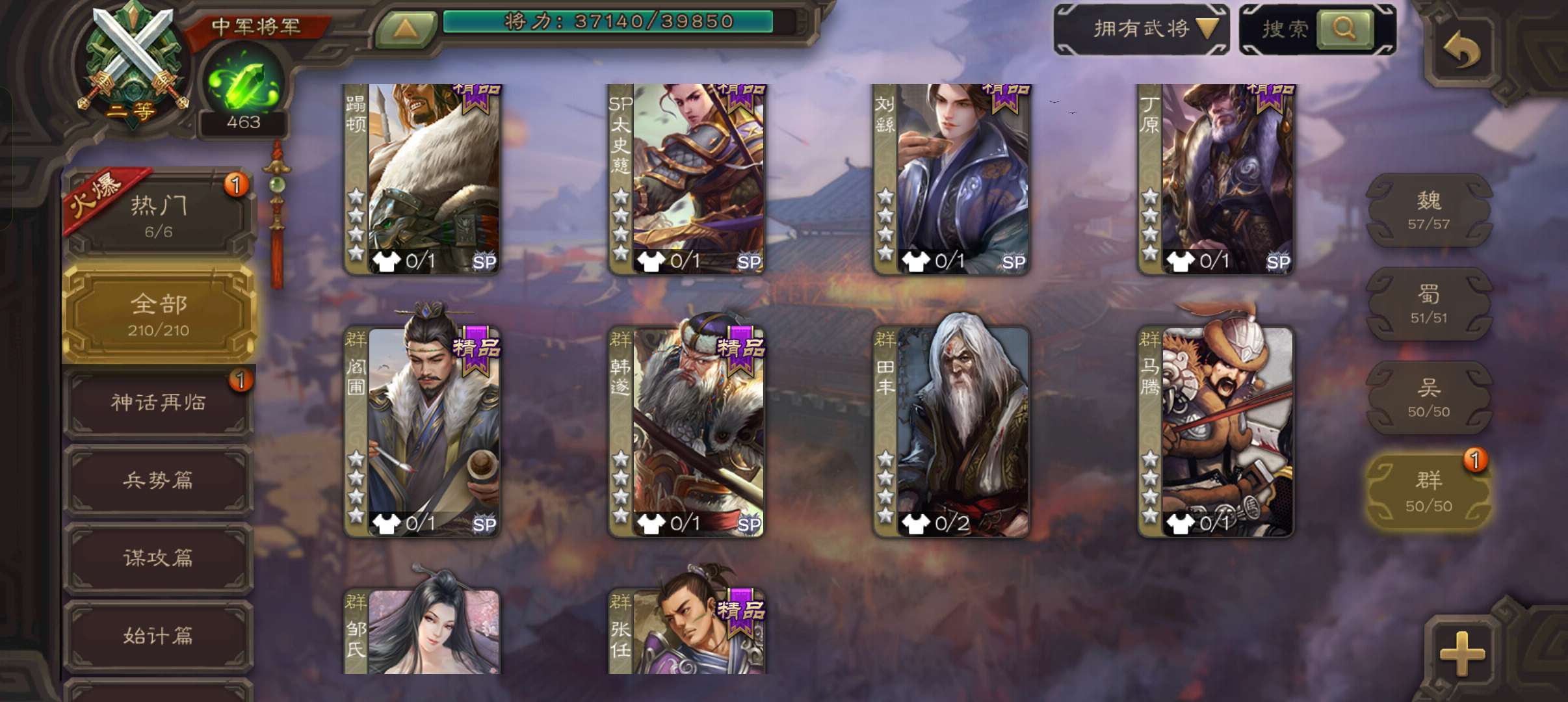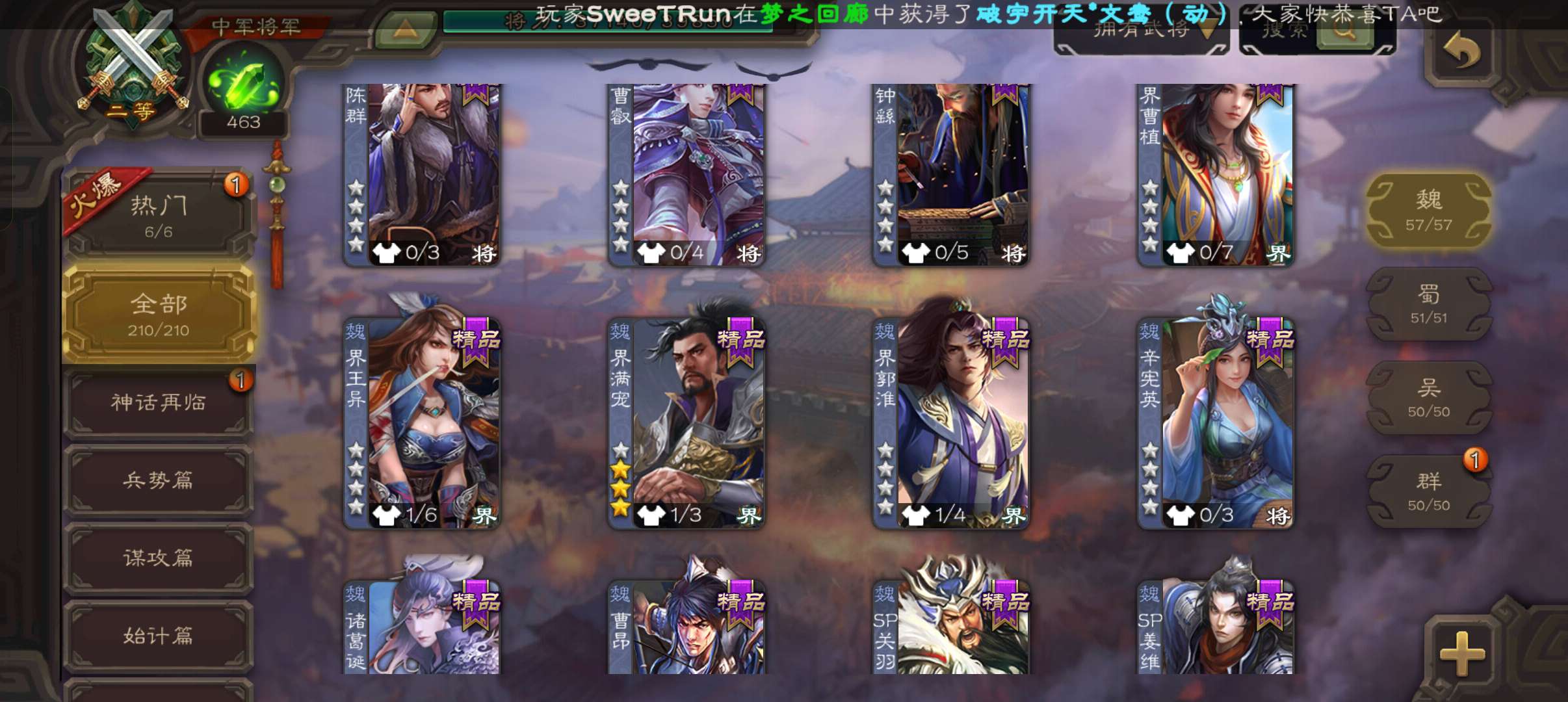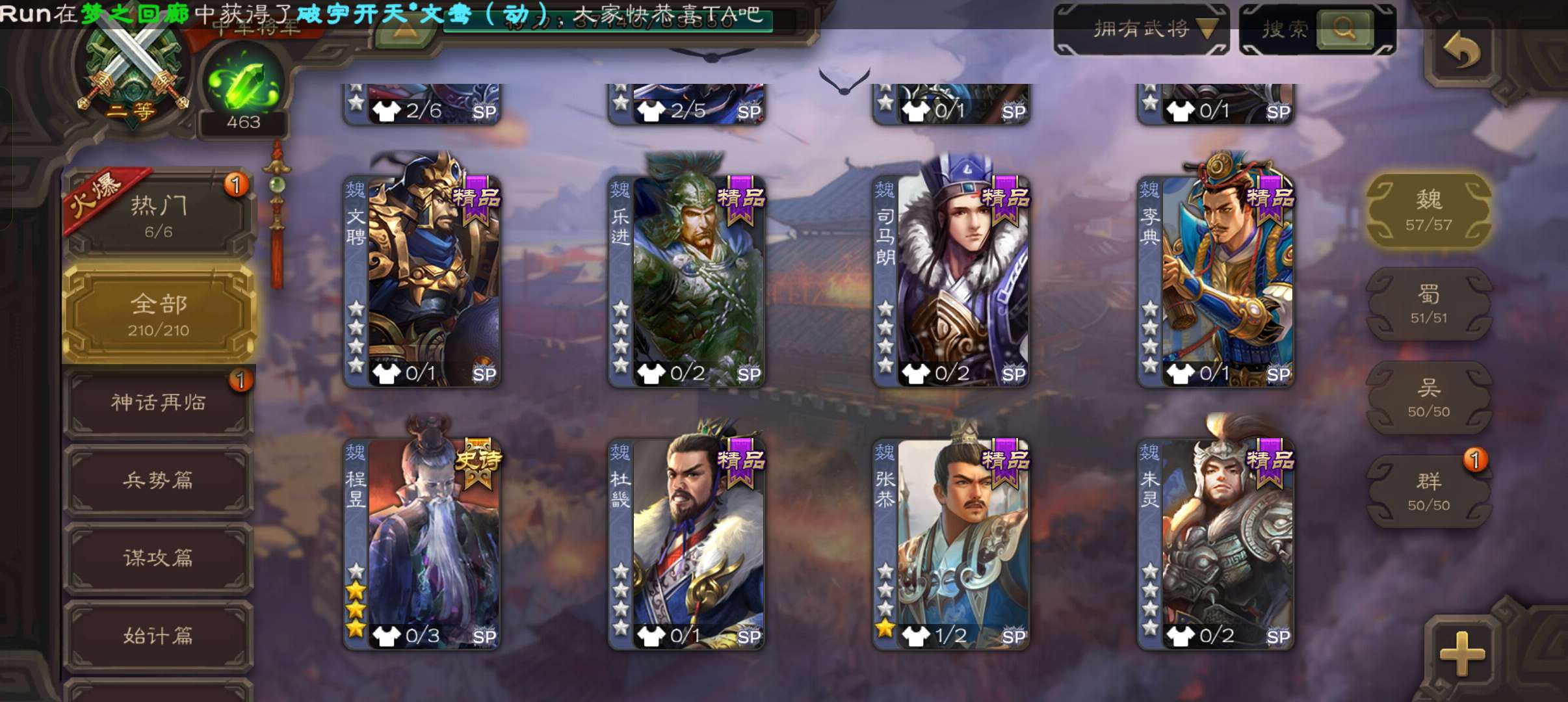 双史诗中军,总将210个,史诗程昱左慈,神吕蒙神周瑜界孙权界满宠羊钴袁涣张春华sp赵云