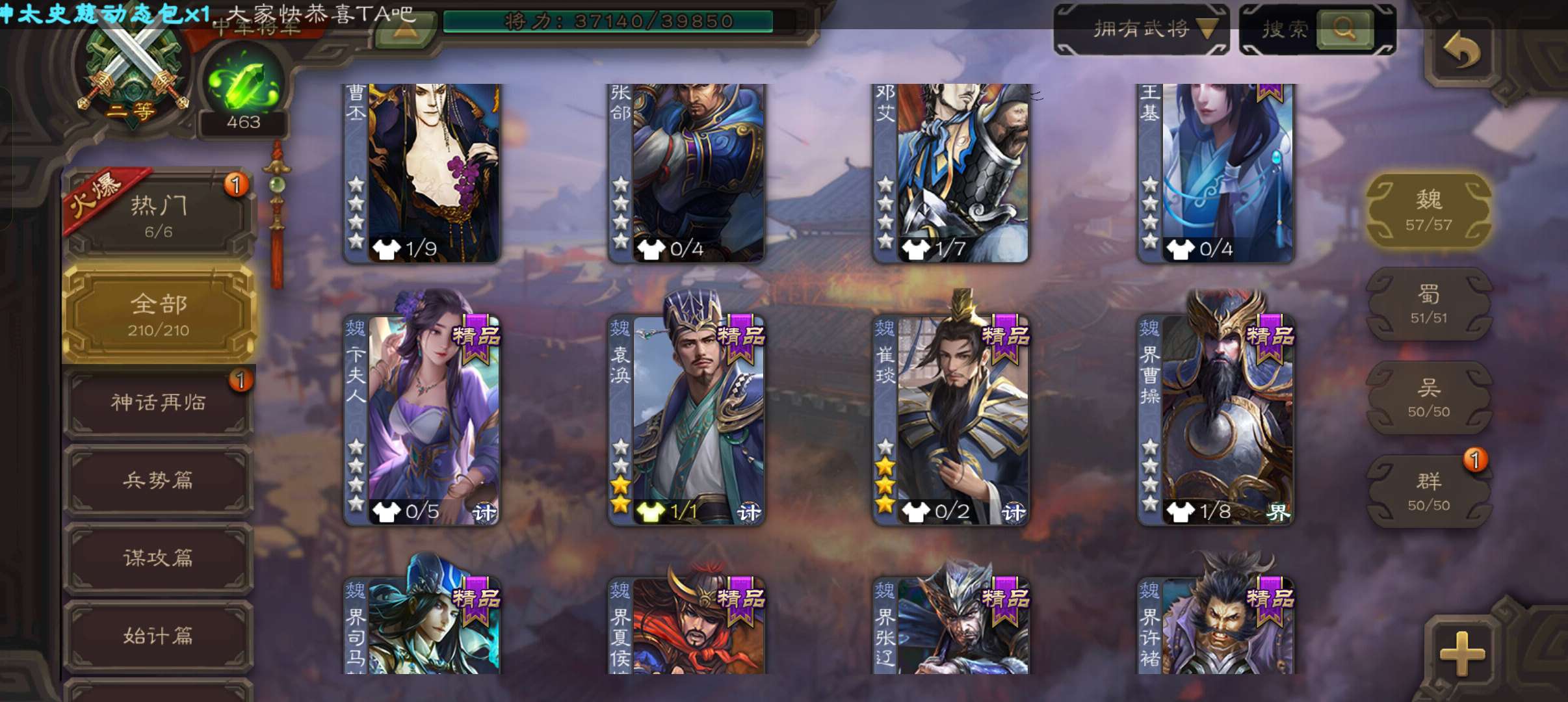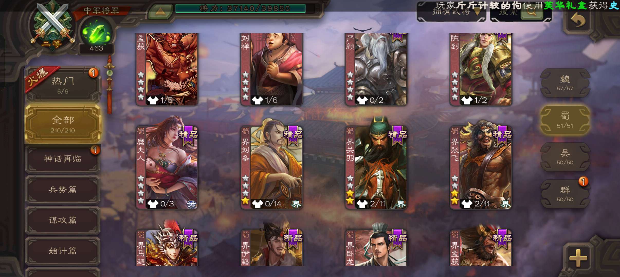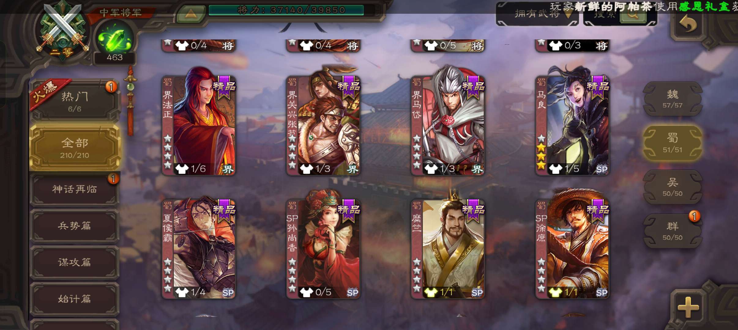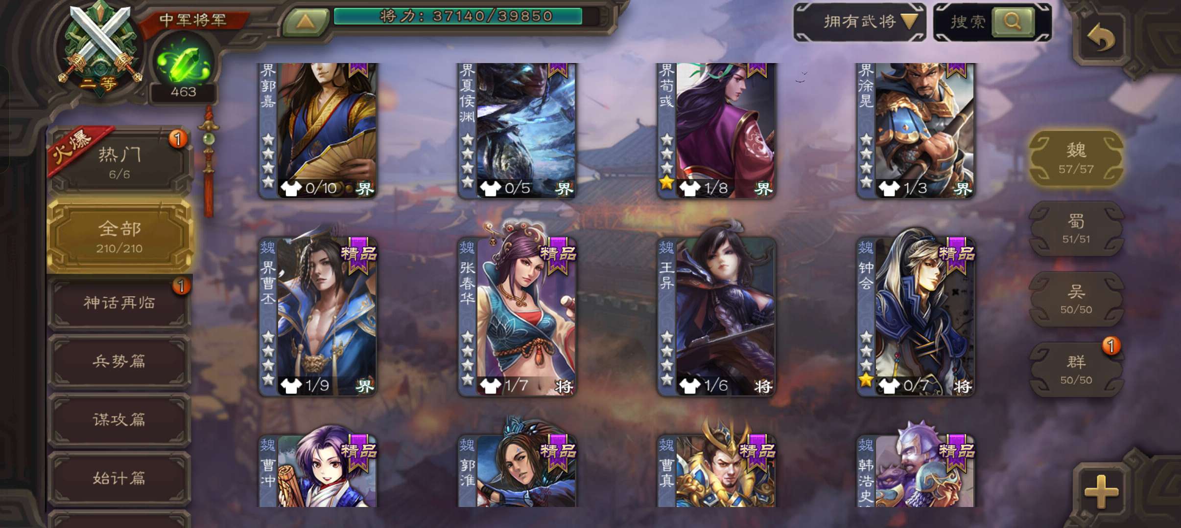 双史诗中军,总将210个,史诗程昱左慈,神吕蒙神周瑜界孙权界满宠羊钴袁涣张春华sp赵云