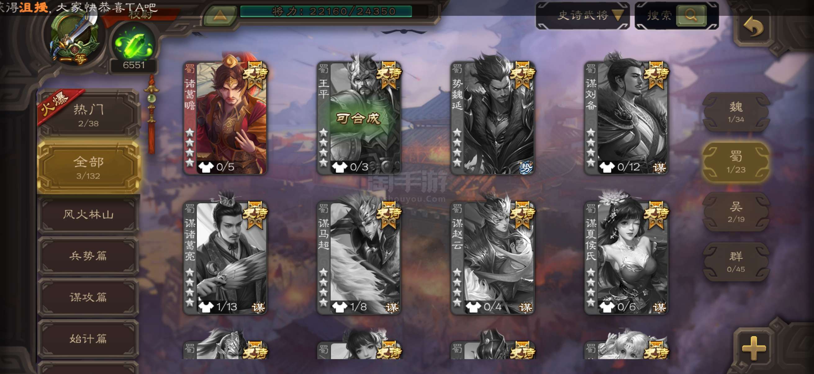 史诗武将数量: