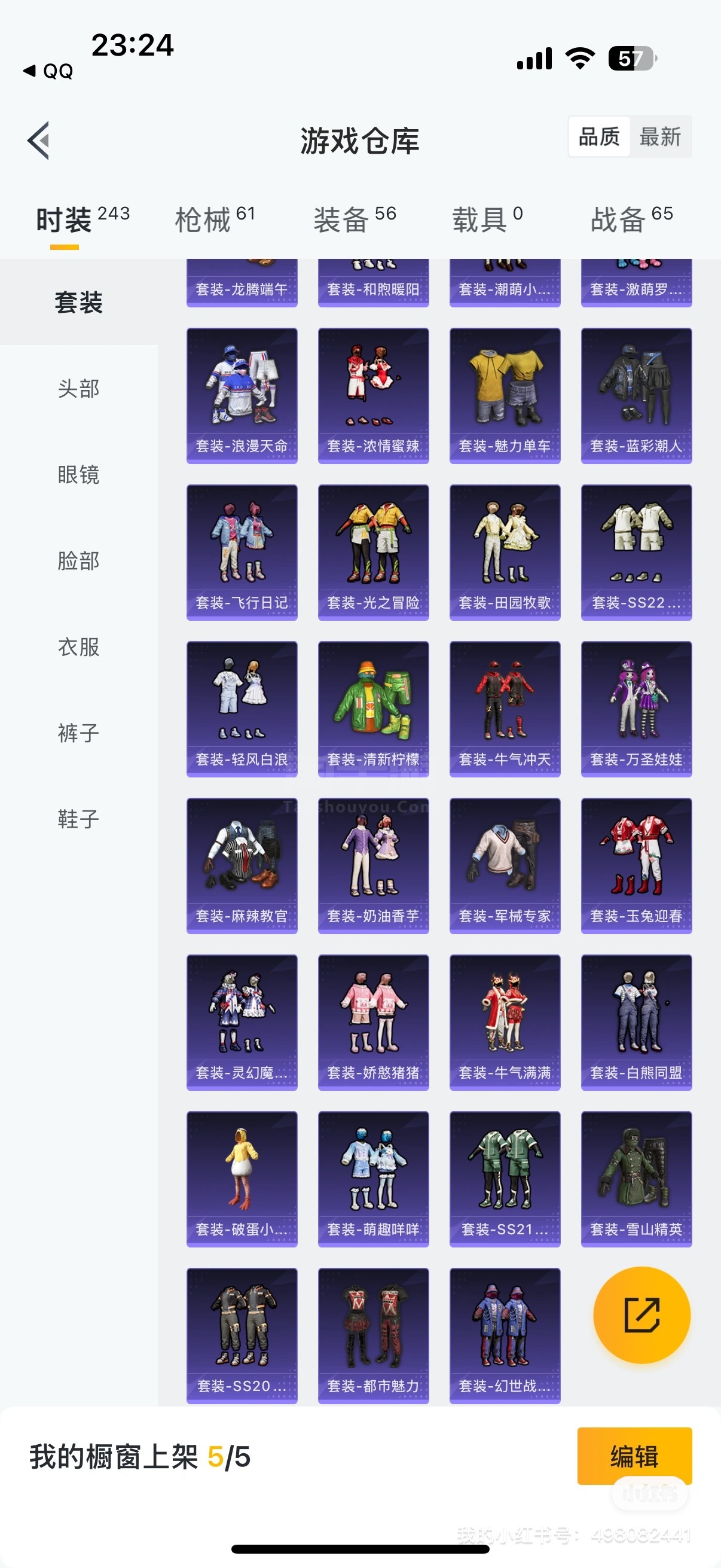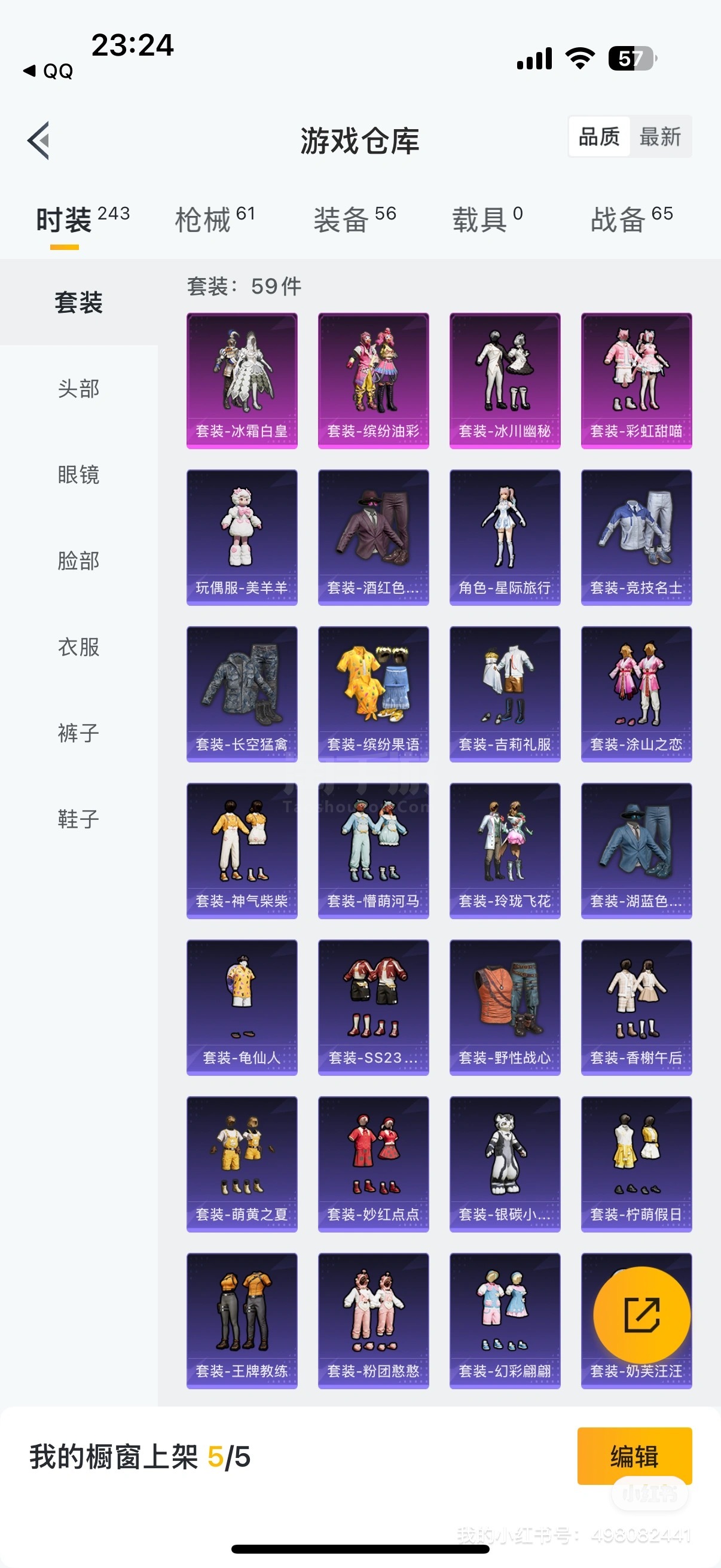 五粉装,还有很多热门军需和中转盘的副套。抽皮肤比较欧的一个号