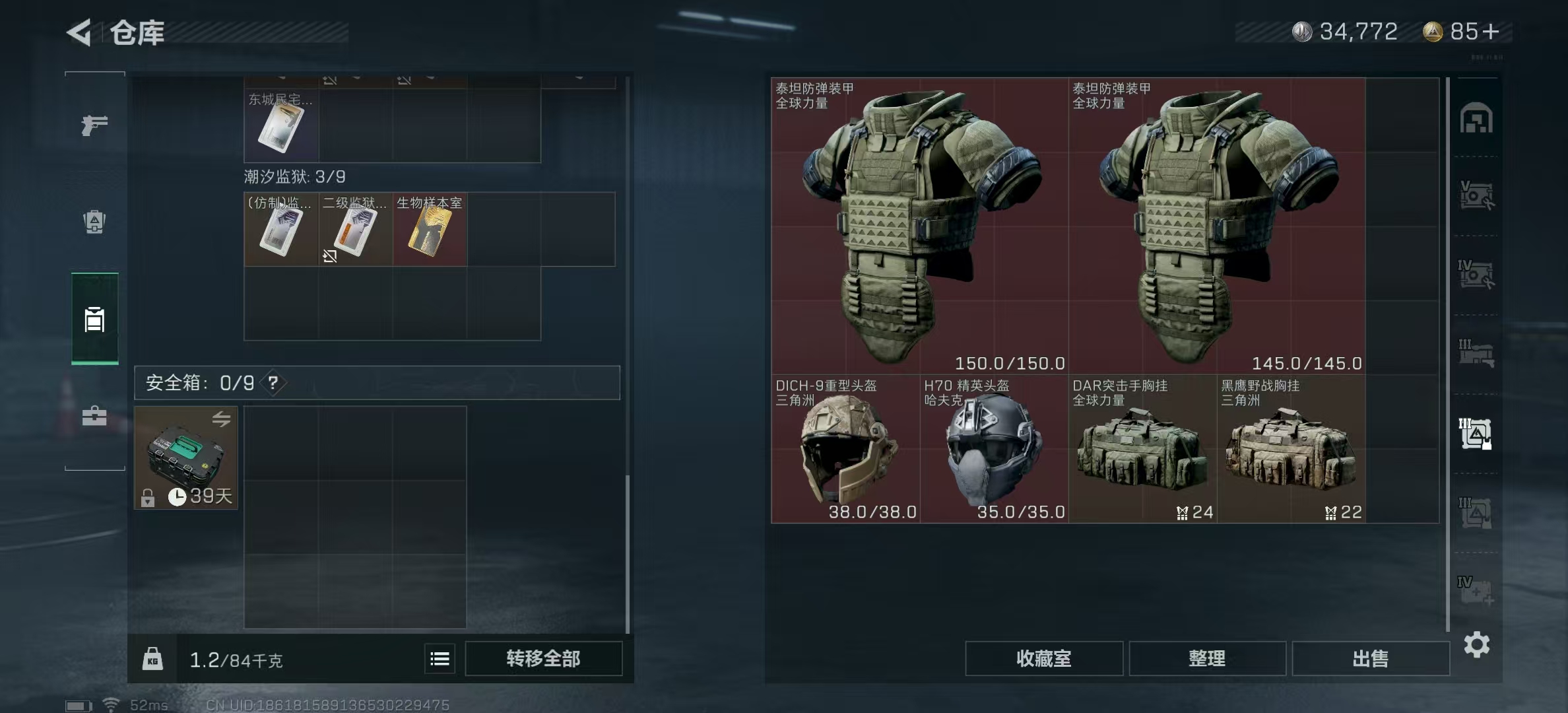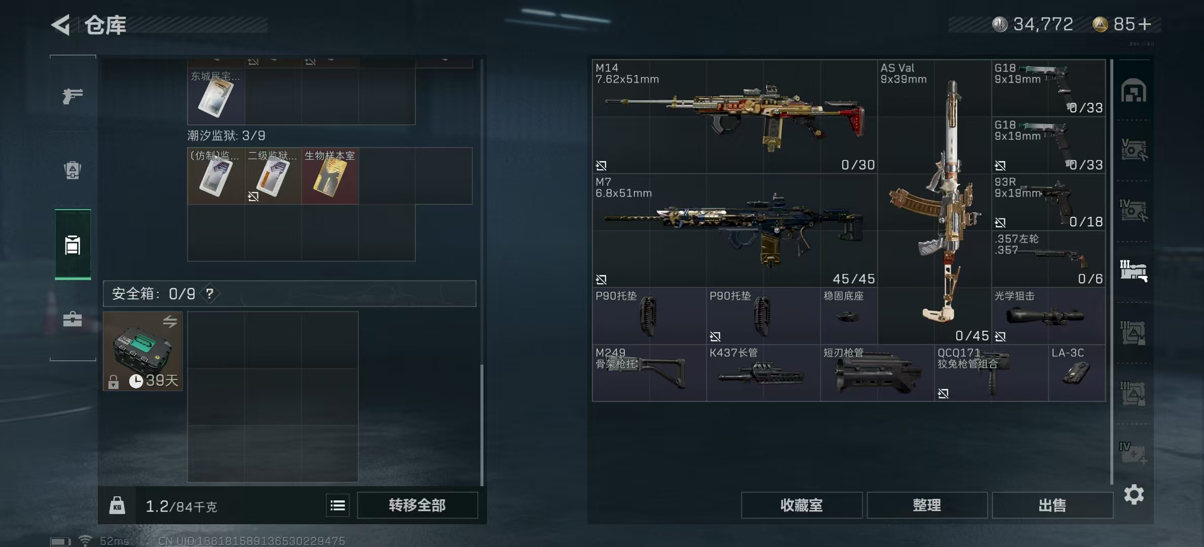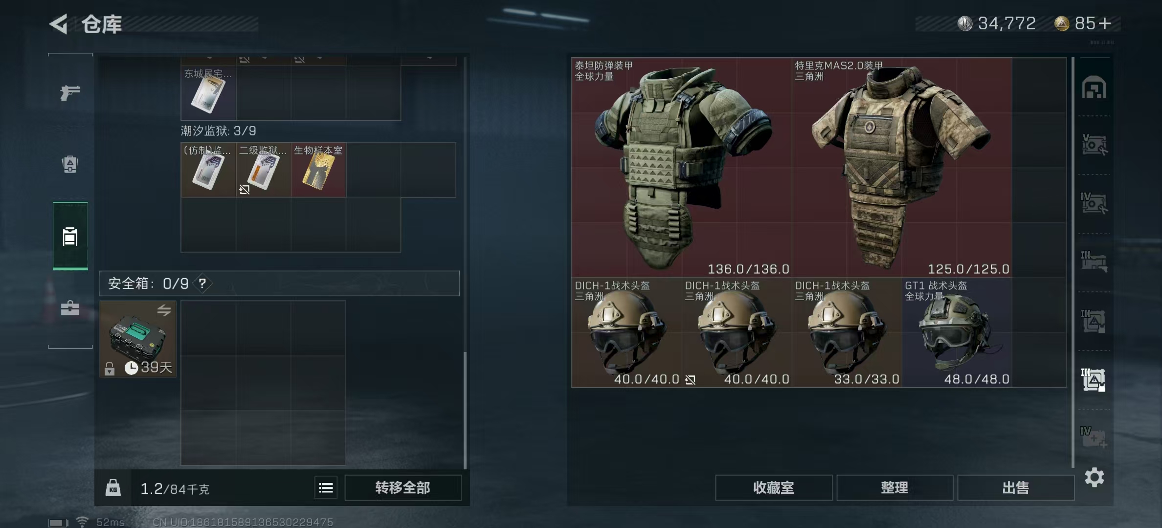 三角洲行动【安卓QQ】【可二次】169M 34772哈夫币 85--三角币|三角劵91级通行证已开60-烽火等级27-战场等级S5赛季3X3安全箱已开曼德尔砖-电玩高手*3曼德尔砖-美杜莎*1曼德尔砖-棱
