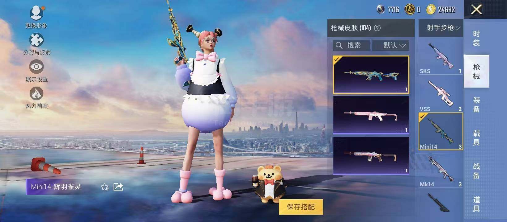 【特效枪等级】:汤姆逊-热量炸弹(五级),Kar98K-巳巳如意(五级),MG-36-幻彩电音(七级)