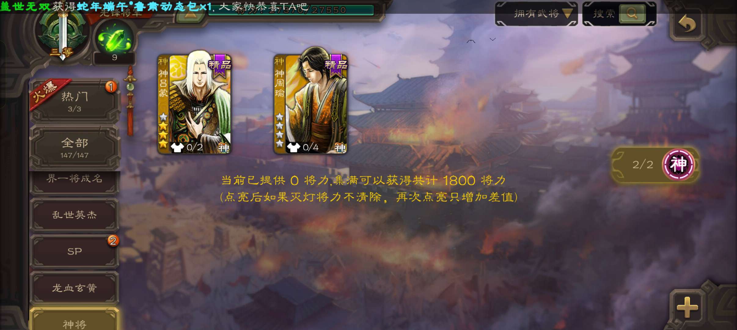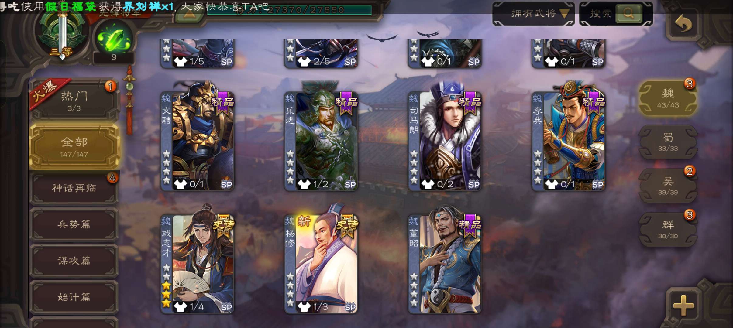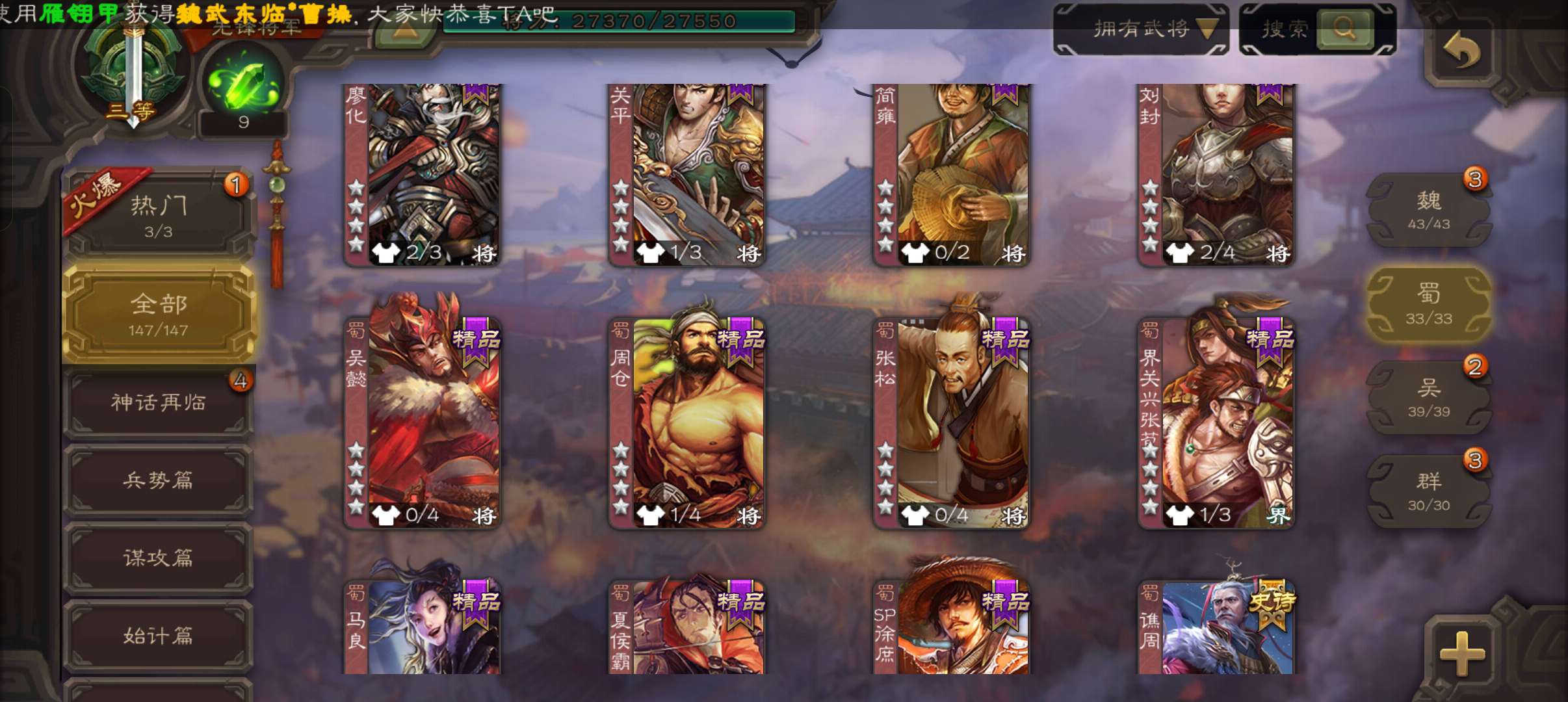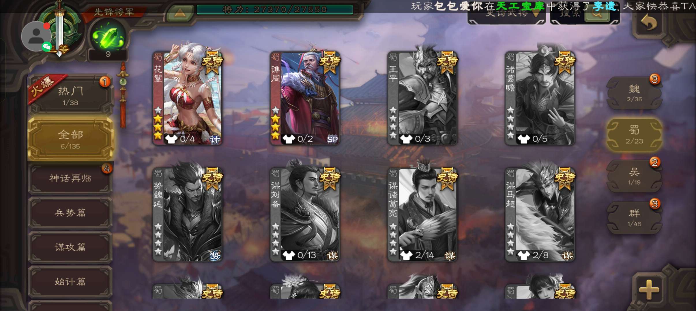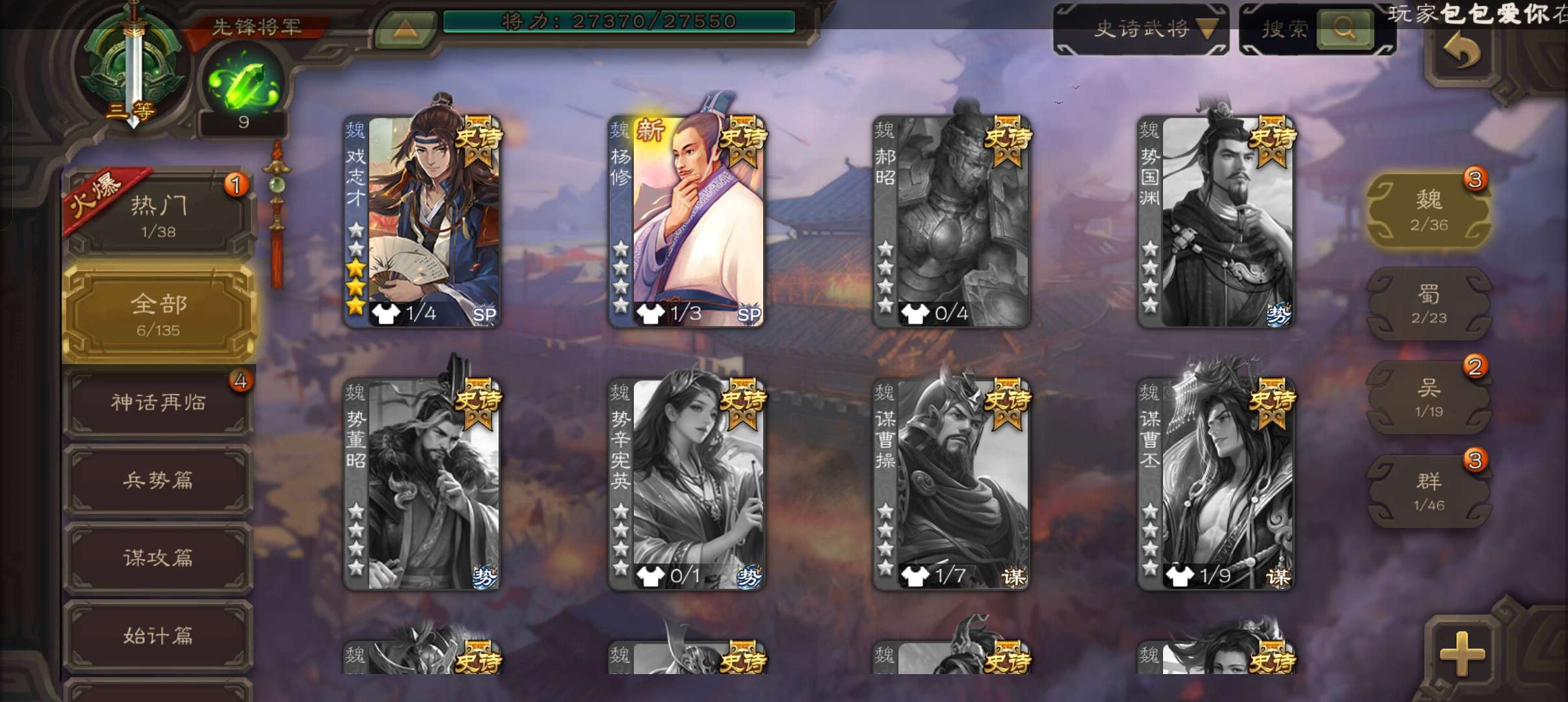 史诗武将数量: