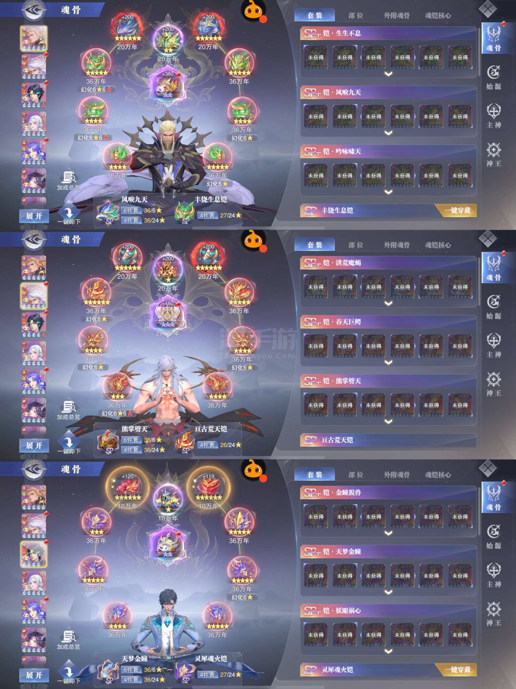 3魂铠核心。4专千道流2幻金。4专修唐1幻金。4专阿银 奥