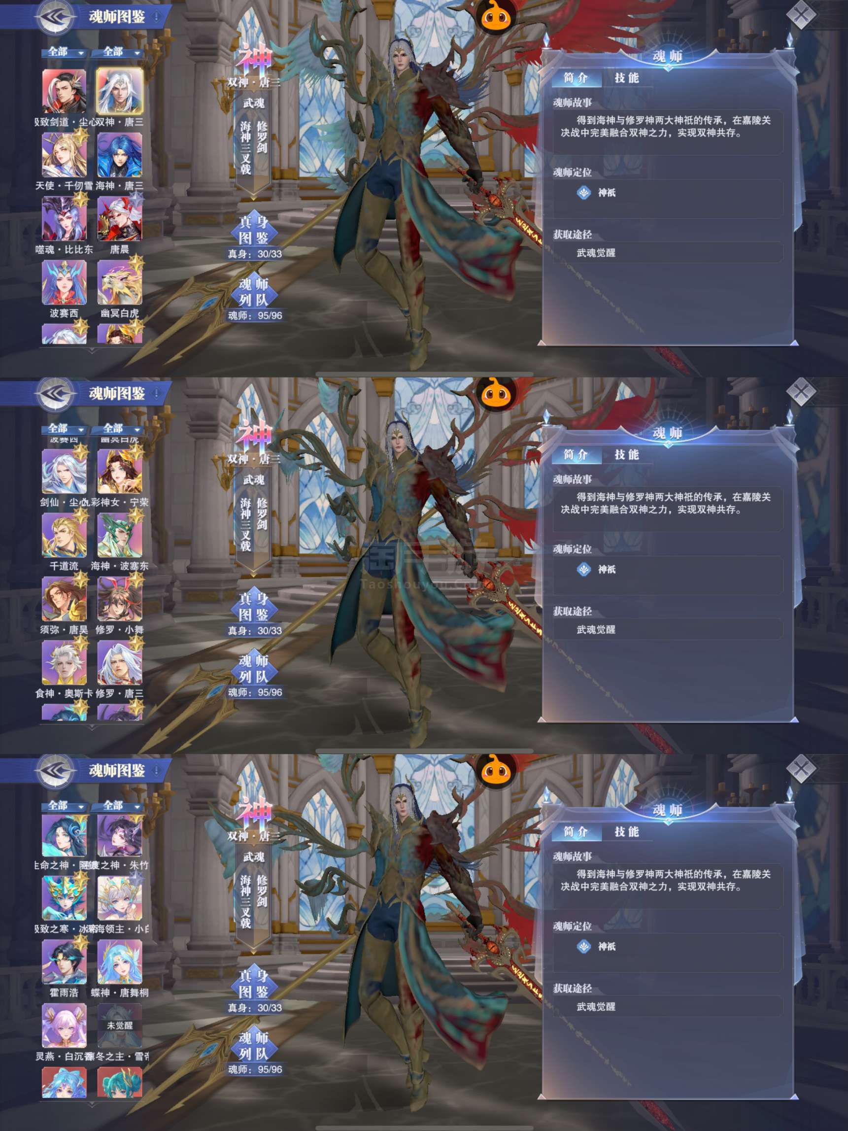 1033亿战力,大供奉,双神唐三23sp。2魂铠核心。4专修唐 阿银。1翅膀双神。4专千道流1幻金