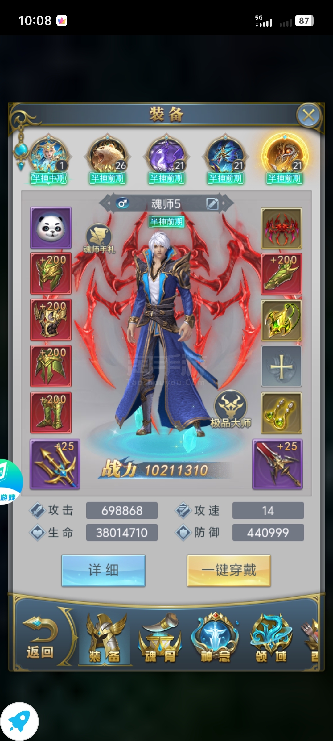 神魂极速49服区一,全区第一个三阶,中枢吃一半,1套寒草,还有两个大件,1套红骨