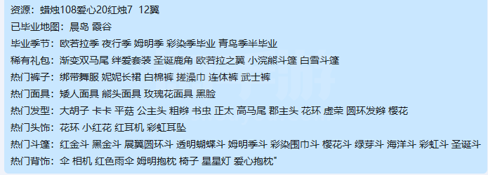 稀有礼包:渐变双马尾 绊爱套装 圣诞鹿角 欧若拉之翼 小浣熊斗篷 白雪斗篷