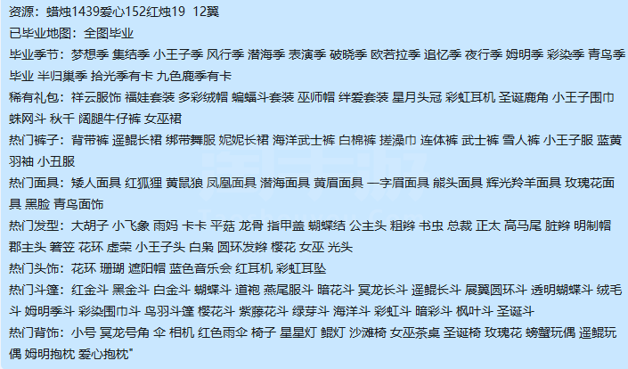 毕业季节:梦想季 集结季 小王子季 风行季 潜海季 表演季 破晓季 欧若拉季 追忆季 夜行季 姆明季 彩染季 青鸟季毕业 半归巢季 拾光季有卡 九色鹿季有卡