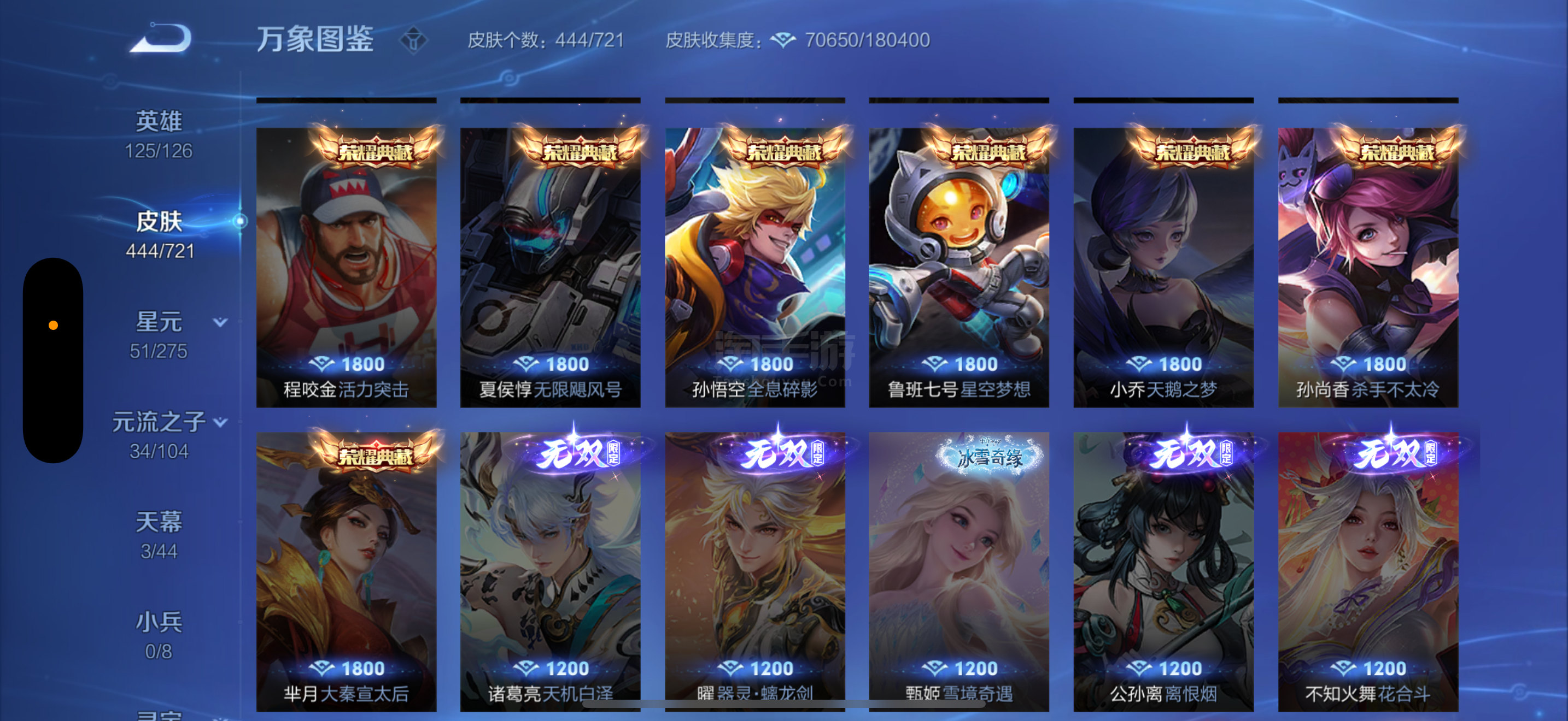 iOS微信 v10 444皮肤4典藏30传说 小国瑶妹15222战力45段游走9@
