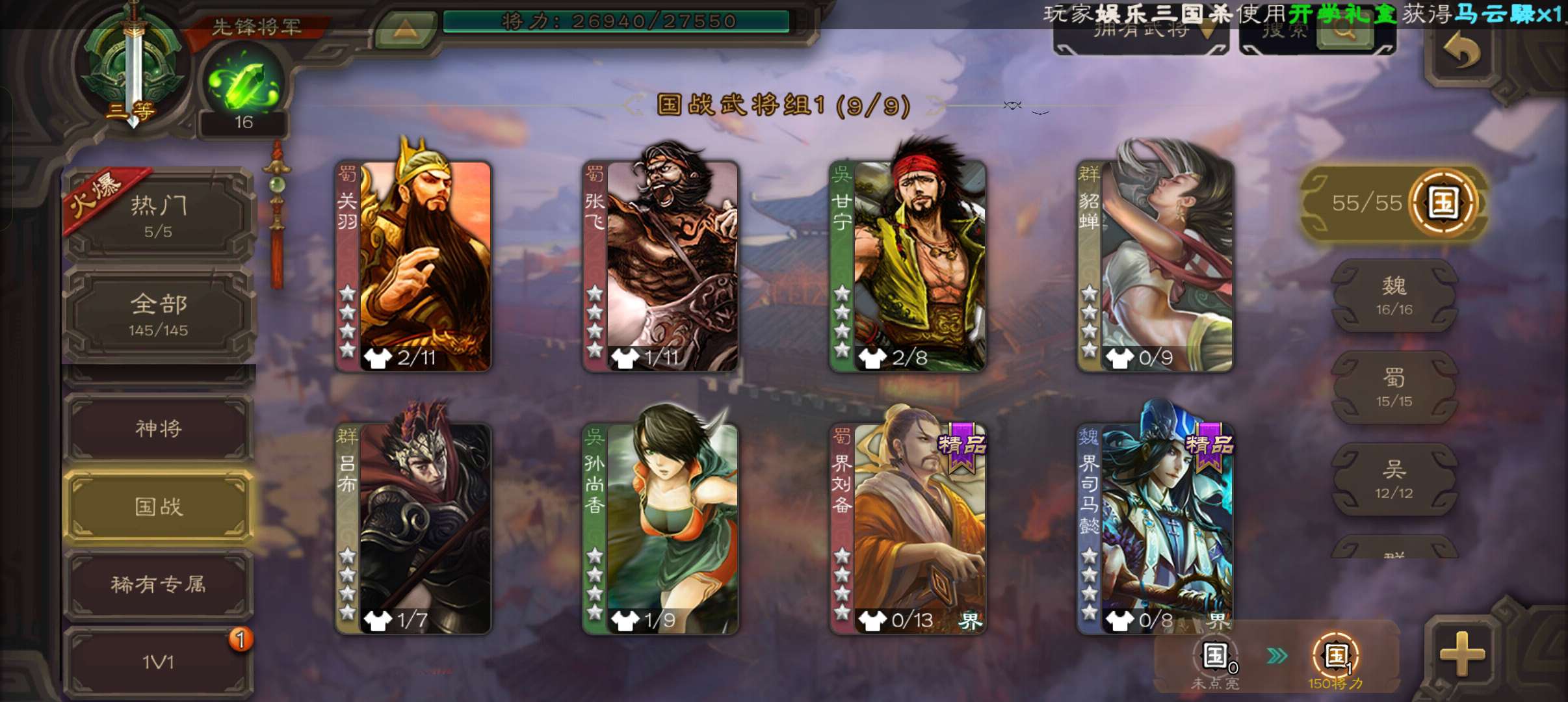 5史诗双神先锋,6万豆4万4羽毛,回廊动白马张让界朱然谯周左慈,神周瑜神吕蒙谋韩当甘夫人145将