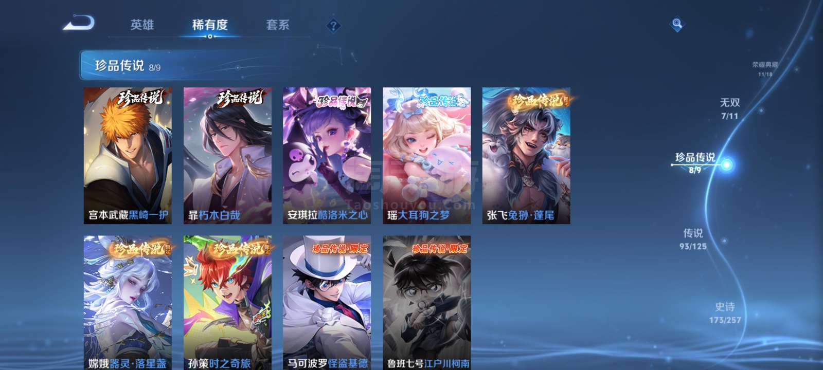 安卓QQV10 11典藏 7无双 皮肤563 传说93 珍品传说8 貂蝉韩信-李白 QQ钱包无法注销,介意勿拍