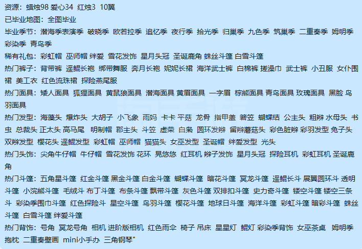 稀有礼包:彩虹帽 巫师帽 绊爱 雪花发饰 星月