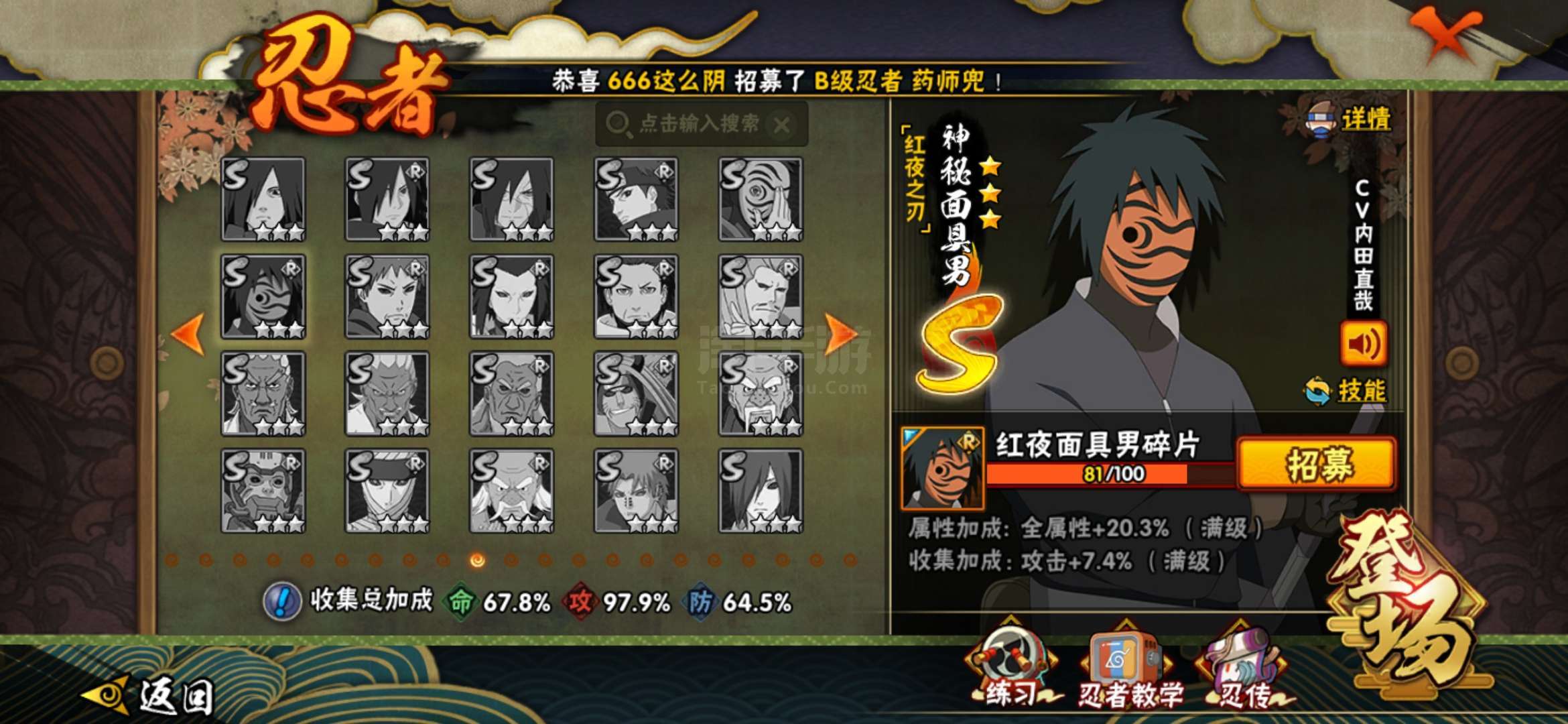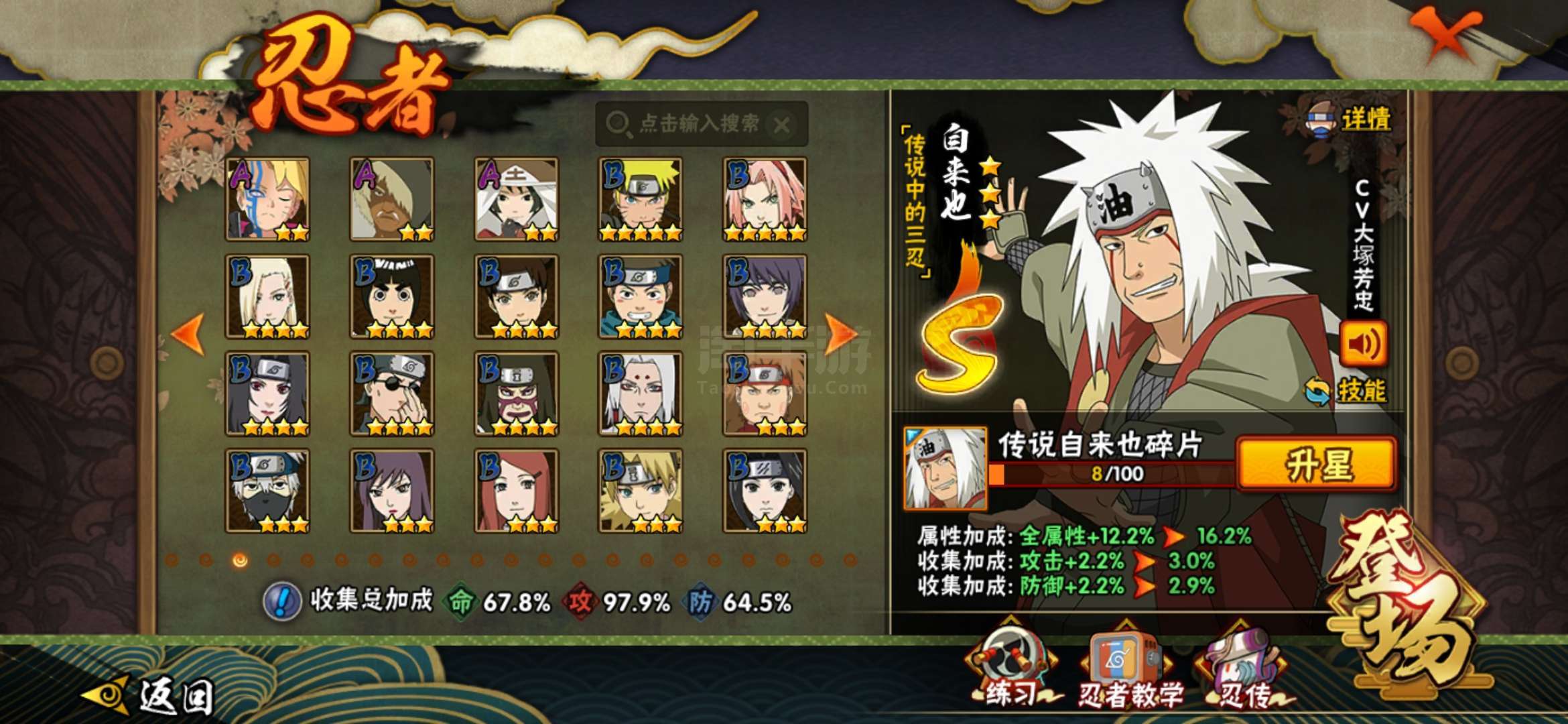 安卓QQ-可刀,价格来谈,忍法帖忍者有六尾,一百六十九级,可以自己升级换创立柱间和红叶带土新老忍者都有