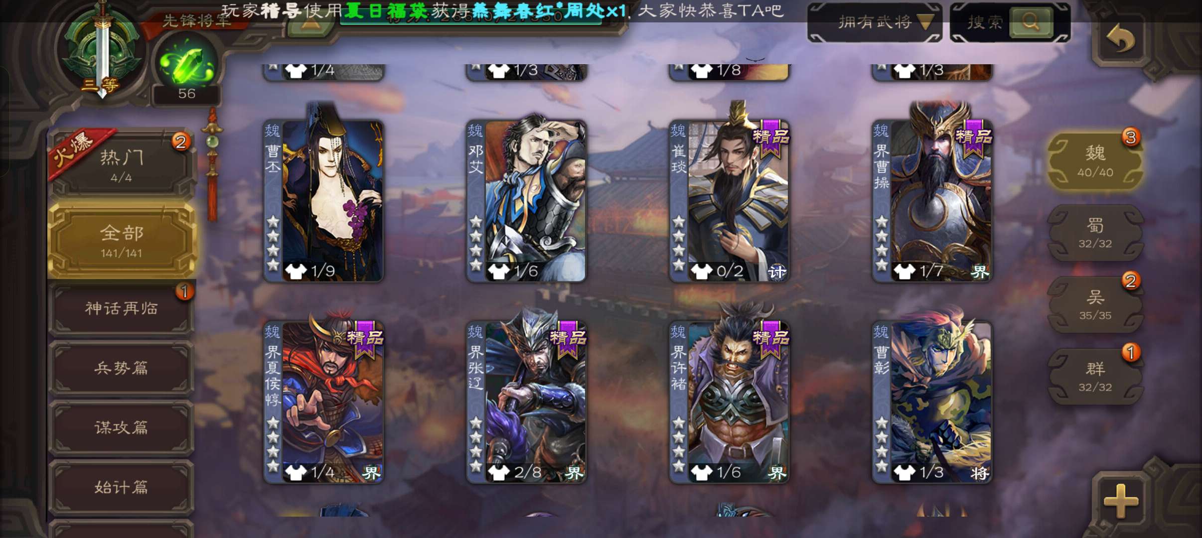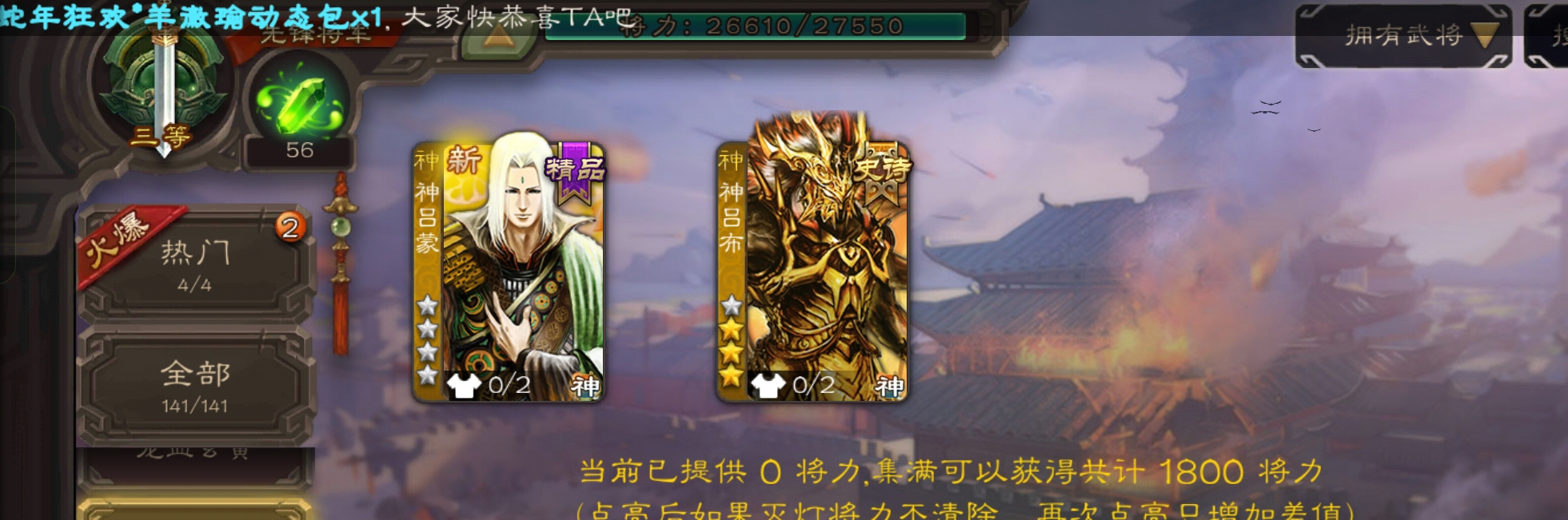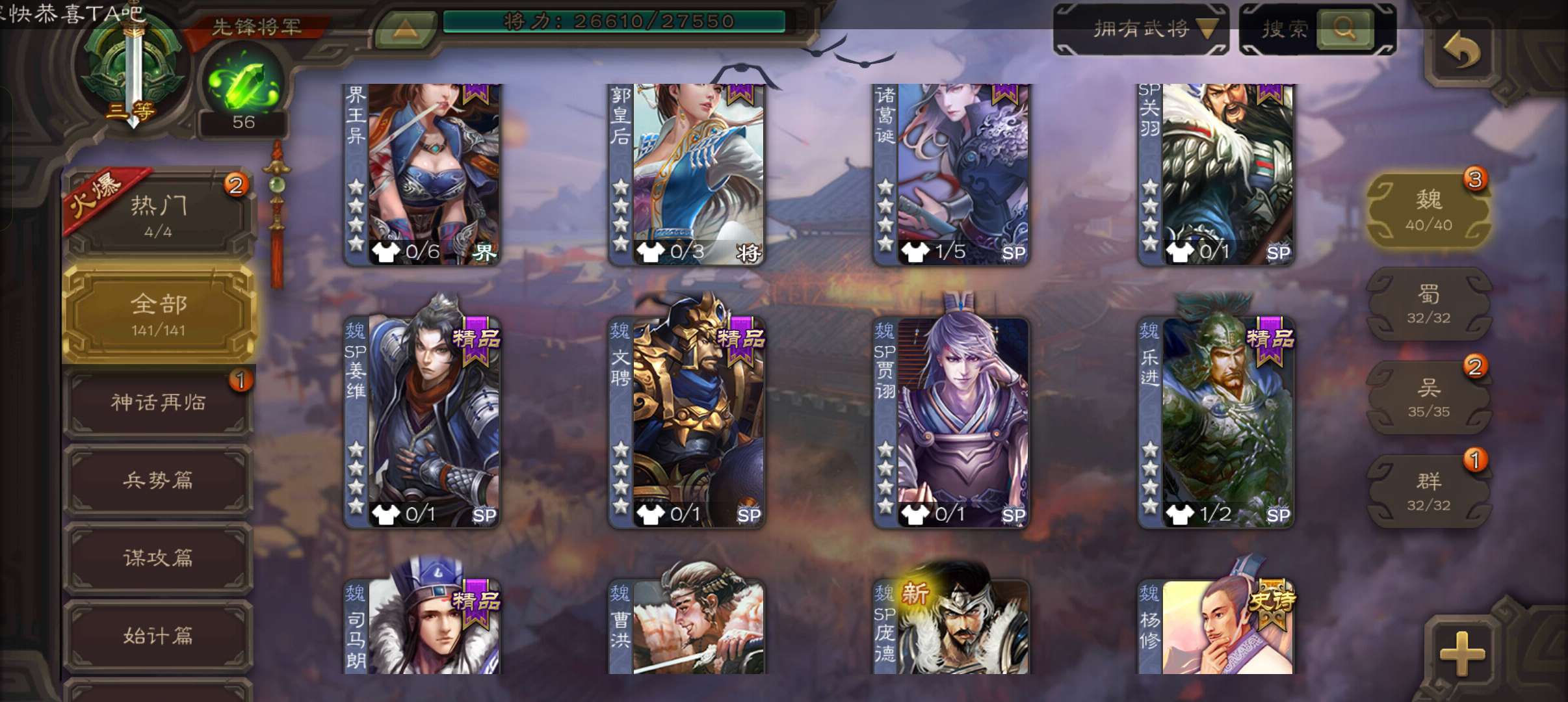 史诗武将数量: