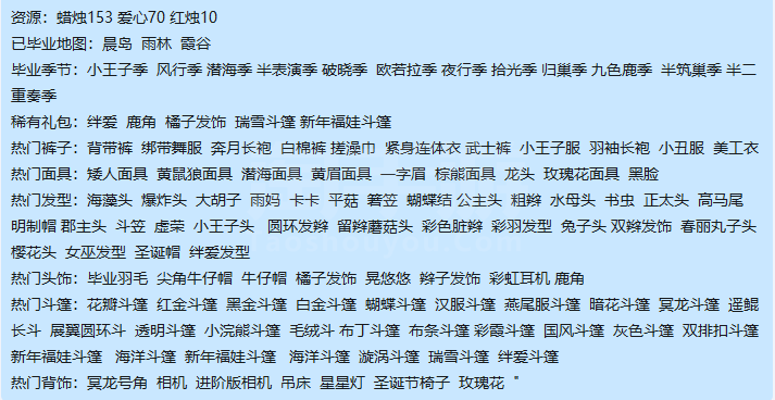 毕业季节:小王子季 风行季 潜海季 半表演季 破晓季 欧若拉季 夜行季 拾光季 归巢季 九色鹿季 半筑巢季 半二重奏季