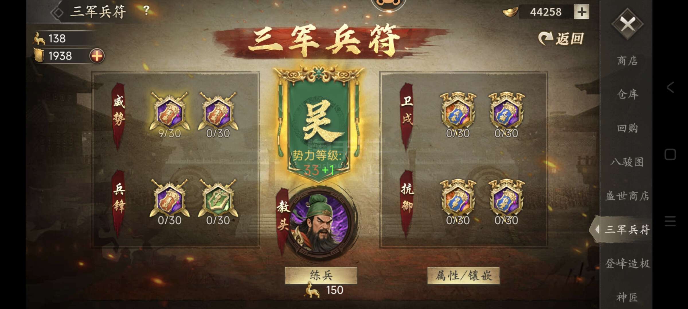安卓当乐 2橙5紫符、全区吴旗最高、九车七阵、尚方宝剑红颜弓、3星小乔3星吕布、3匹满级马、4层关羽