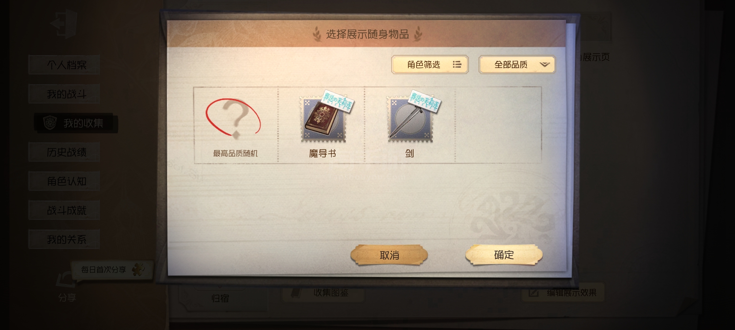 随身物品: