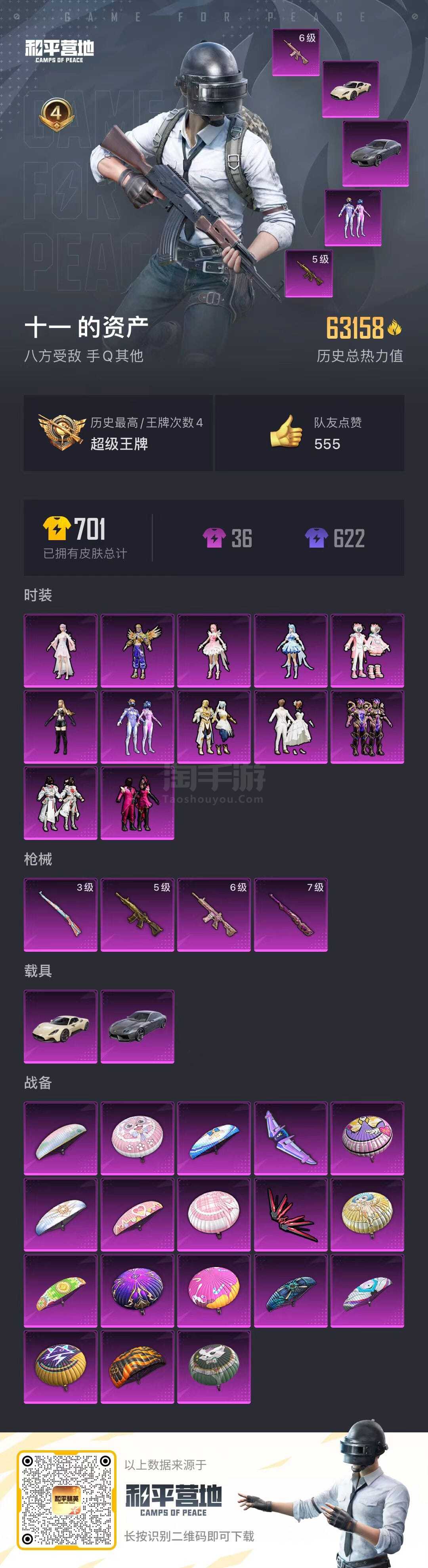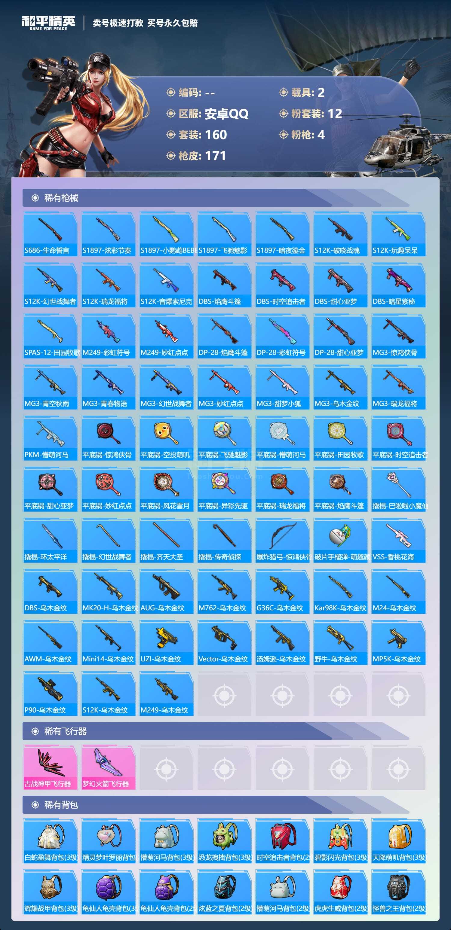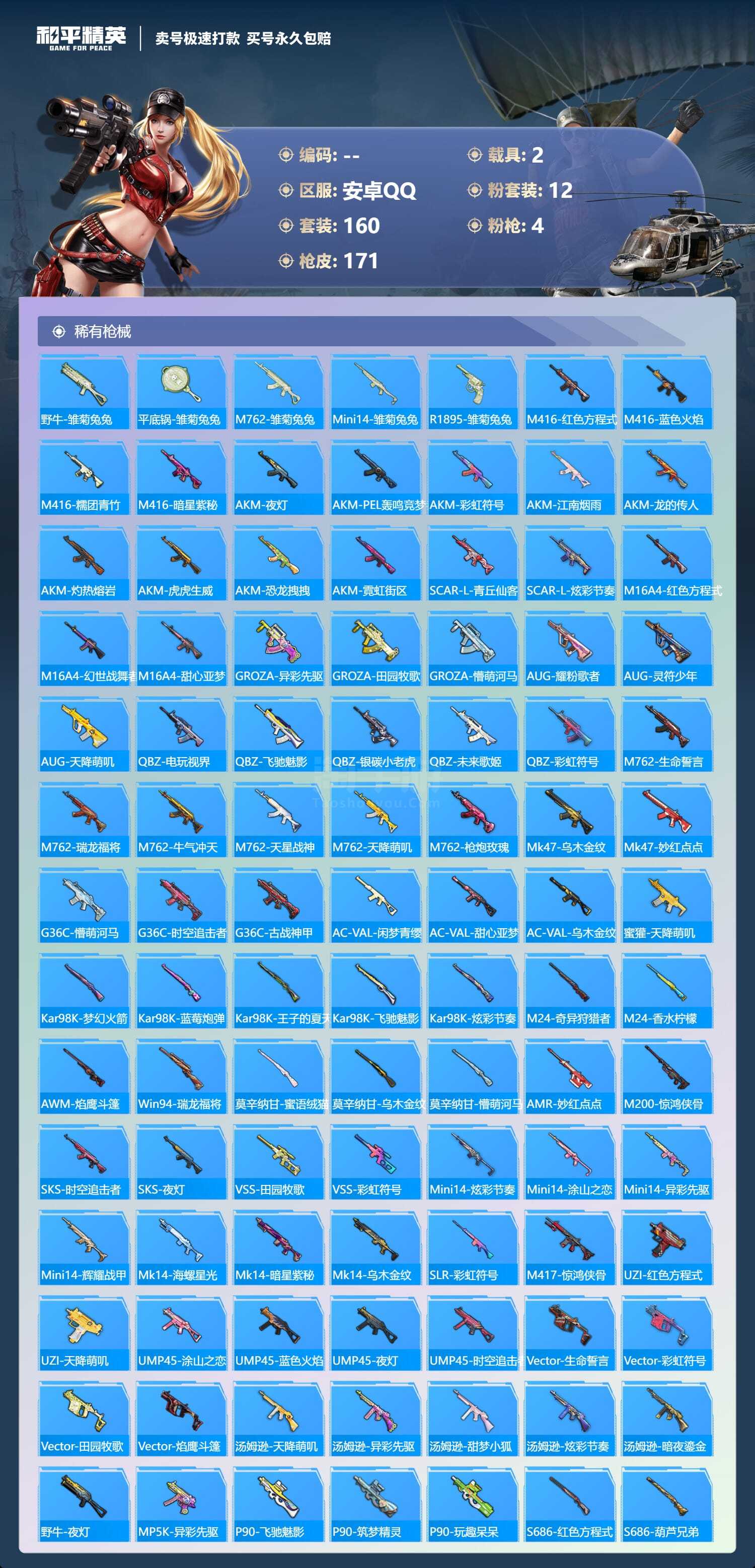 a3835/安卓QQ/-4王牌印记-12粉装-4特效枪-2载具-63158热力值-160套装-171