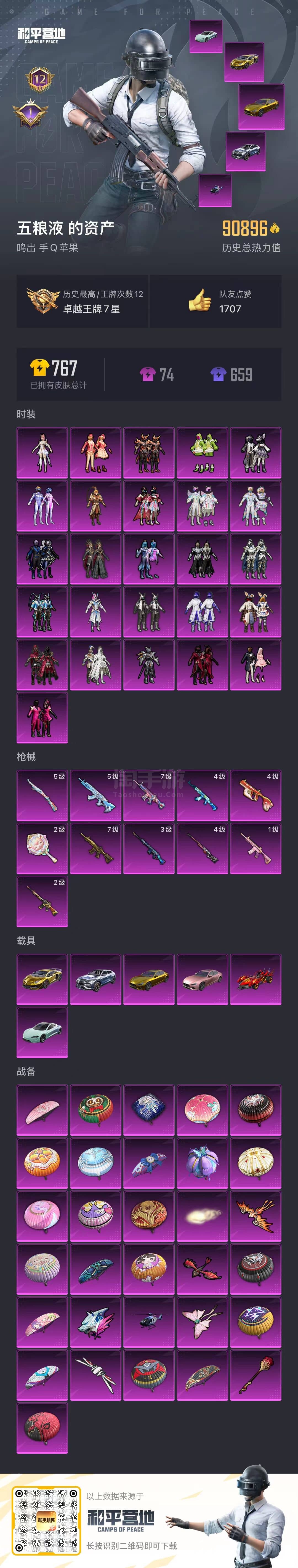 a3682/苹果QQ/双字ID:鸣岀/-12王牌印记-26粉装-11特效枪-6载具-90896热力值