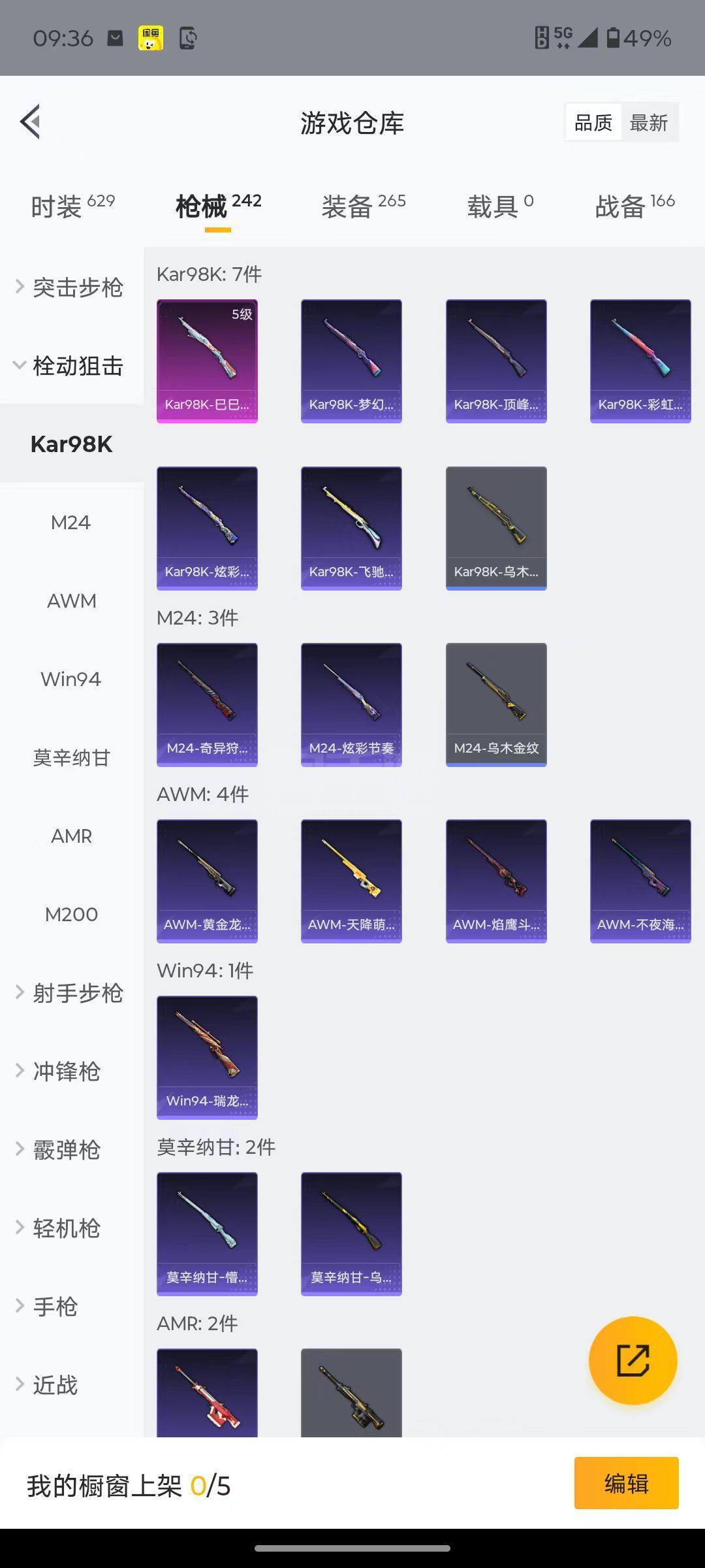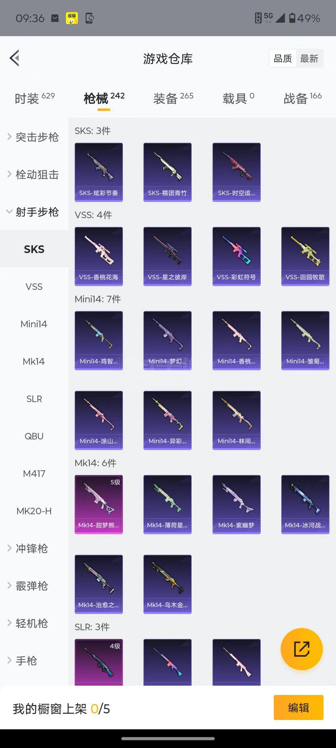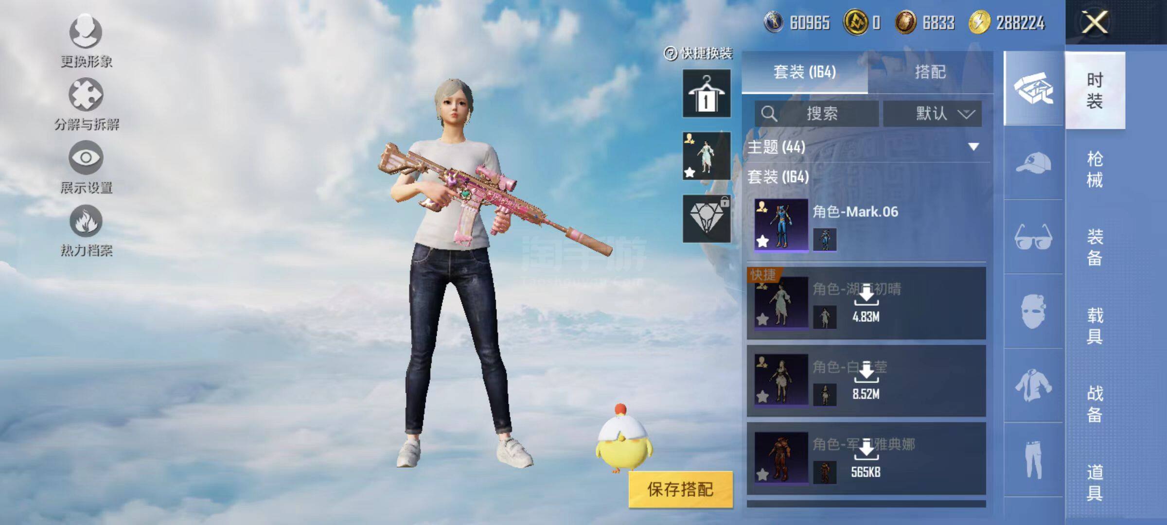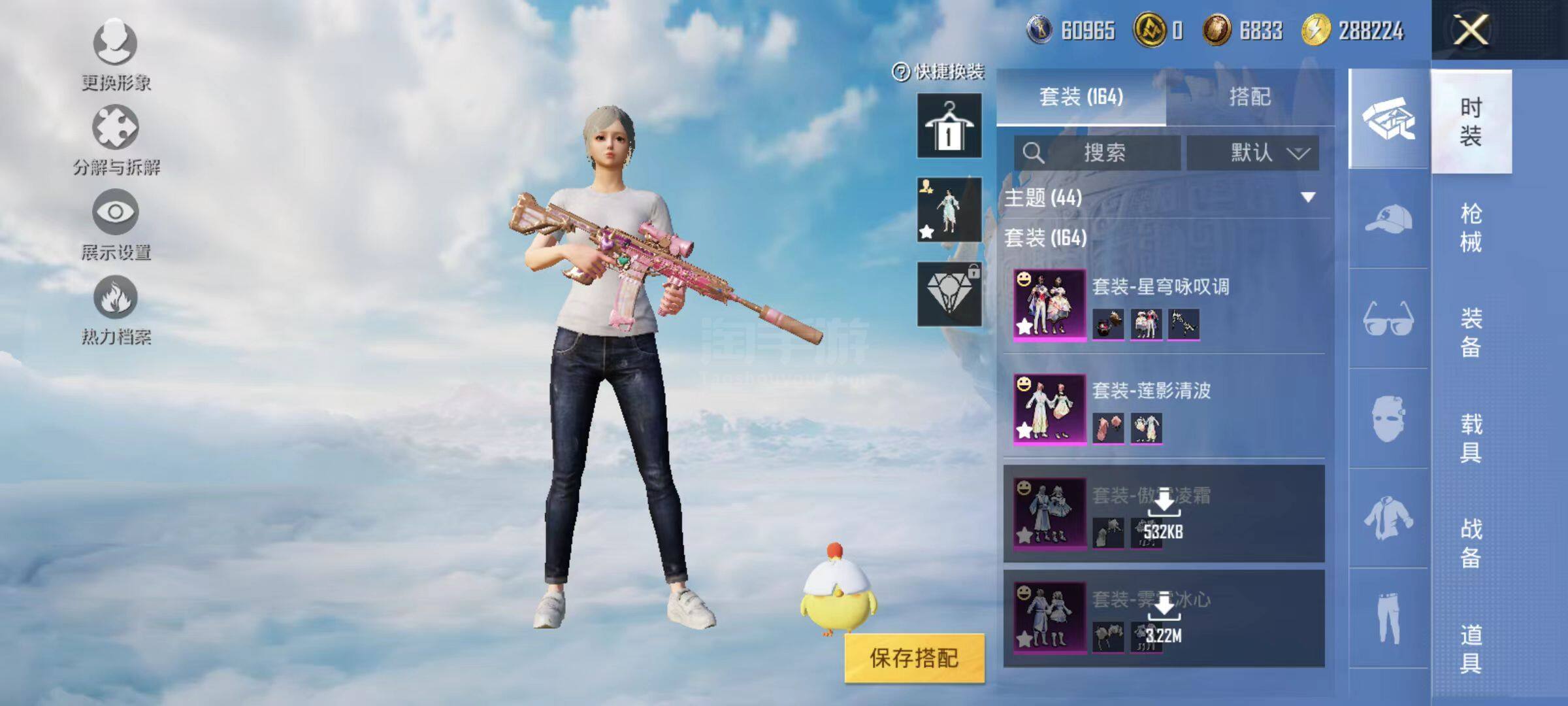 【特效枪等级】:SCAR-L-纯梦嫁纱(七级),M416-心之恋语(六级),M416-电玩时刻(五级),GROZA-镜光银凌(五级),AUG-暖羊咩咩(五级),Kar98K-巳巳如意(五级),Mk14-甜梦熊击(五级),SLR-暗夜玫瑰(四级),M249-绒雪飘舞(四级),DP-28-豹影疾