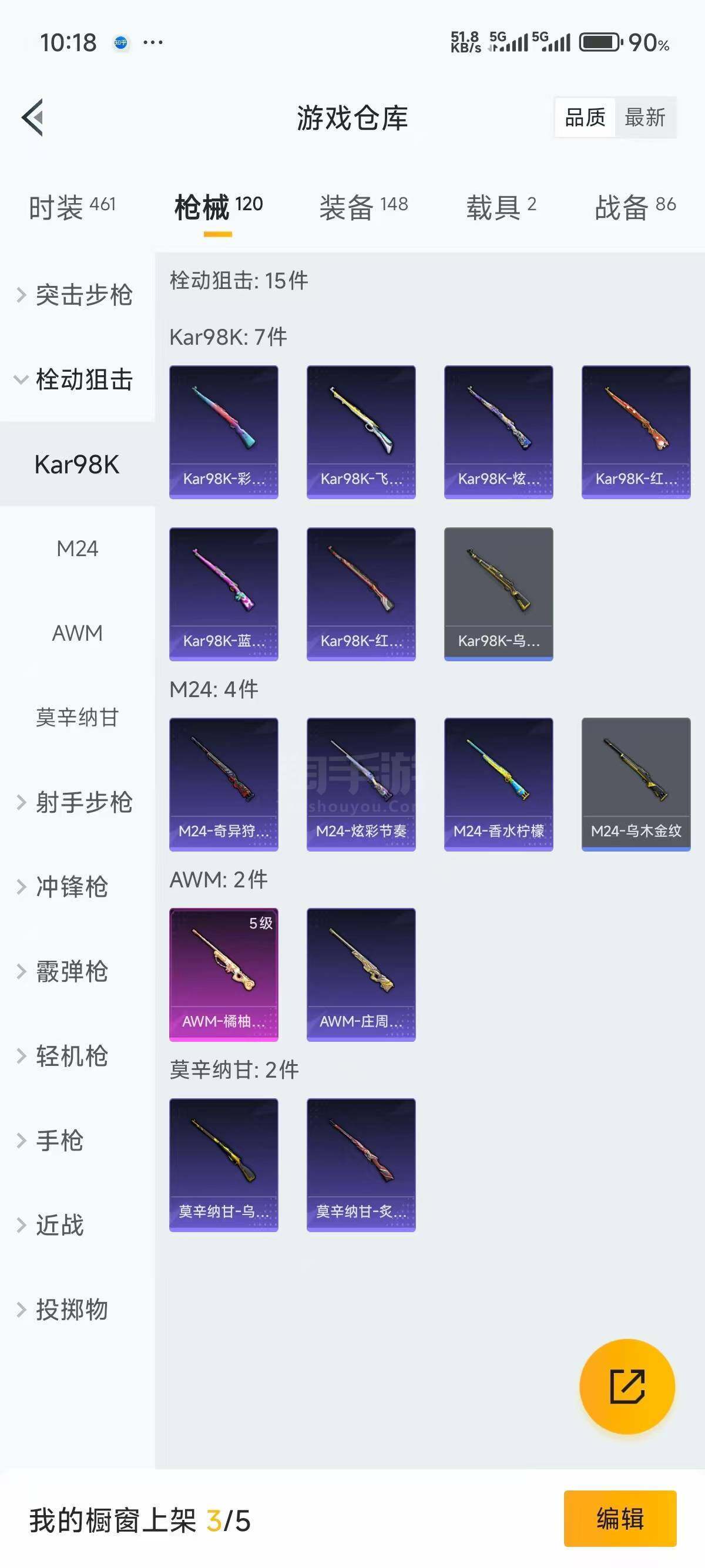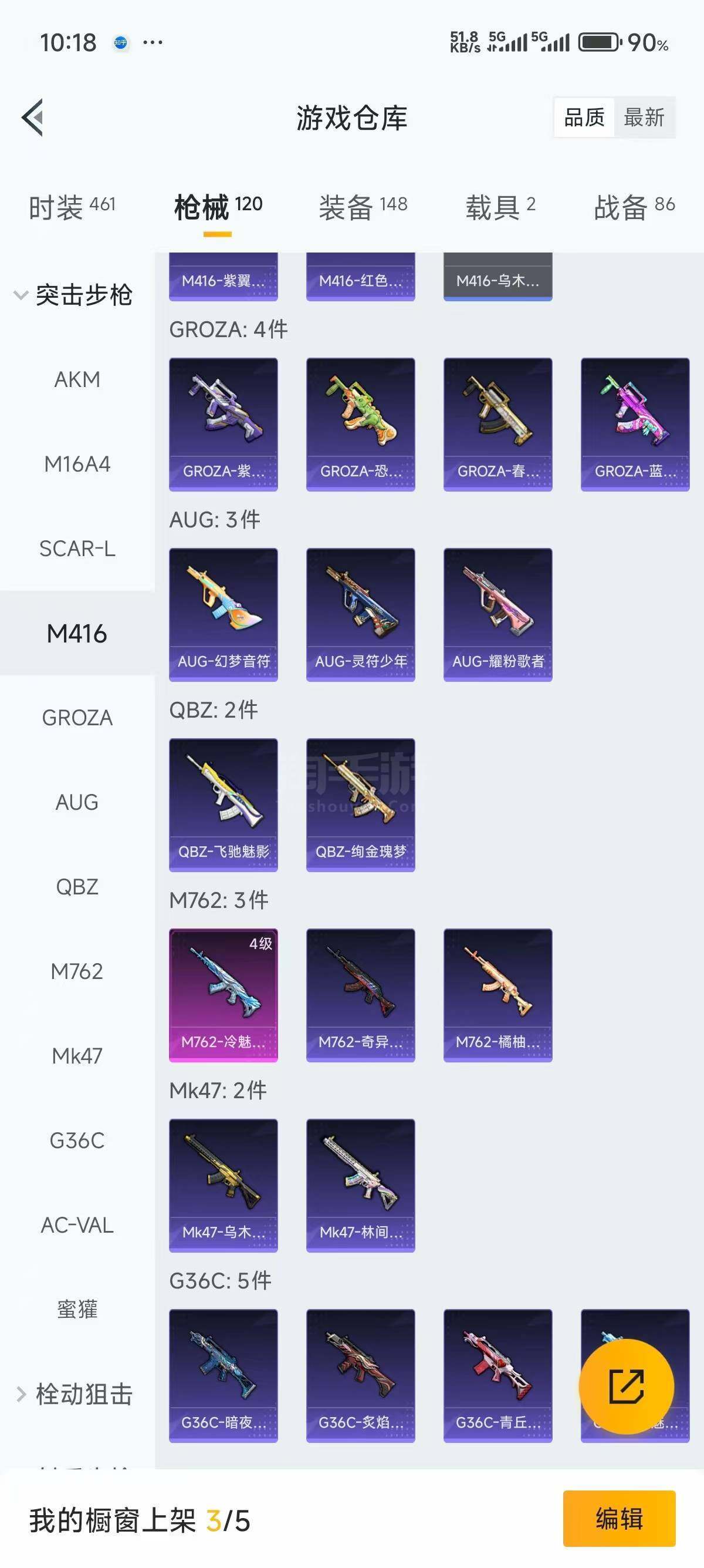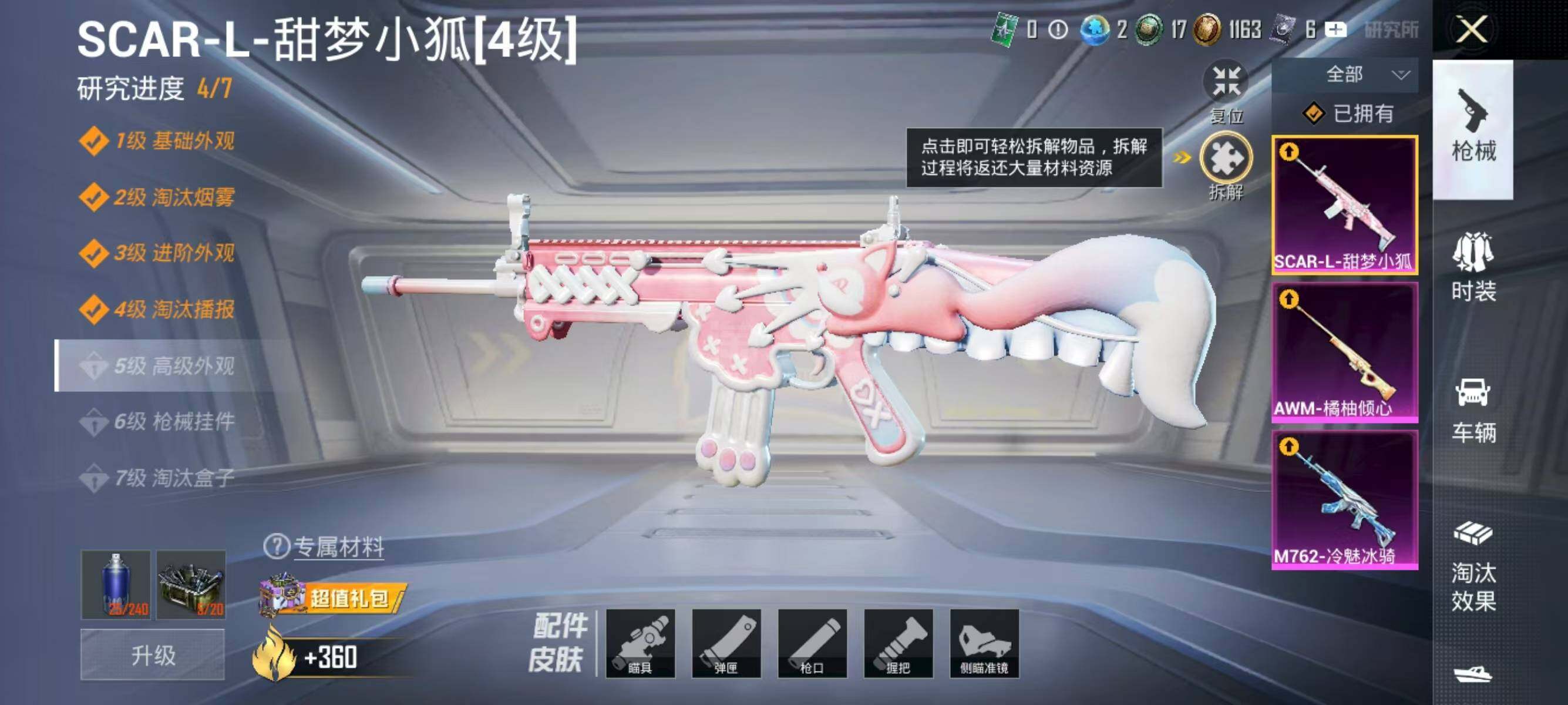 【特效枪等级】:SCAR-L-甜梦小狐(四级),M762-冷魅冰骑(四级),AWM-橘柚倾心(五级)