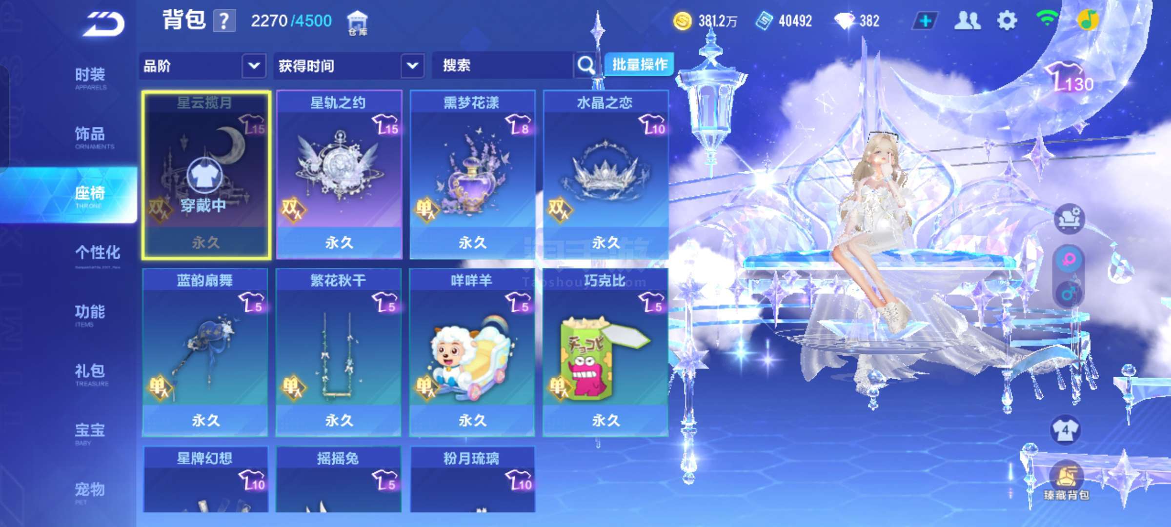 838,安q三机甲神威泰坦福睦舰长,源极幻螳,大河,星穹,黑曜石。孙悟空齐天大圣。弦音,霆光,流火, 宠物:火狱龙息,瑞泽祥麟,玉玺神虎,雀焰女王,魔王天狮,源梦之星,女娲,炎晶魔龙,无常小黑,彩虹独角兽,极地龙龟,灵猫魅影 座椅:晶莹月华,星海梦域,咩咩羊,月影繁花,星轨之约,繁花秋千,星云揽月,巧克比,蓝韵扇舞