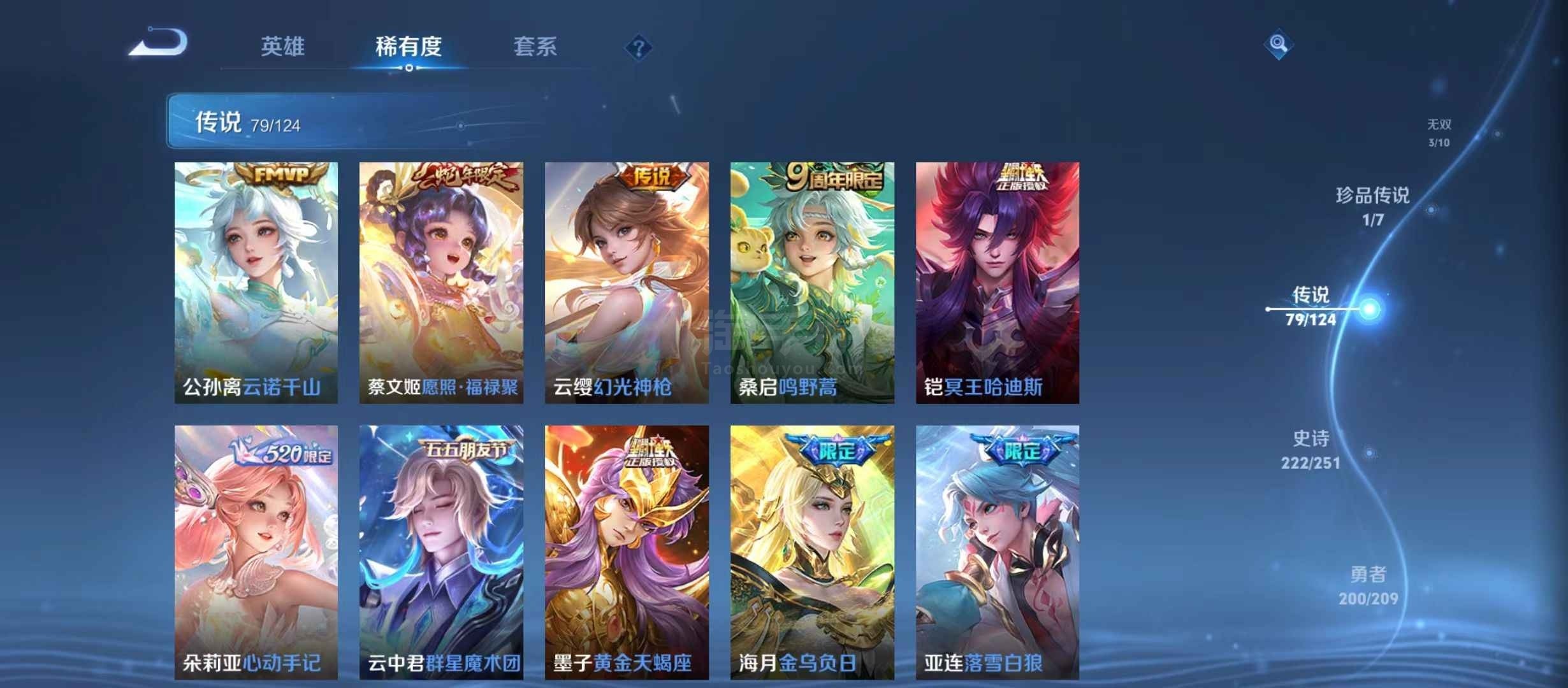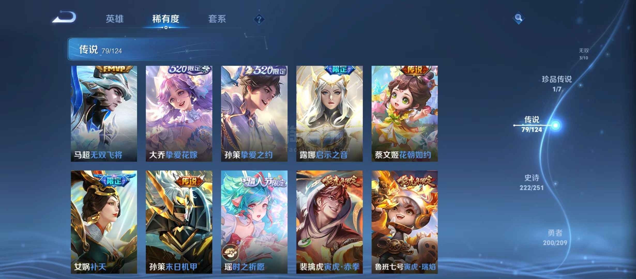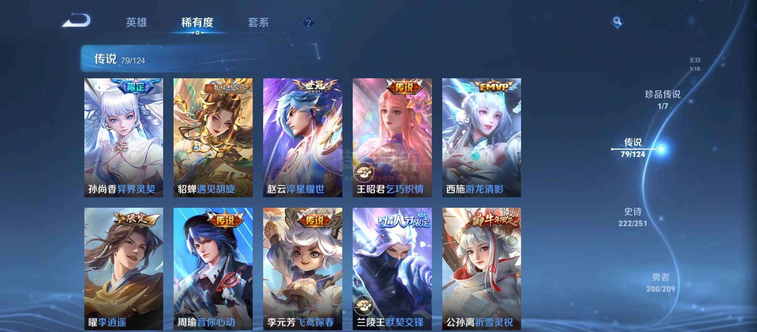 安卓微信 V10 15典藏 79传说 222史诗 604皮肤 124英雄 传奇王者