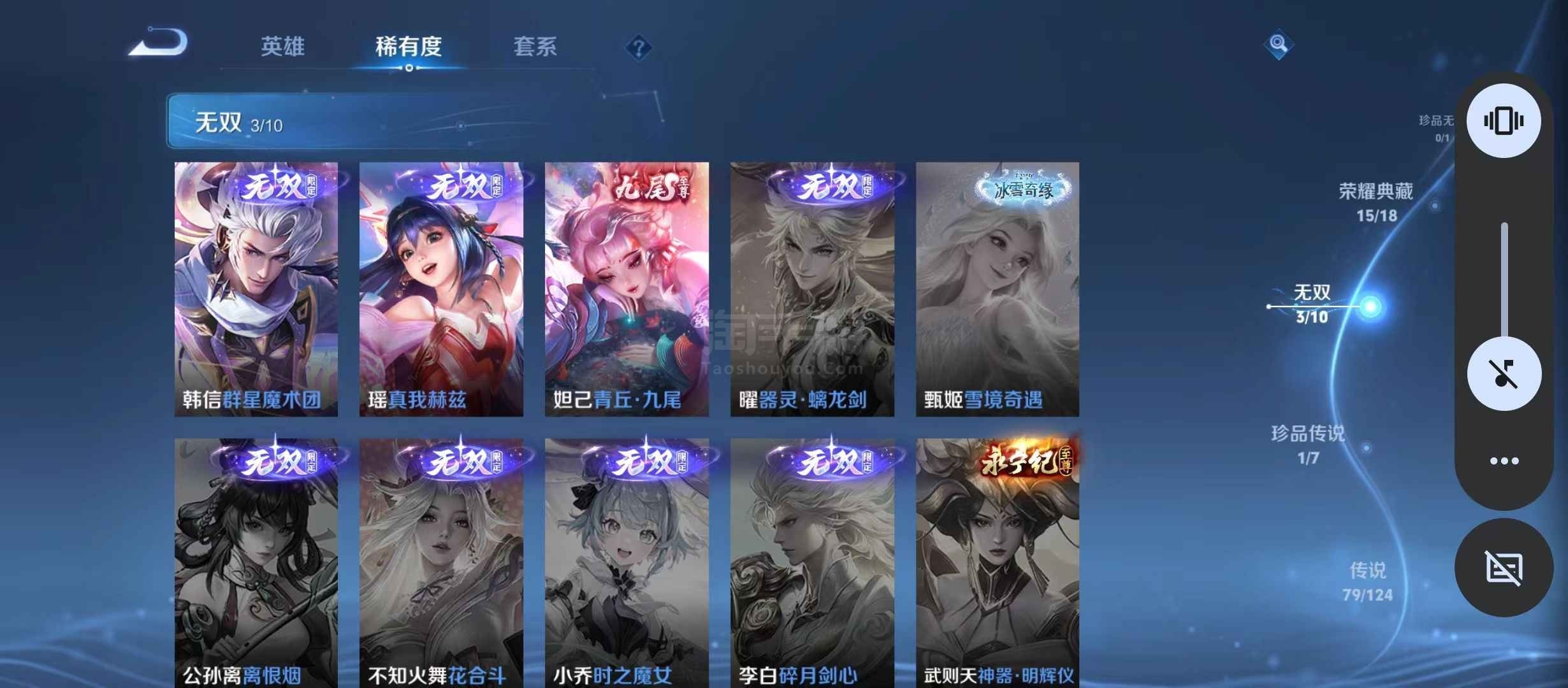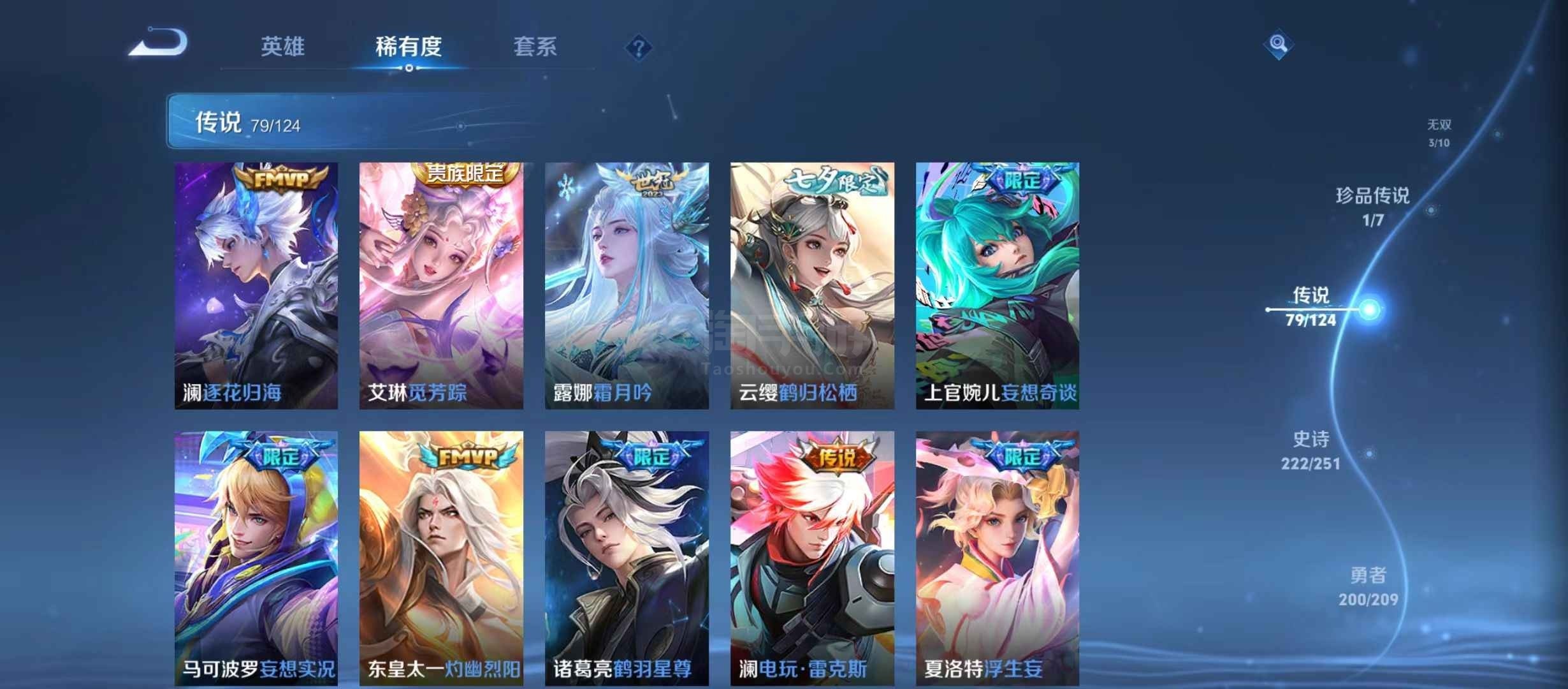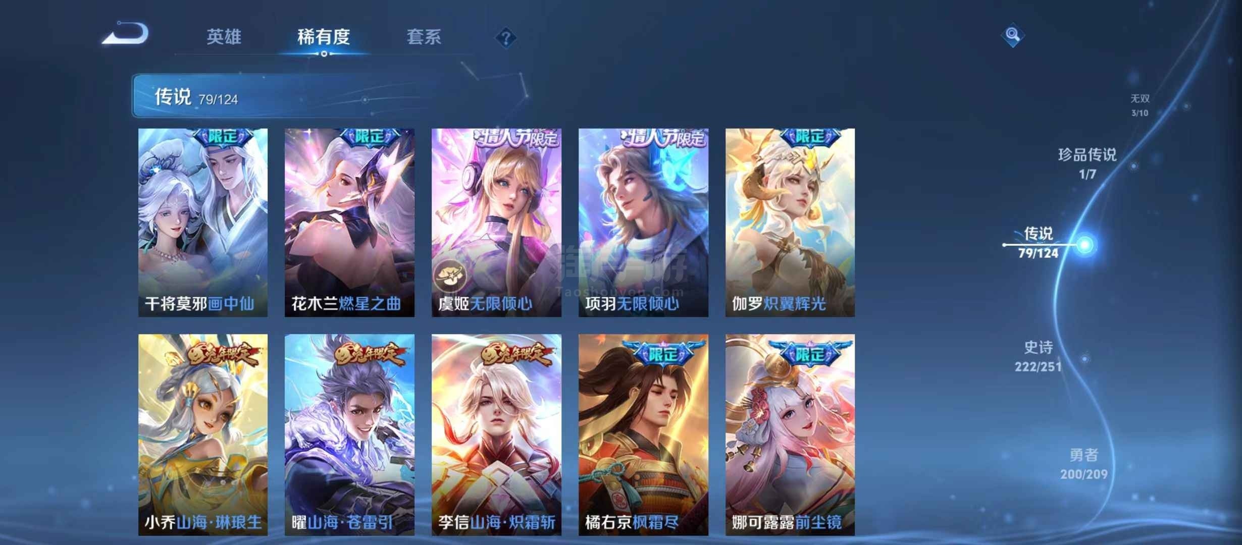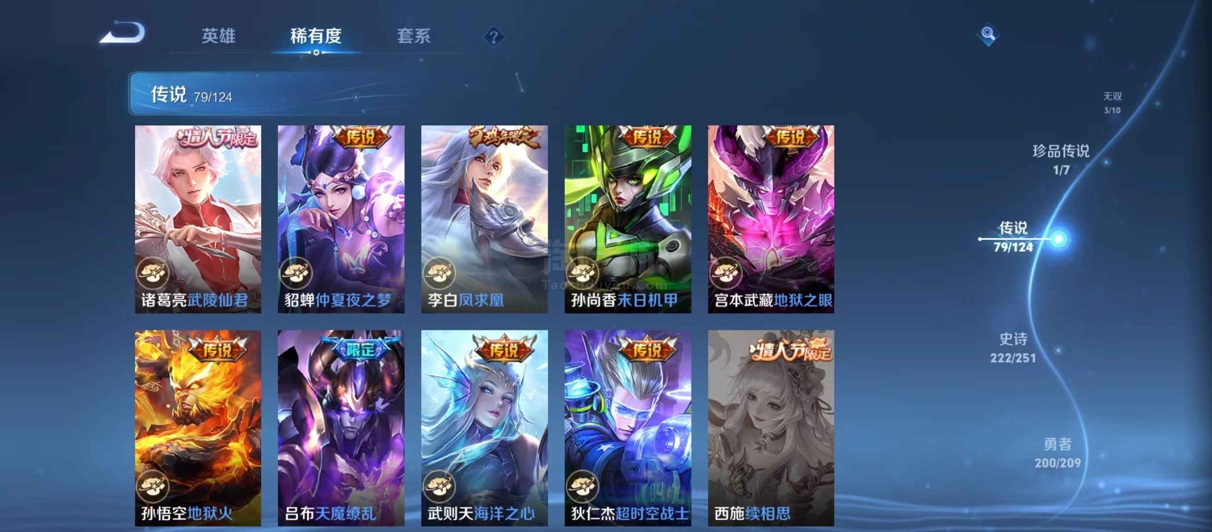 安卓微信 V10 15典藏 79传说 222史诗 604皮肤 124英雄 传奇王者