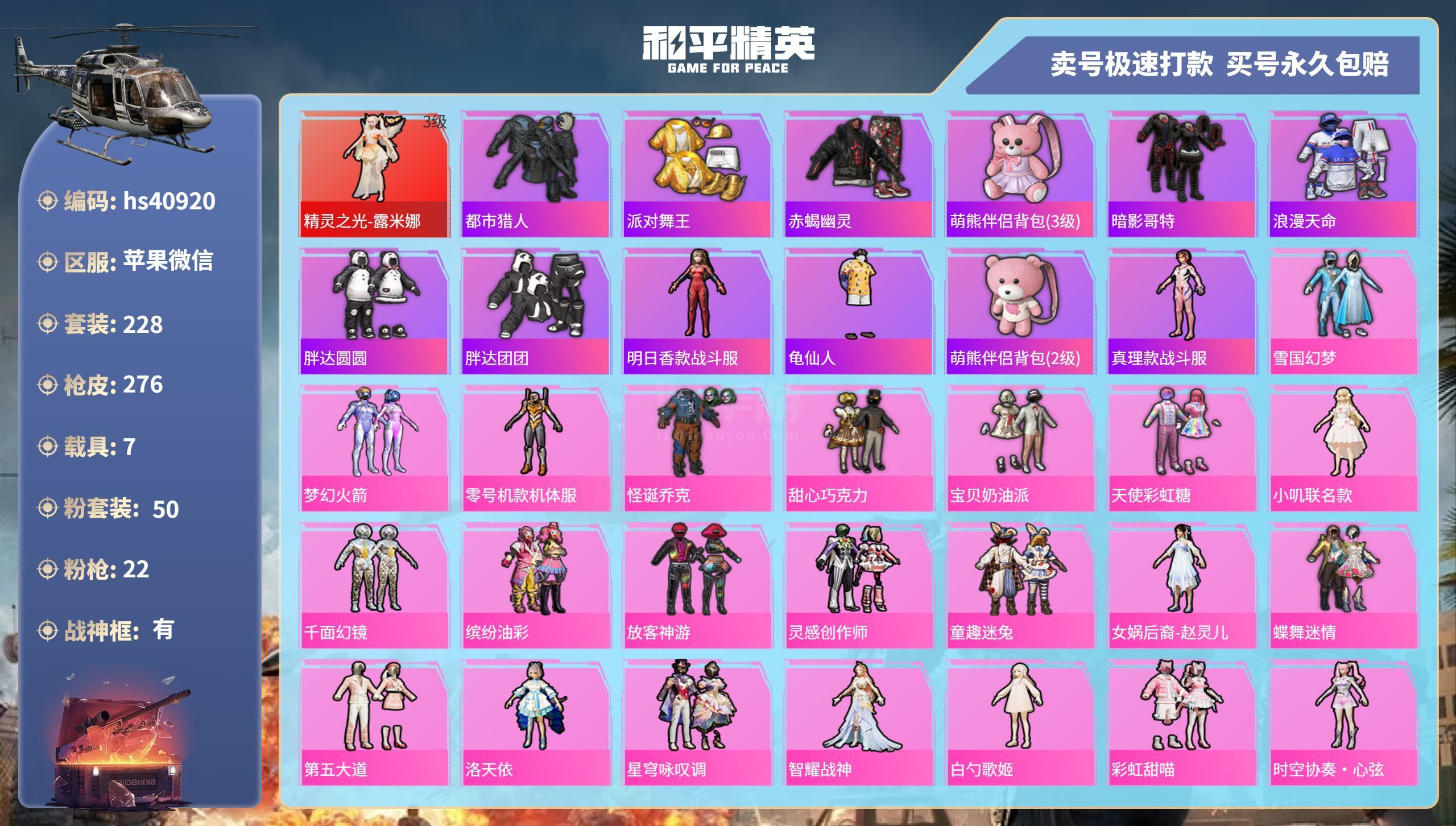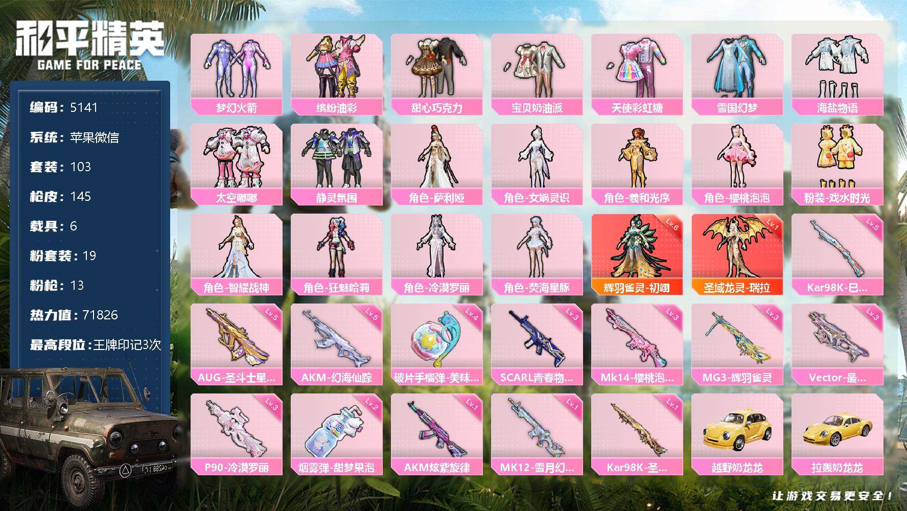 和平精英【苹果QQ】s1开始养打了30多个赛季诚心出售看上的可聊 市面基本热门衣服皮肤都有