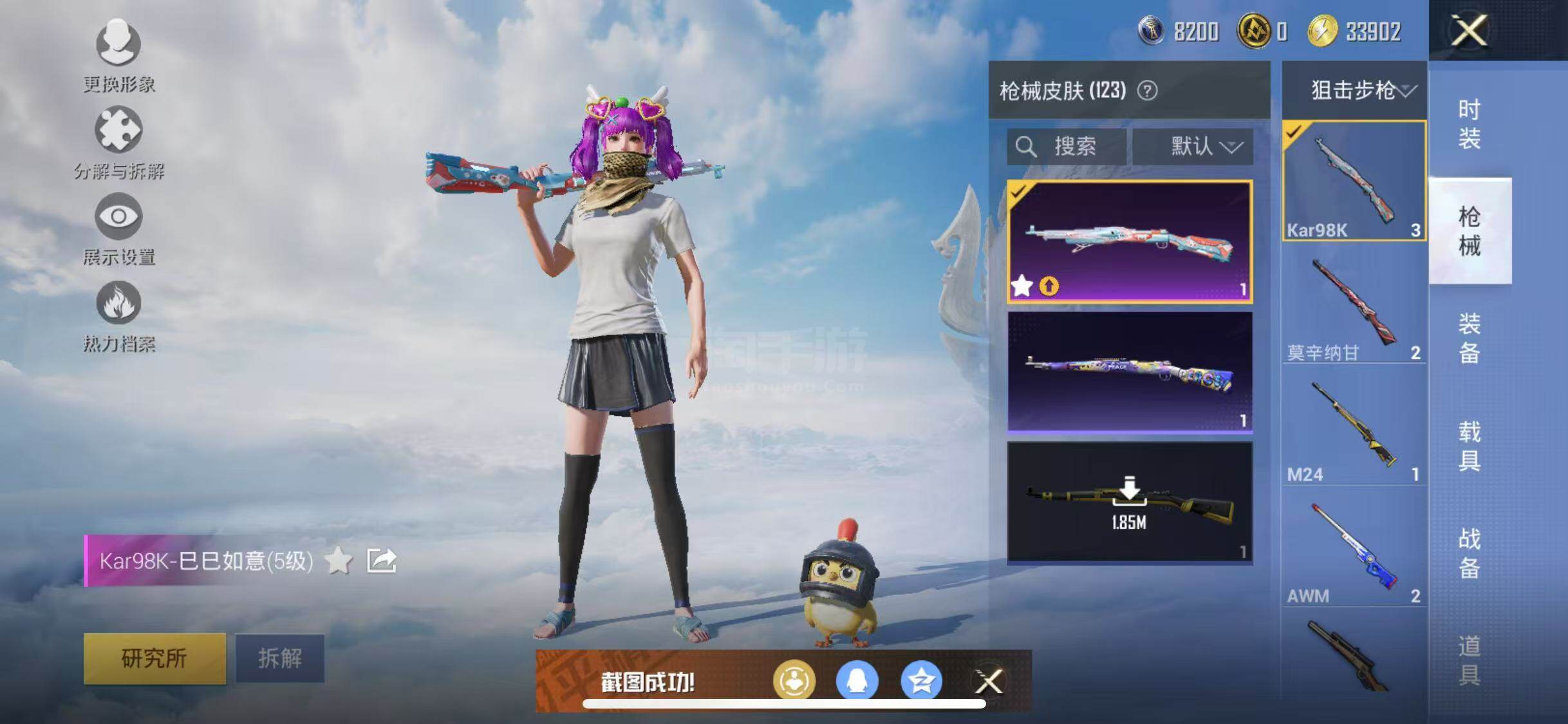 【特效枪等级】:UMP45-恐龙拽拽(七级),Kar98K-巳巳如意(五级),DP-28-豹影疾电(四级)