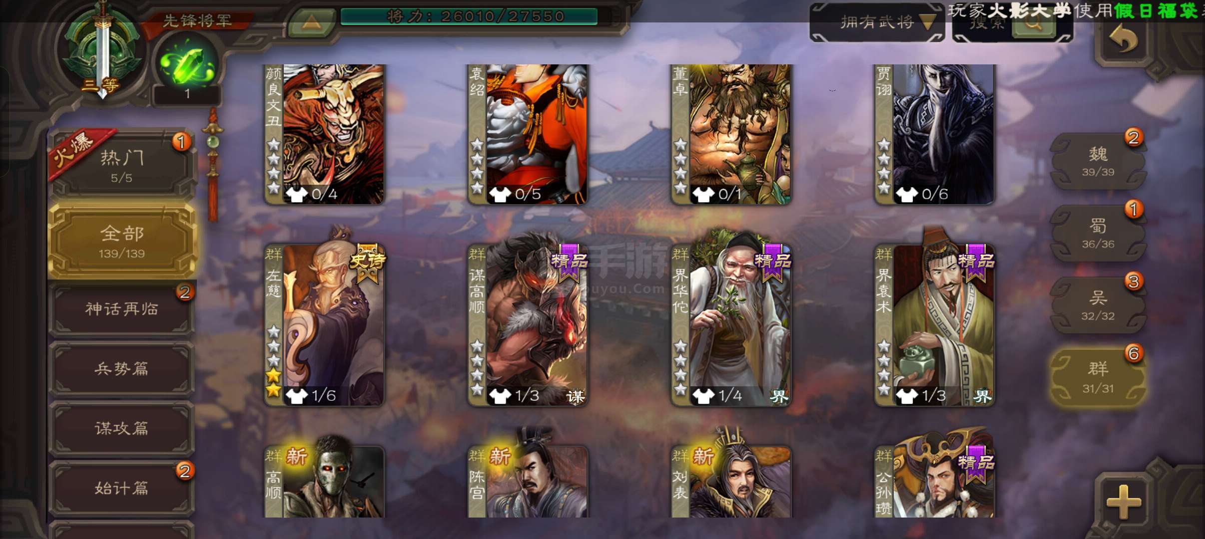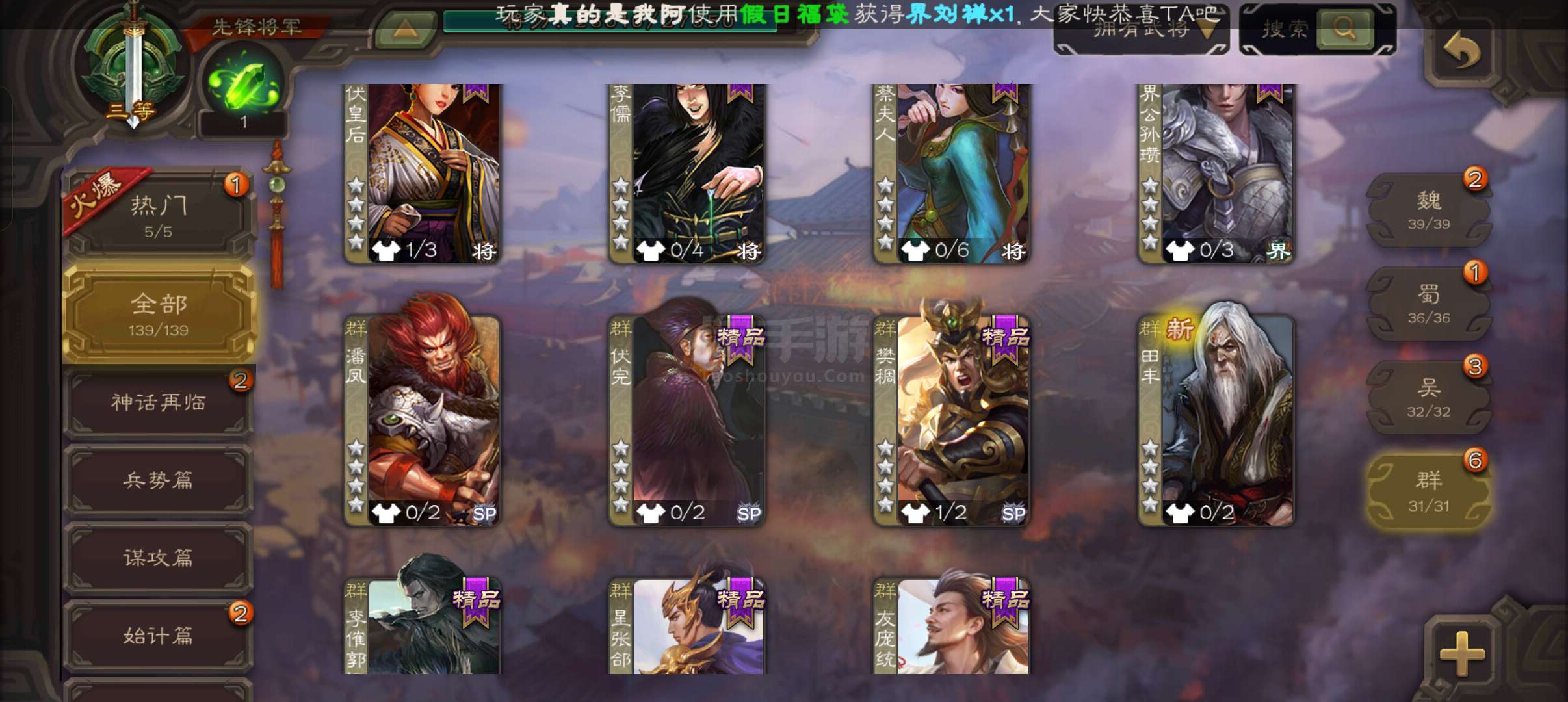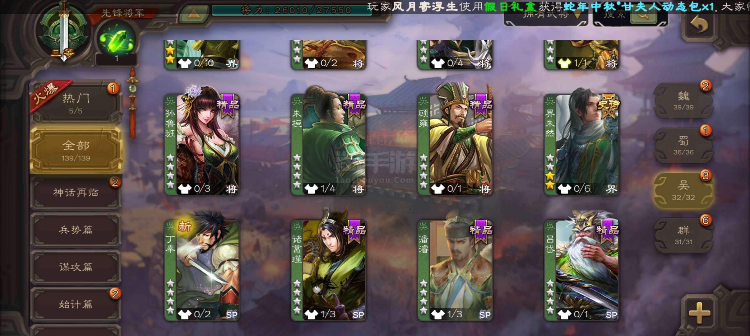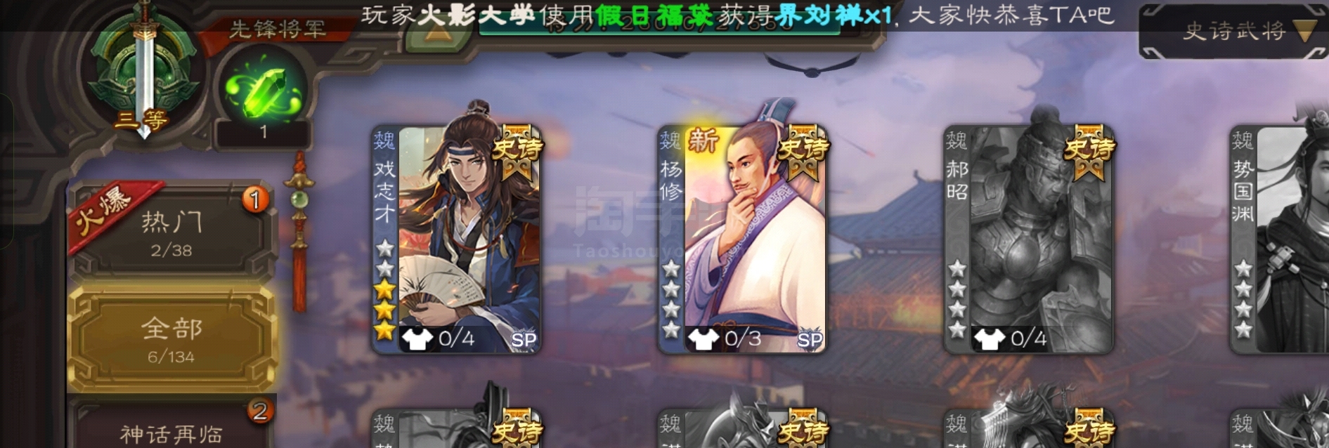 6史诗双神先锋,戏志才神刘备谯周界朱然动左慈杨修6史诗,出框动曹冲神周瑜谋高顺界孙权张翼140将