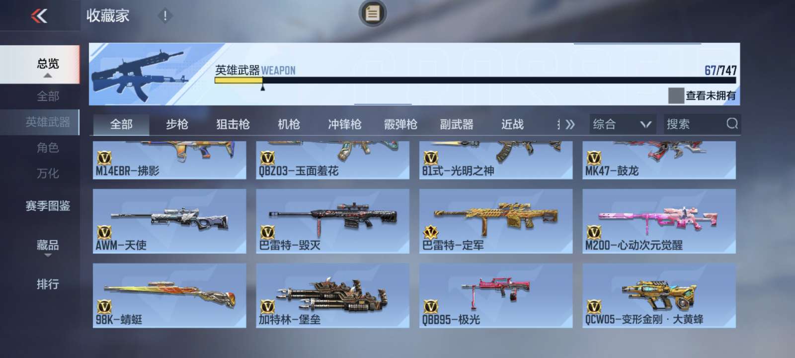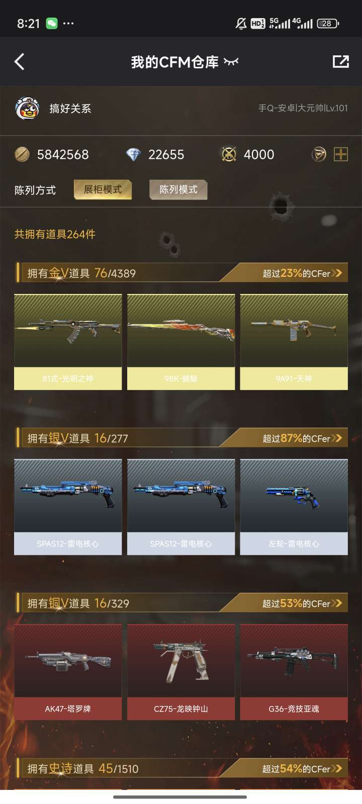 CF退游王武有女团皮肤,英雄云悠悠+瞳 ,武器光明之神+王武+定军,倾蜓武器太多了