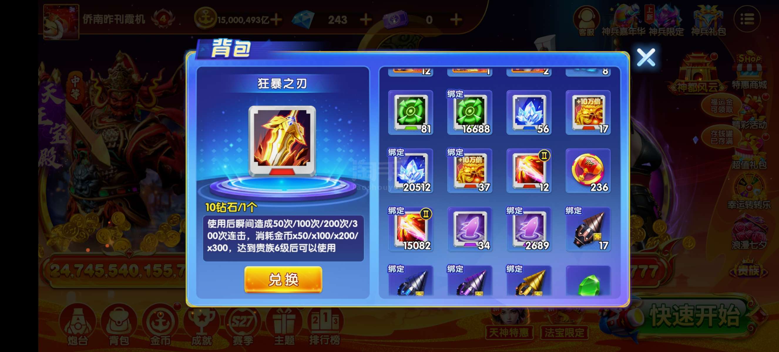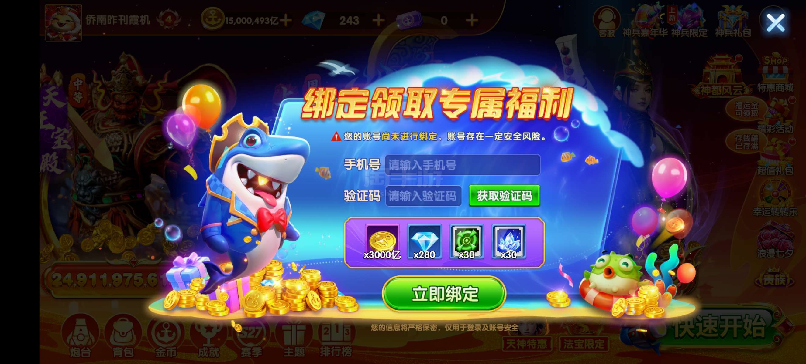乐乐捕鱼【安卓官方】乐乐贵族4扩大版+1500万亿金币+80亿炮台基础+3星永久神兵!已解绑带号一起出