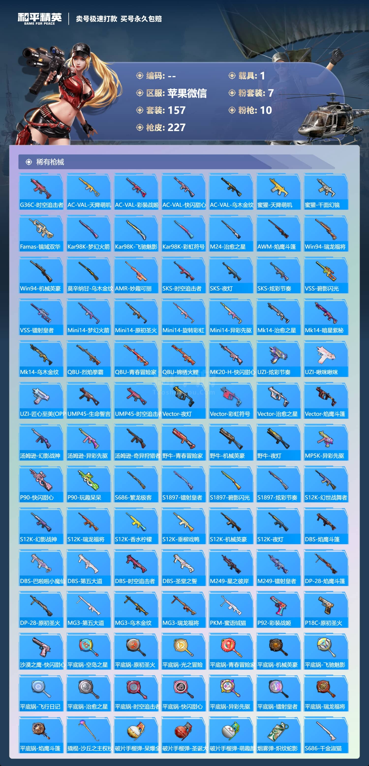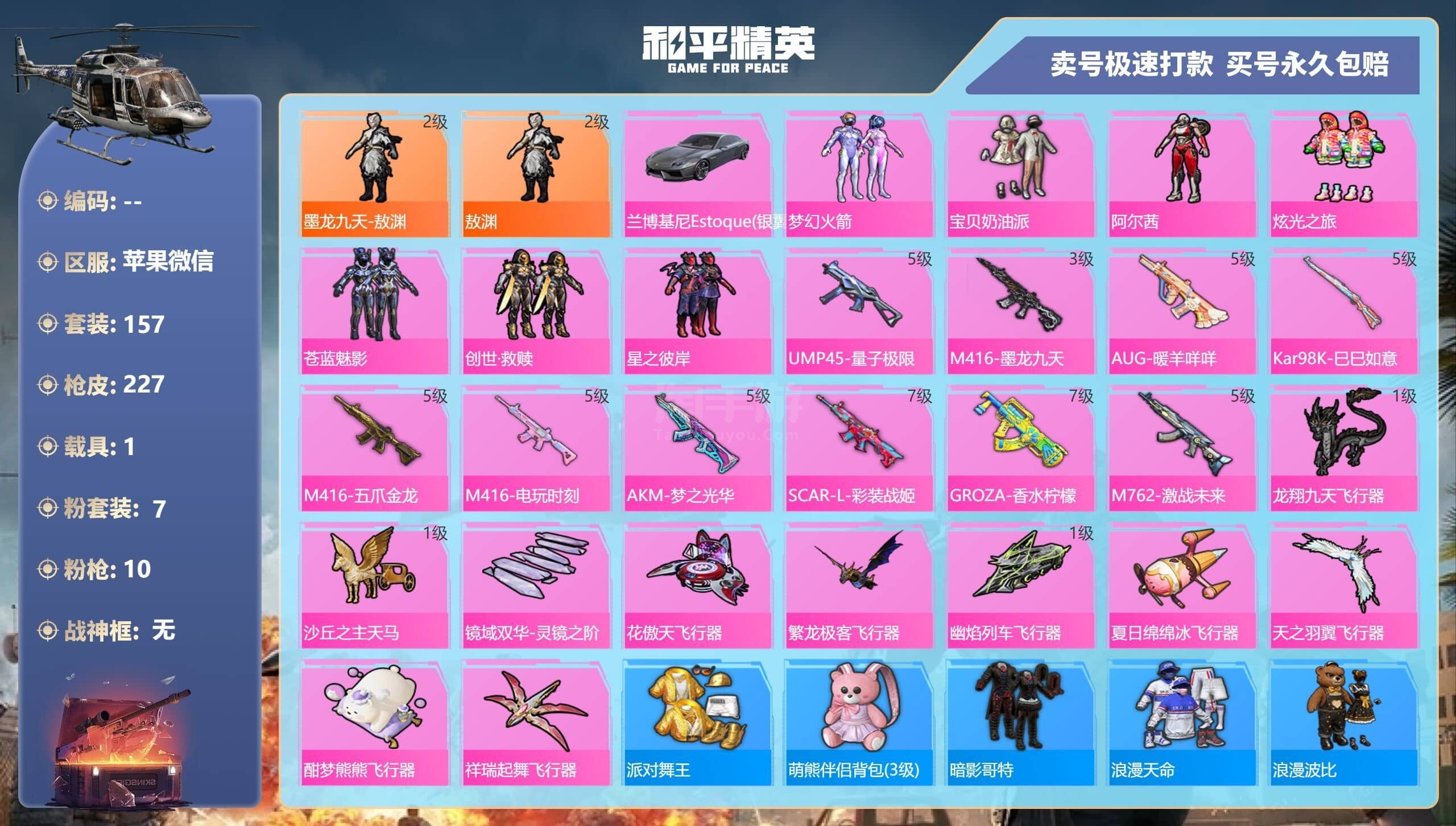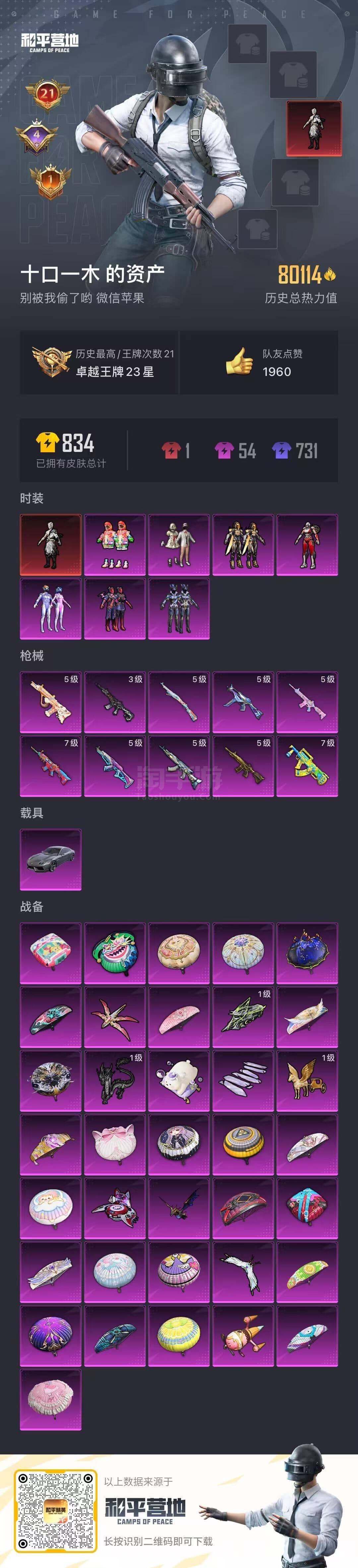 a3660/苹果微/-21王牌印记-7粉装-10特效枪-1载具-80114热力值-157套装-22