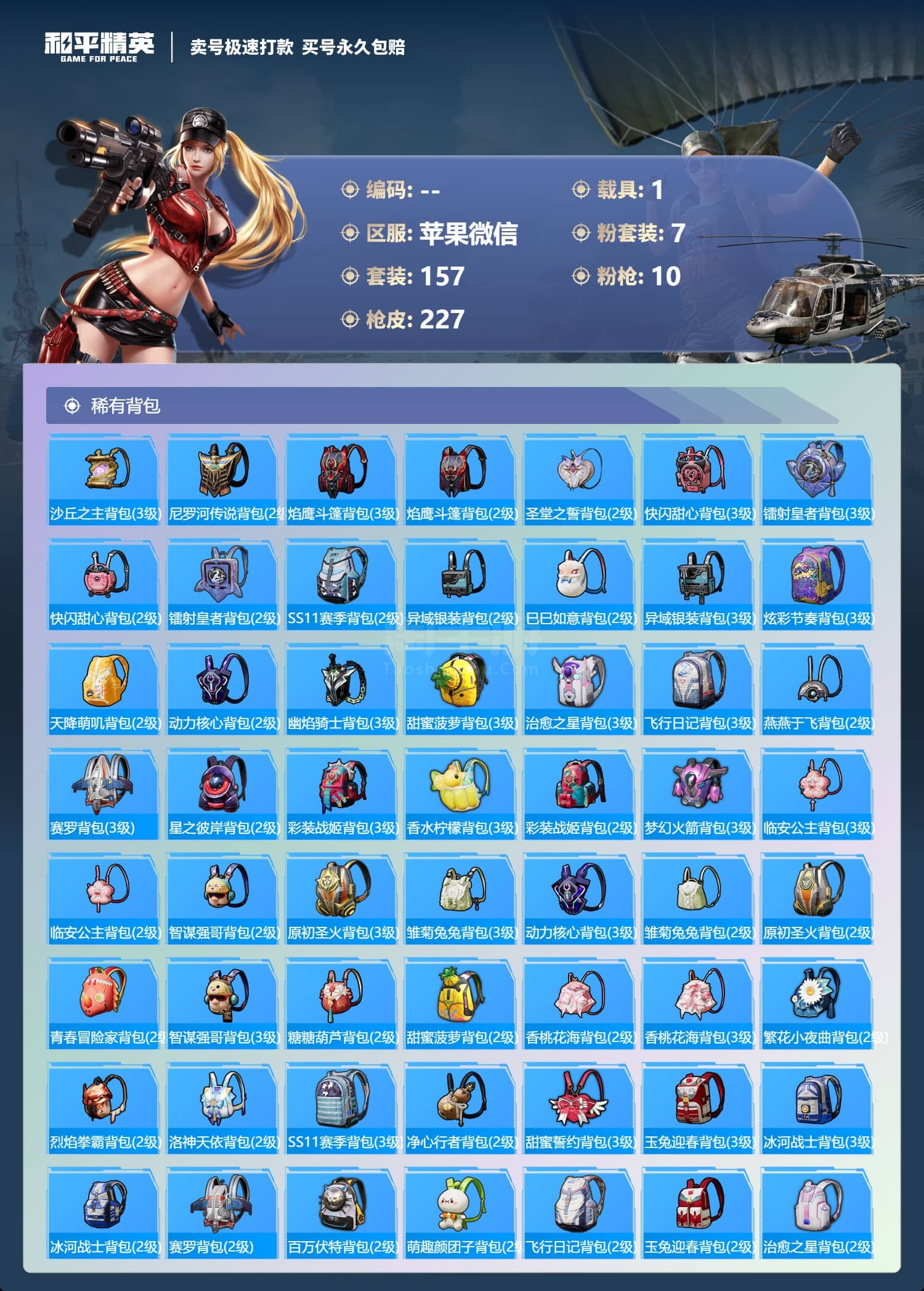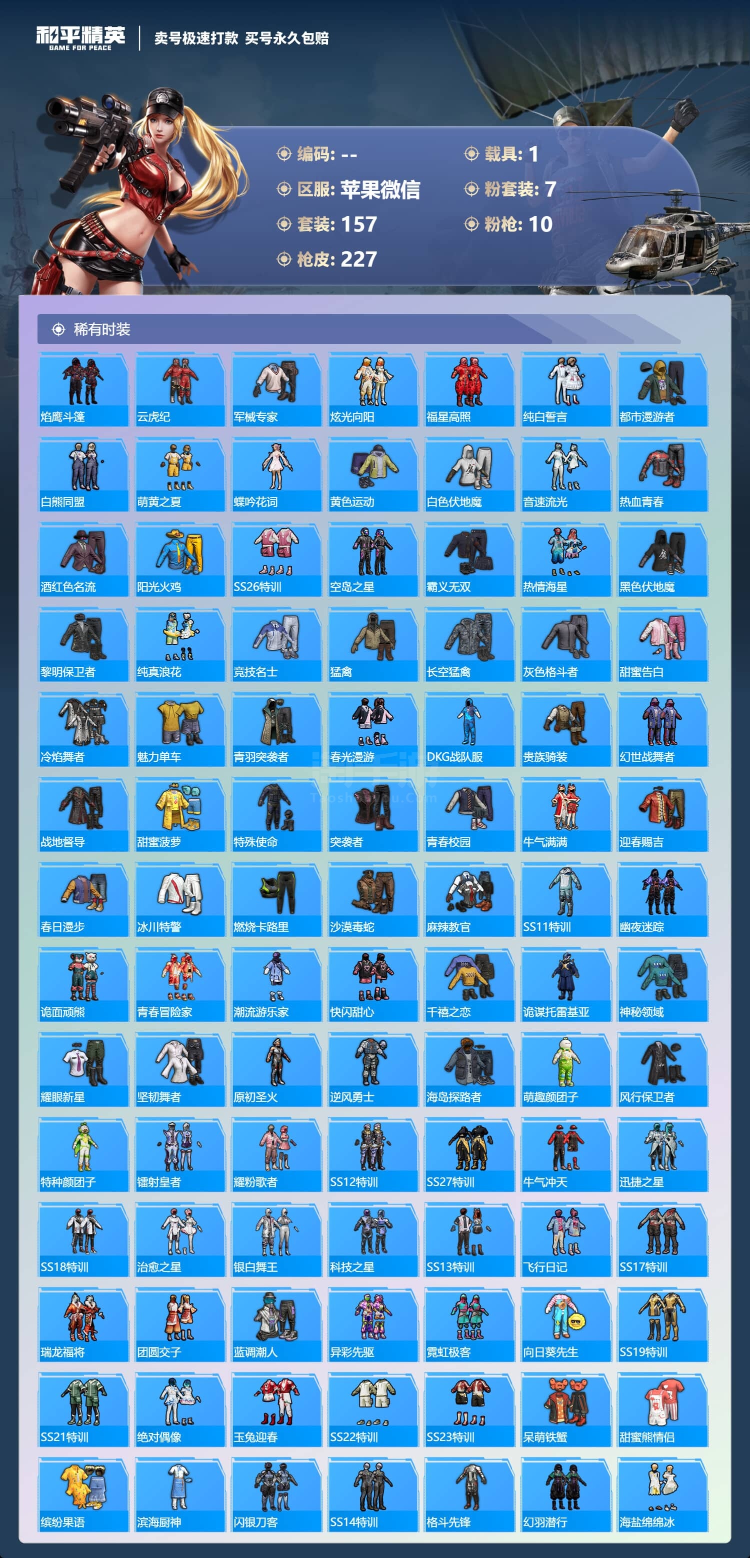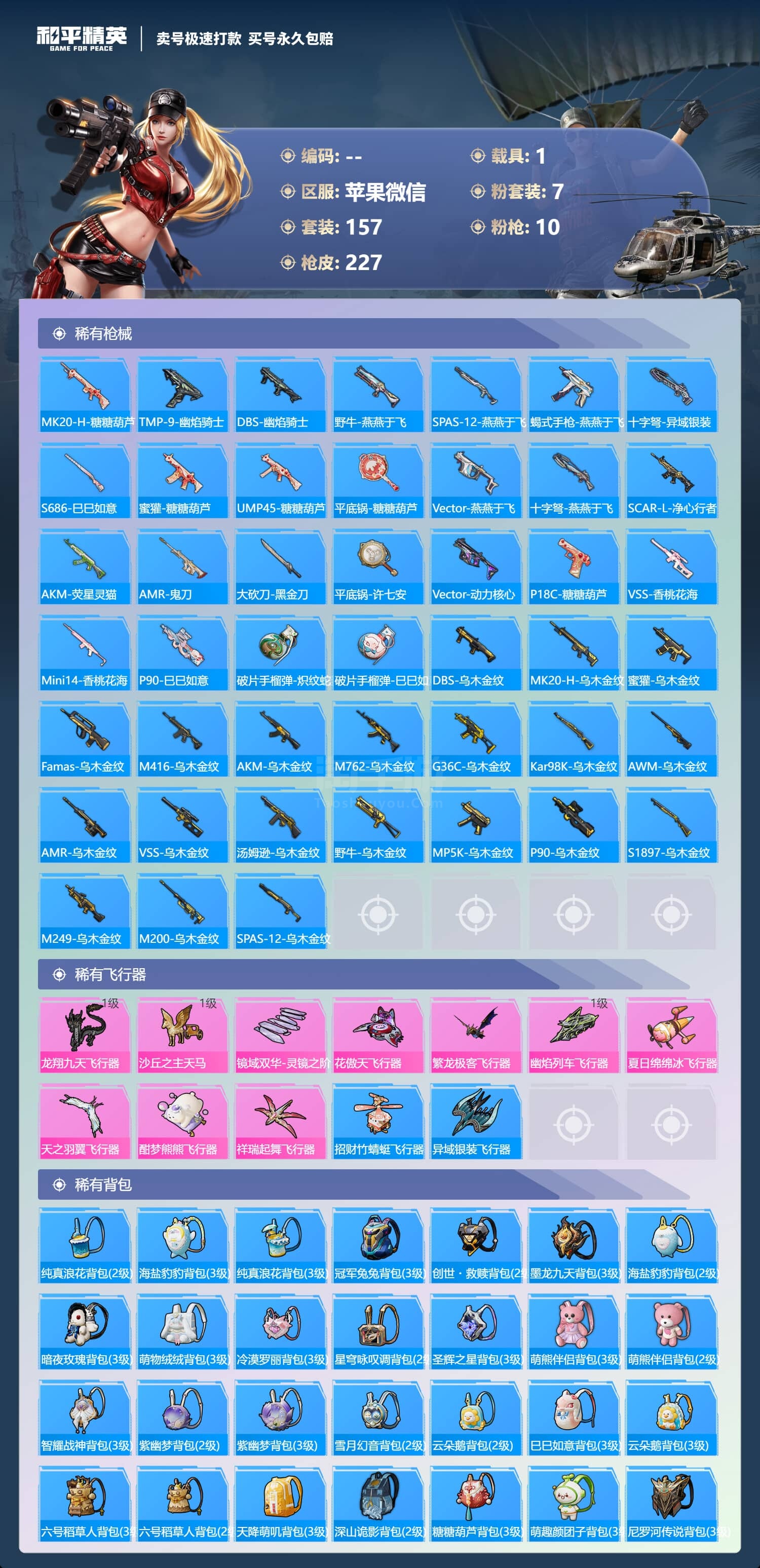 a3660/苹果微/-21王牌印记-7粉装-10特效枪-1载具-80114热力值-157套装-22