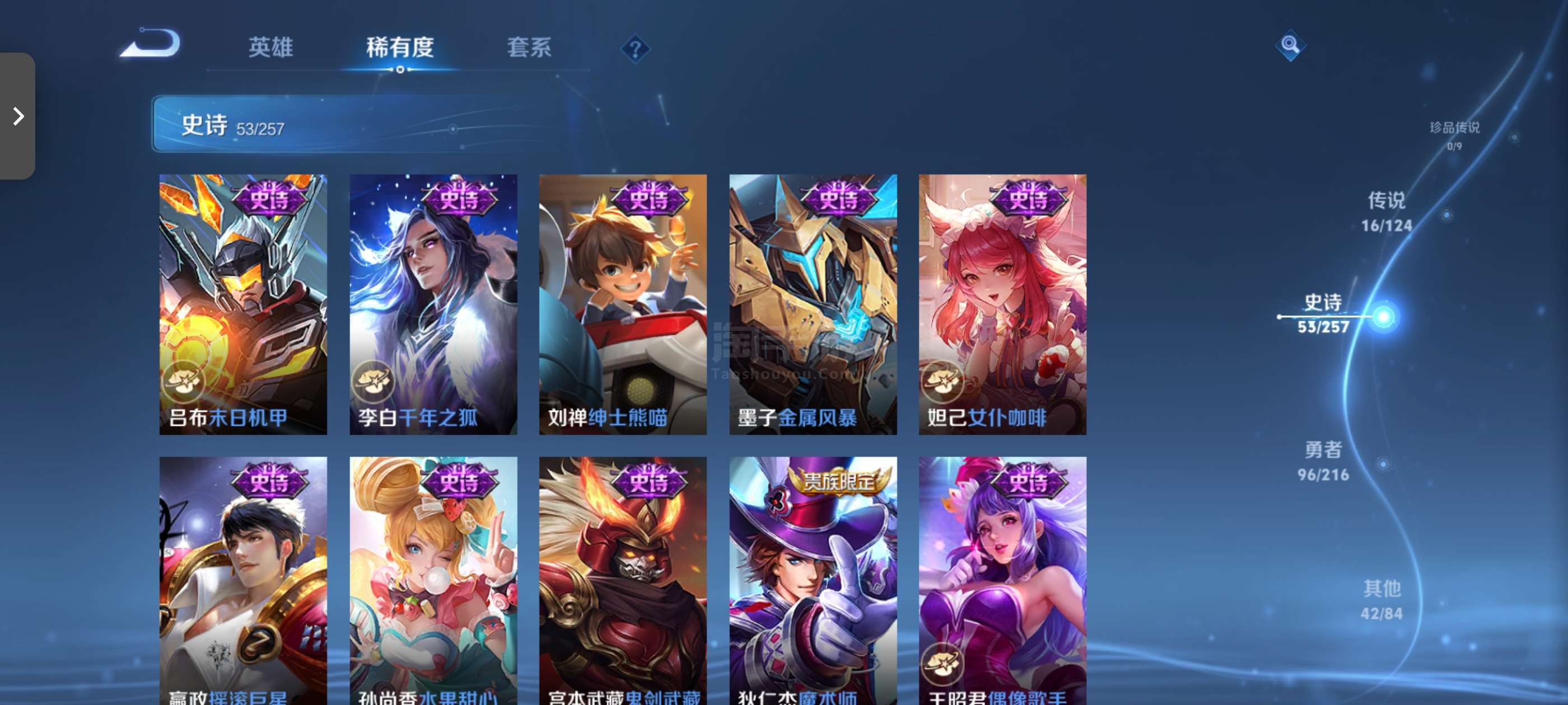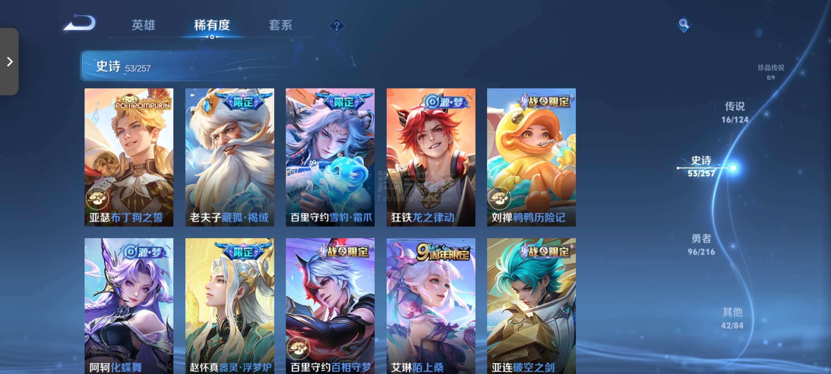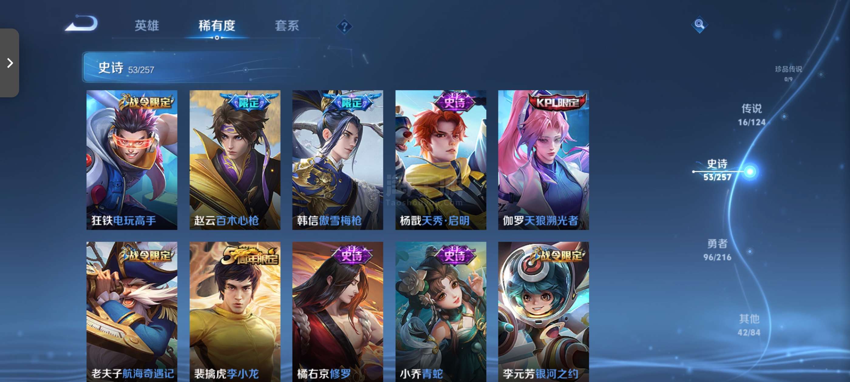 王者荣耀和平吃鸡连体账号和平吃鸡有粉装飞行器英雄-124 皮肤207-贵族V7传说皮15个
