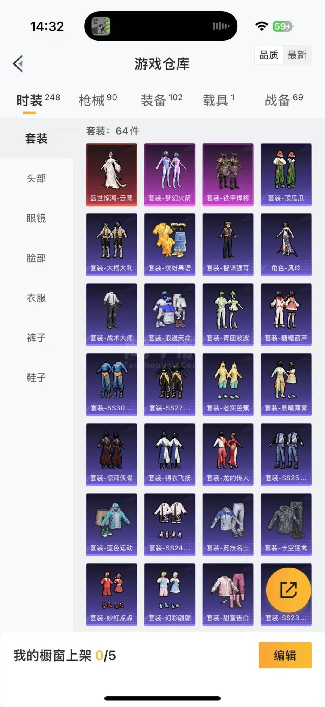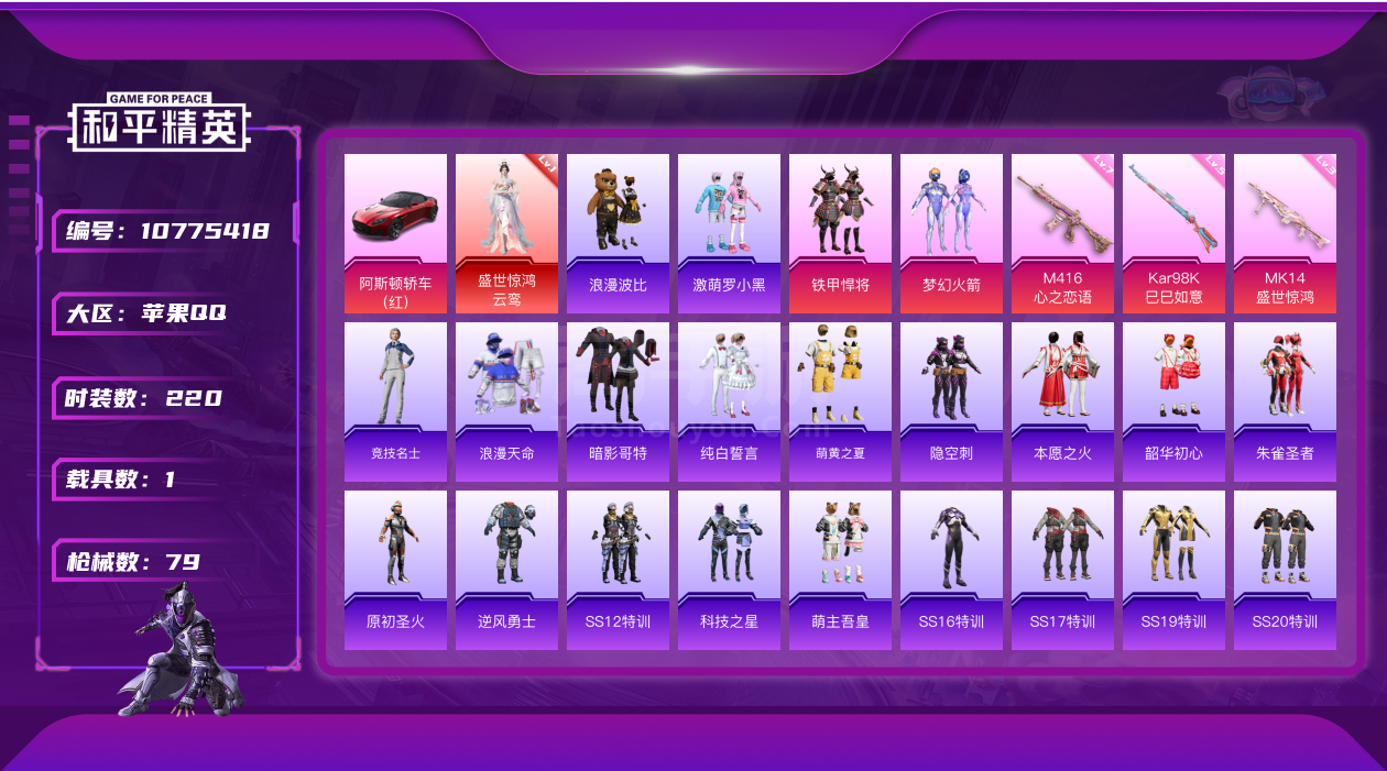 1红装 2粉装 3特效枪 1载具 5印记 可二次 可修改实名 身法装备:暗影哥特(红眼罩) 一级神装