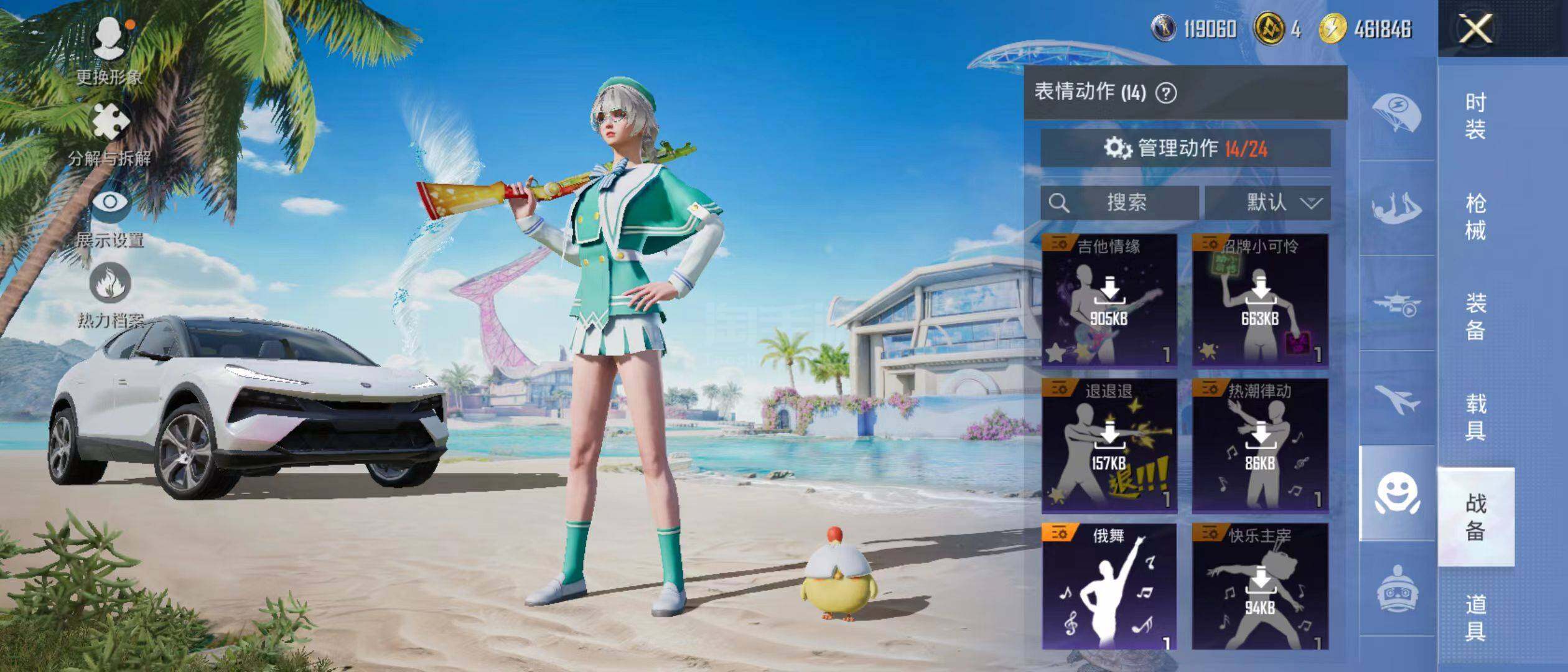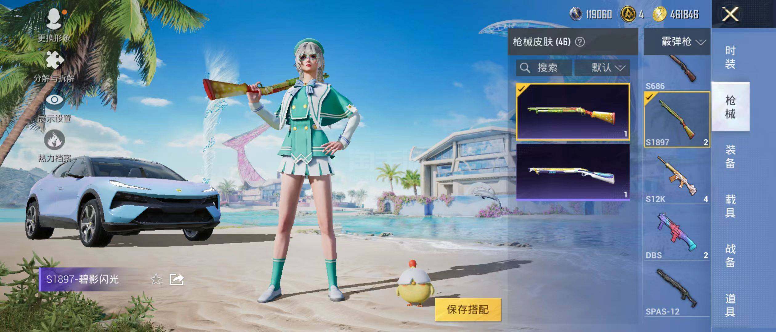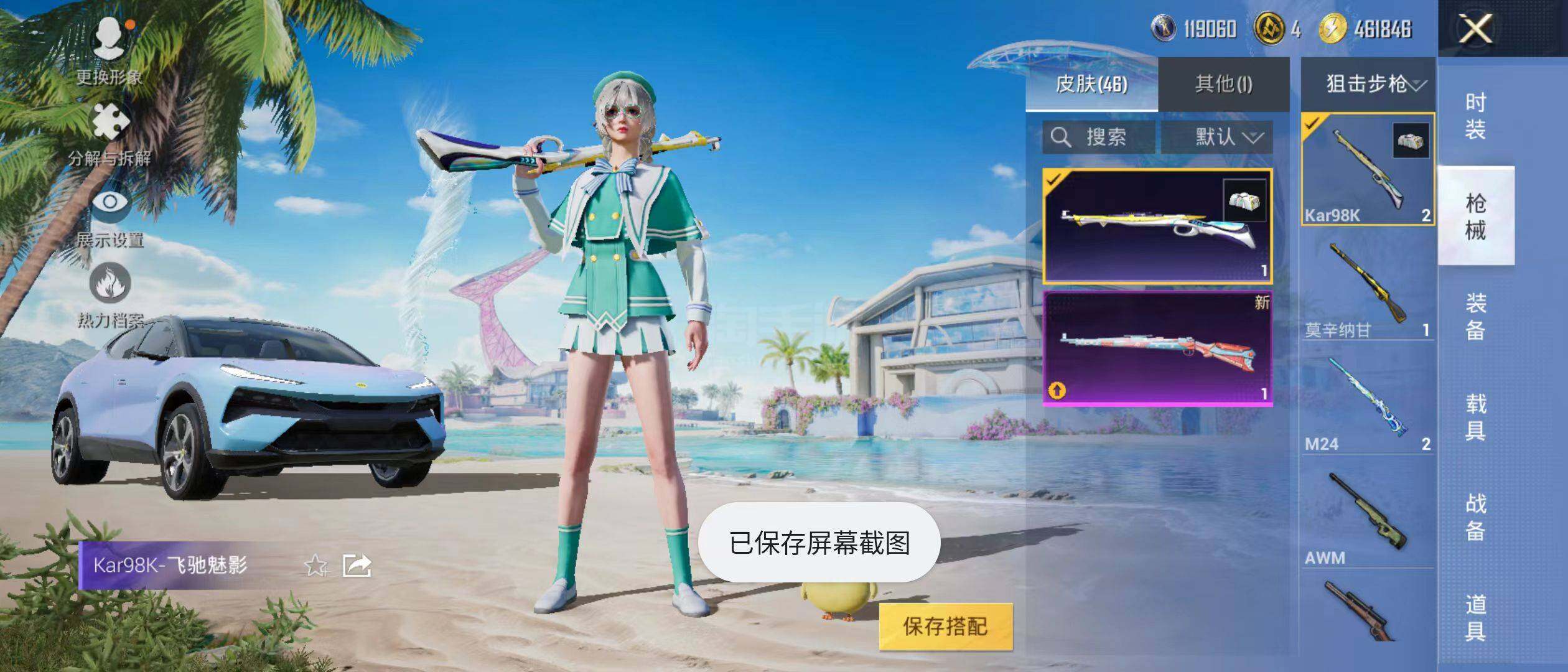 【特效枪等级】:AKM-百合蜜语(三级),GROZA-焦糖拿铁(七级),Kar98K-巳巳如意(一级),SKS-碧影闪光(三级)