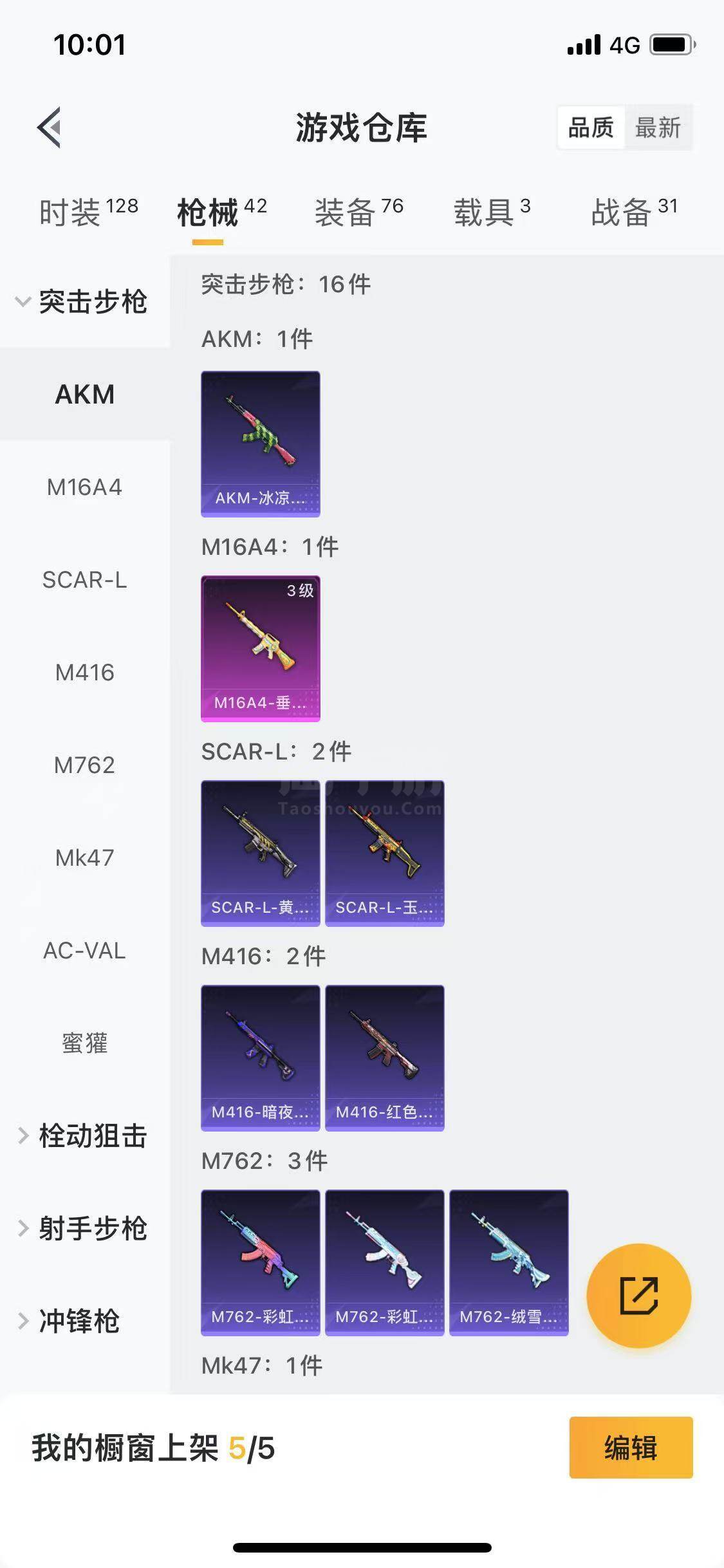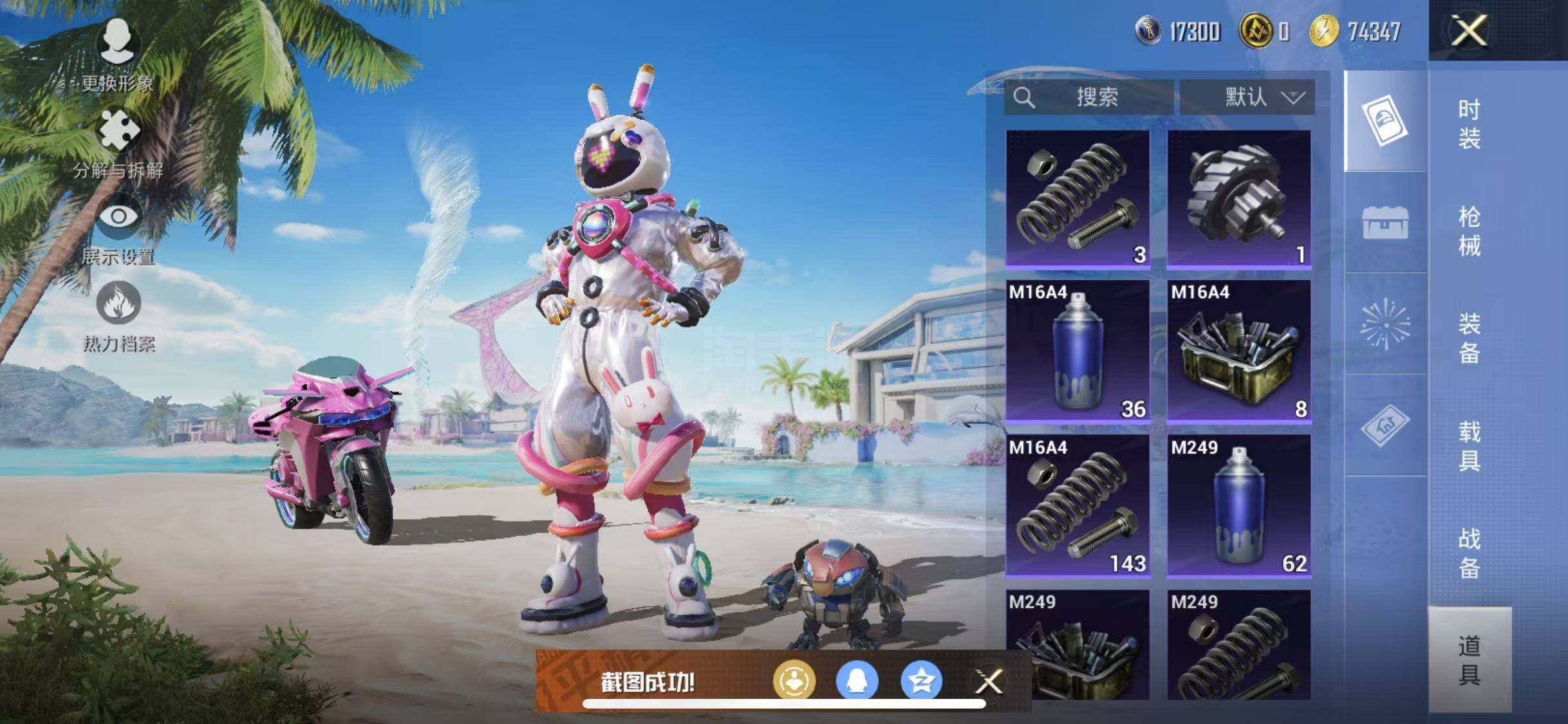 【特效枪等级】:M16A4-垂柳戏鸭(三级),Kar98K-巳巳如意(一级),M249-彩虹甜喵(三级)