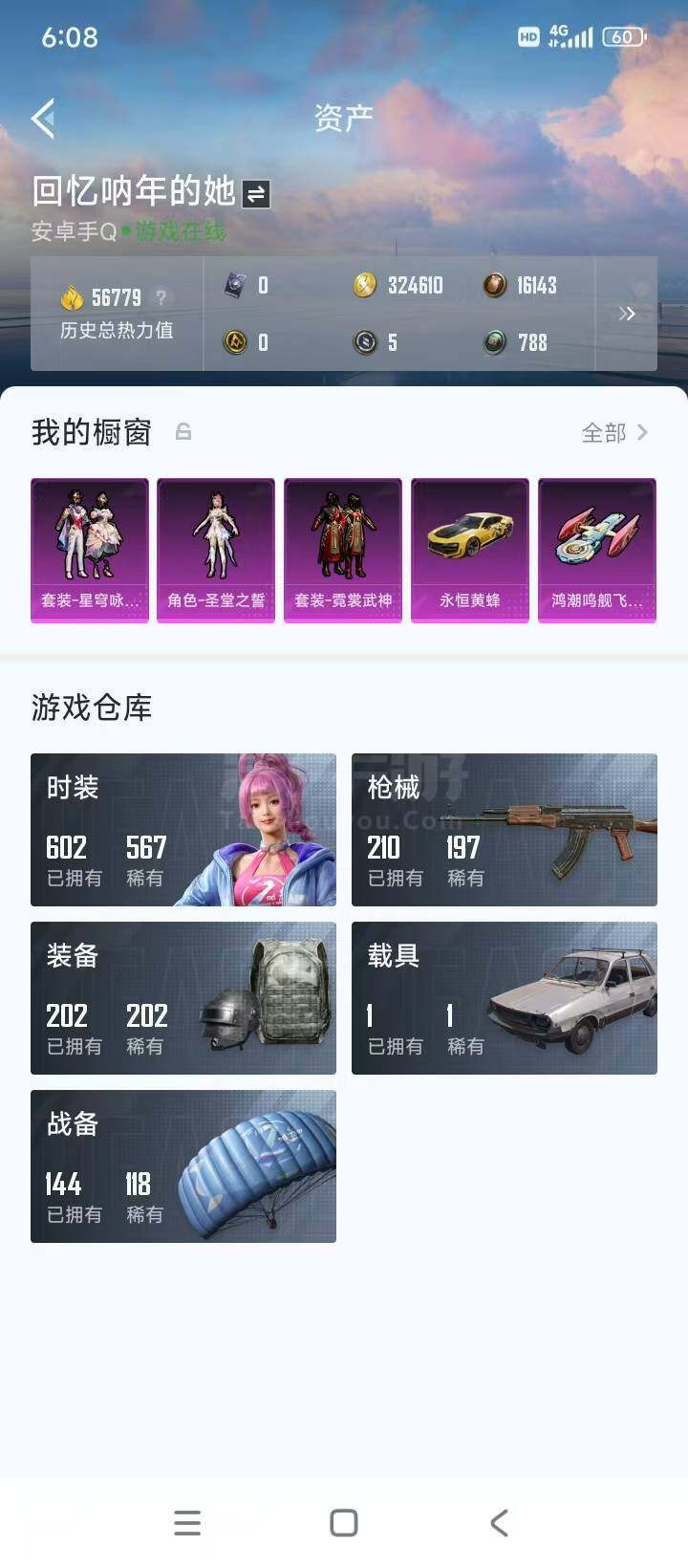 【商品标题】:安卓 手Q-3粉装-5特效枪-1载具-56779热力值-16印记-154套装-210枪皮
